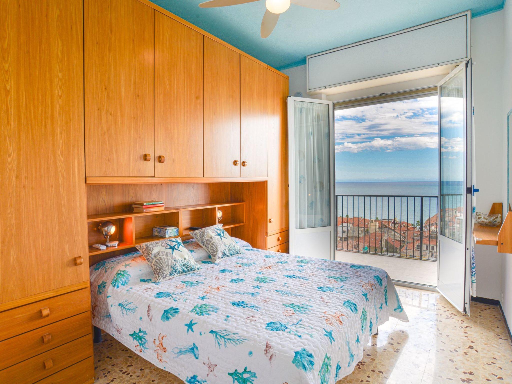 flat located on the top floor of an elegant seven-storey building, conveniently served by a lift. The apartment is composed of a cosy living area with sofa bed, an eat-in kitchen, a spacious double bedroom and a windowed bathroom complete with shower cubicle. The strong point is the spectacular and breathtaking view of the sea and the town of Finale, which can be admired from a large livable balcony, perfect for outdoor dining or relaxing moments at sunset. The house is equipped with air conditioning and Wi-Fi connection, to ensure maximum comfort during your stay. A convenient private garage is available about 450 metres from the flat, a real asset on busy summer days.