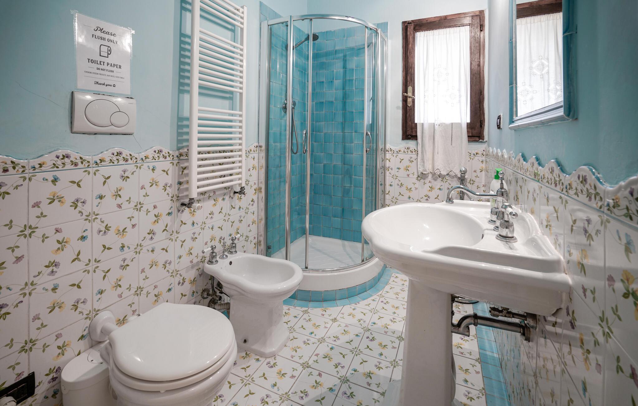 Badeværelse (nr. 1) - WC. Varmt og koldt vand. Bruser