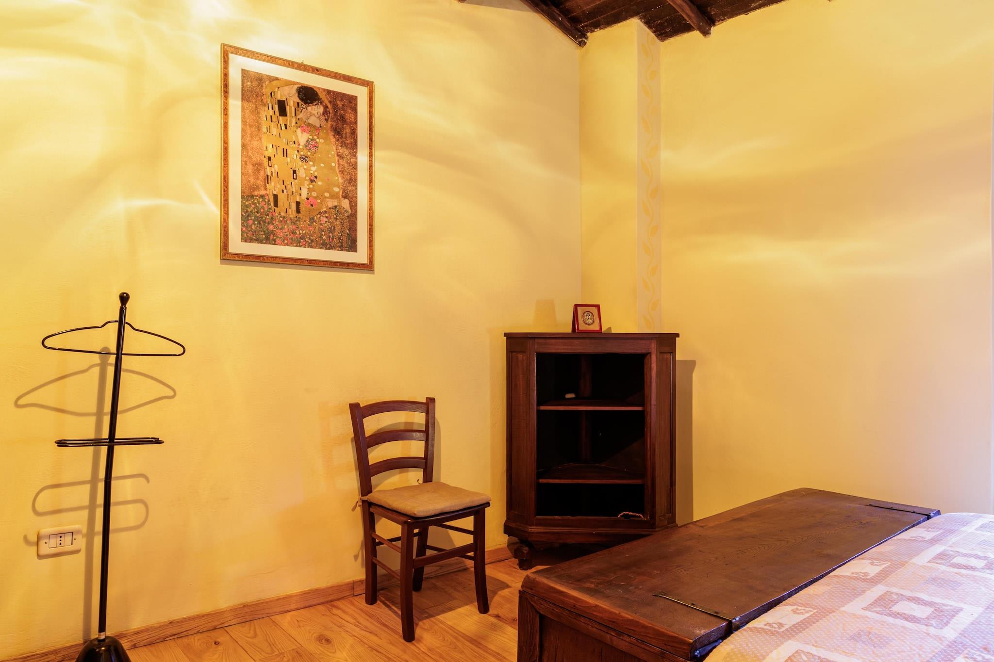 Velkommen til en charmerende lejlighed beliggende i den maleriske middelalderlandsby Firenzuola. Dette rolige tilflugtssted er omgivet af frodige grønne områder og tilbyder en fantastisk udsigt over de bølgende bakker, kun en kort køretur fra Spoleto (ca. 16 minutter), mens lokale supermarkeder og restauranter er kun få minutter væk. Perfekt for dem, der søger afslapning, området inviterer dig til at udforske den nærliggende sø Arezzo og nyde fredfyldte gåture i skoven. Denne luftige, karakteristiske lejlighed spænder over to niveauer og har en rummelig stueetage, der problemfrit kombinerer en hyggelig opholdsstue med et veludstyret tekøkken, komplet med køleskab, vaskemaskine og en indbydende pejs. Store døre fører til en ekspansiv terrasse, perfekt til at nyde din morgenkaffe eller aftensolnedgange. Ovenpå finder du et komfortabelt soveværelse med dobbeltseng, et alsidigt lille værelse ideel til et ekstra soveværelse eller arbejdsværelse og et moderne badeværelse med bruser. Udstyret med Wi-Fi til fjernarbejde og alle væsentlige bekvemmeligheder giver dette uafhængige hjem et fredeligt miljø for både fritids- og forretningsrejsende. Med en bekvem indgang og venlige naboer klar til at hjælpe, når det er nødvendigt, er Casa Borgo Francesca din ideelle base for at udforske skønheden i denne fortryllende region. Nyd den perfekte blanding af komfort og natur i omgivelser, der føles som en skjult perle.
