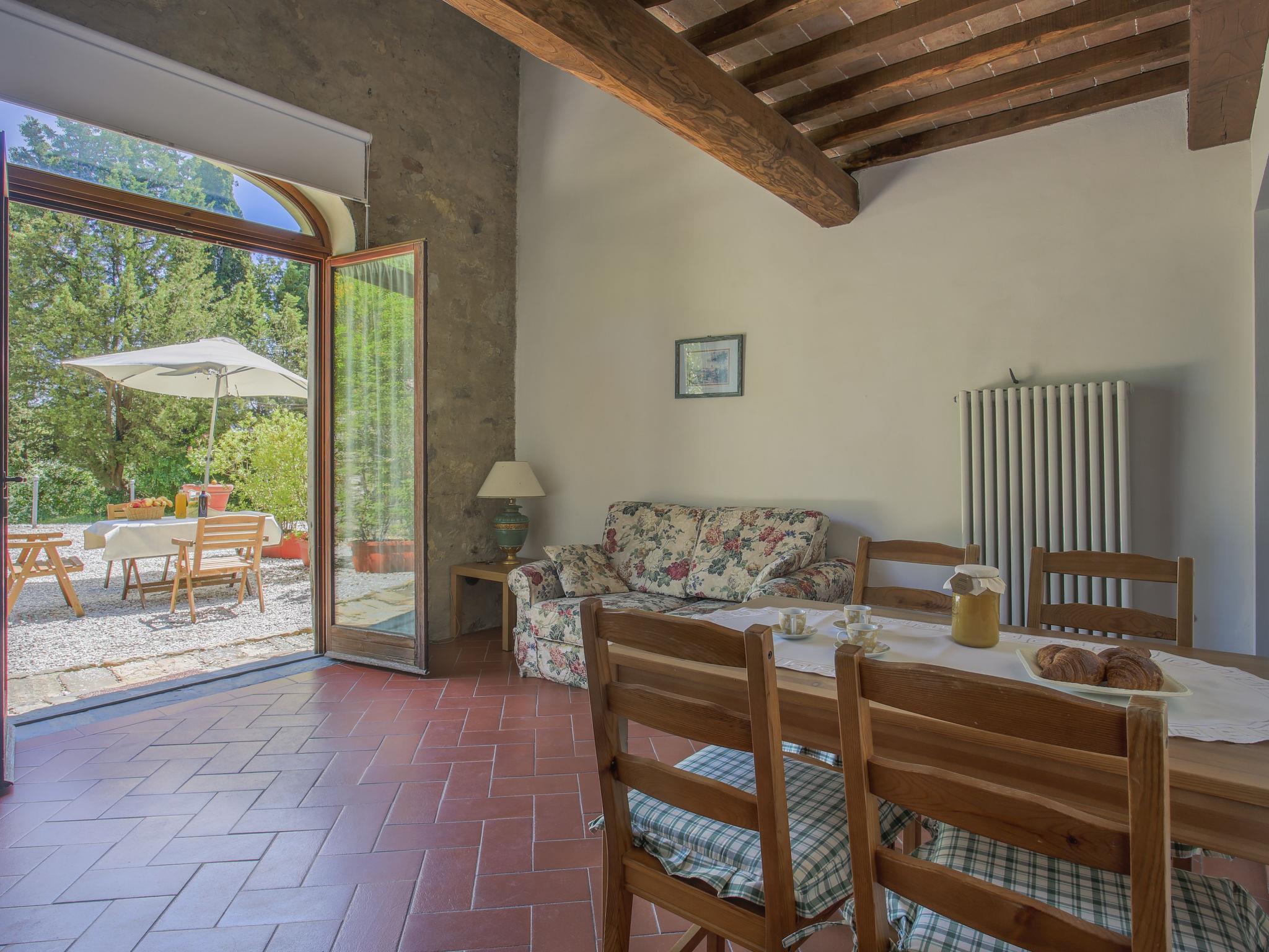 Country house "Castiglioni", detached, surrounded by trees and vineyards. 5 apartments in the residence. 11 km from the centre of Florenz/Firenze, 2.2 km from the centre of Montorsoli, outside the resort. For shared use: property 4'000 m2, garden (not fenced) with lawn and plants, swimming pool (11 x 5 m, depth 100 - 120 cm, seasonal availability: 01.May. - 30.Sep.). Outdoor shower, garden furniture, barbecue. In the house: washing machine (for shared use). Motor access (800 m via unmade road). Parking on the premises. Shop 3 km, supermarket 4 km, bus stop 2 km, railway station "Florenz/Firenze" 11 km. Walking paths from the house 50 m. Local sale of farm products. Please note: the owner lives on the same property. Dogs are not allowed in the swimming pool area.