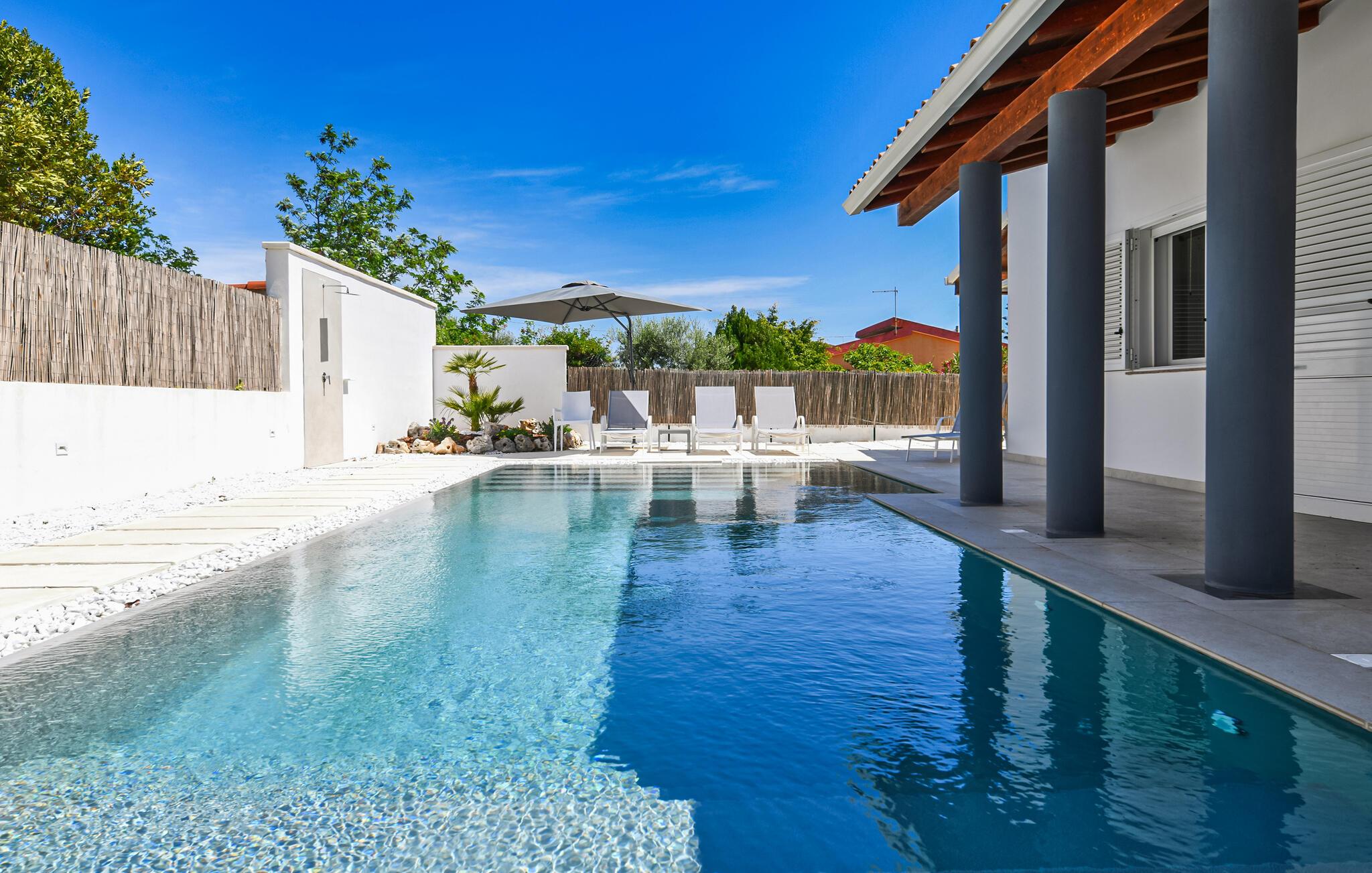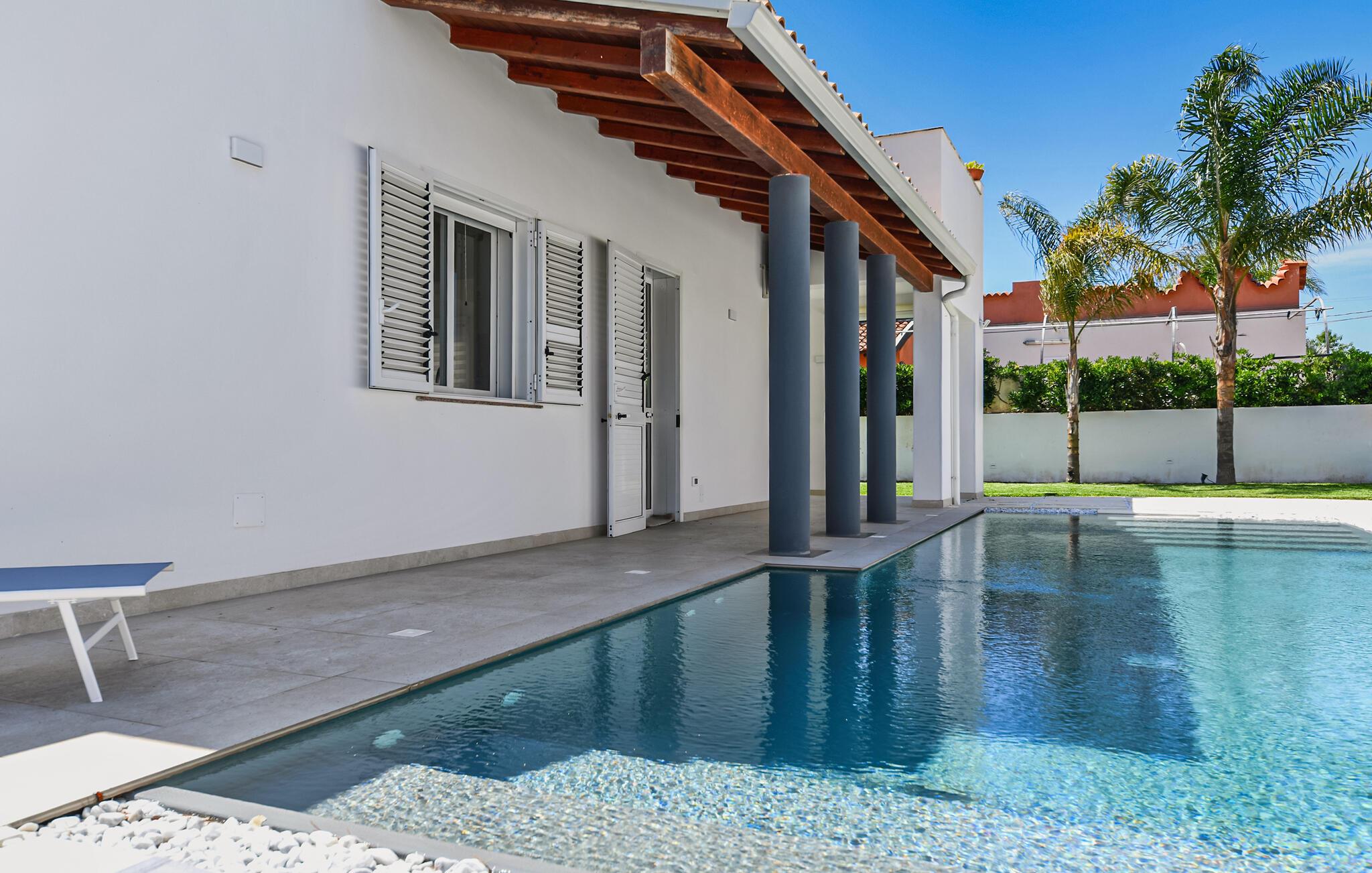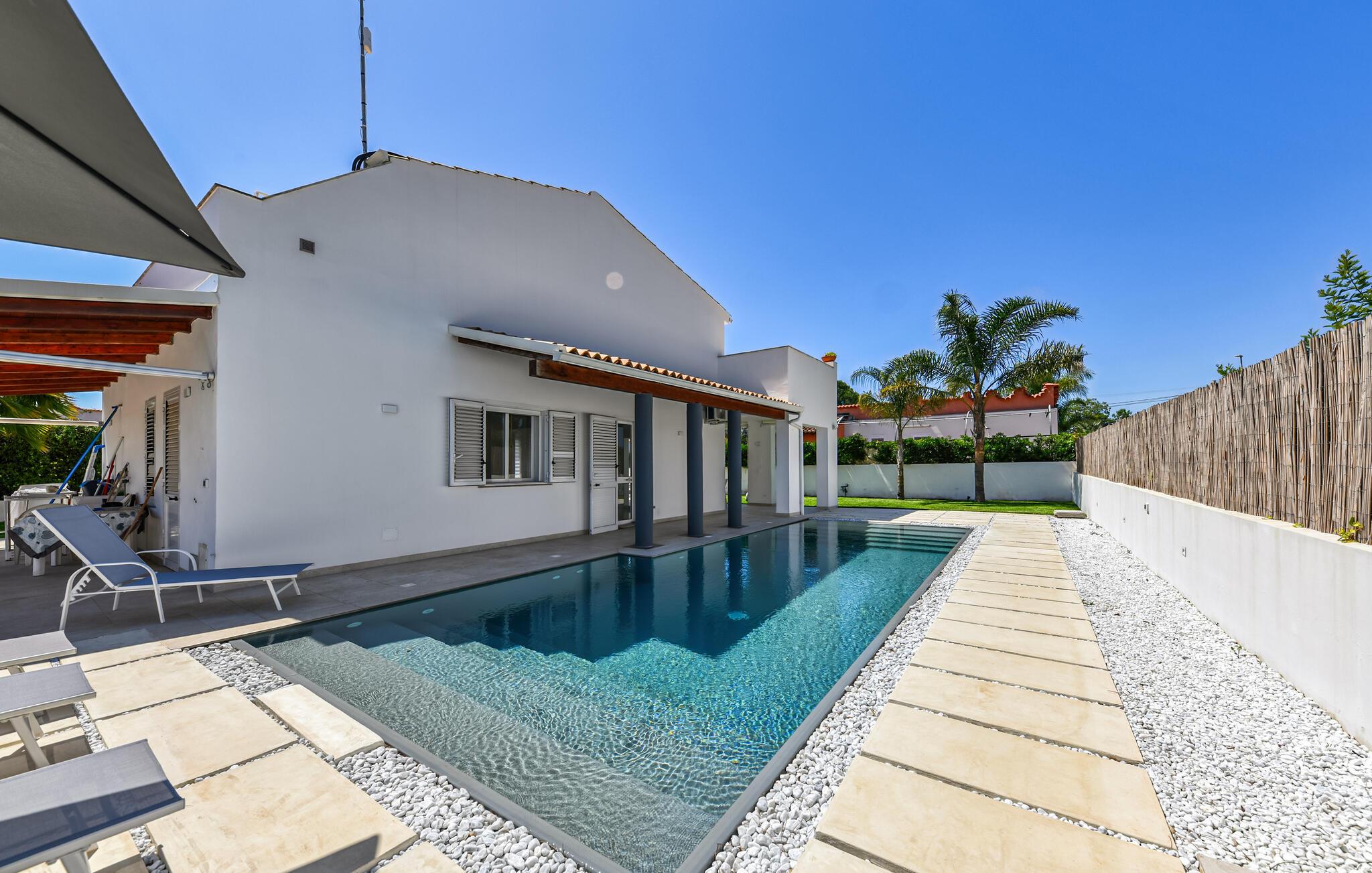 Tilbring dejlige feriedage i dette feriehus med pool, tæt på stranden.