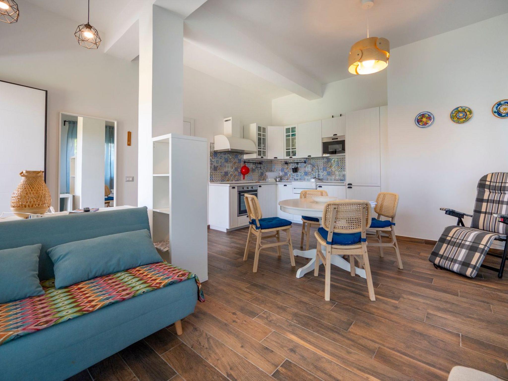 The flat has one bedroom with a double bed and one bedroom with two single beds, ideal to accommodate up to four people. The living room with a fully equipped kitchen offers a comfortable and functional environment to spend pleasant moments with family or friends.