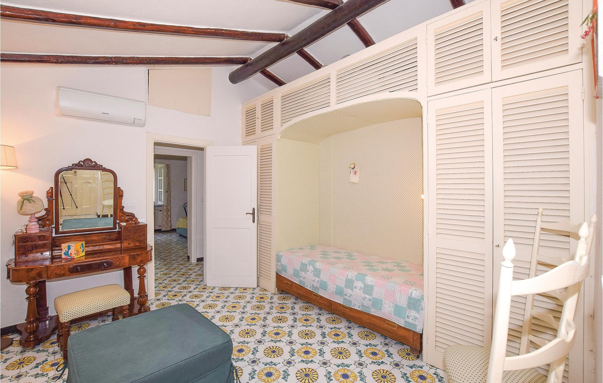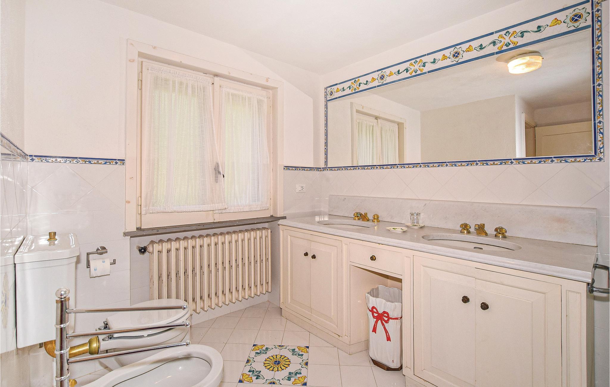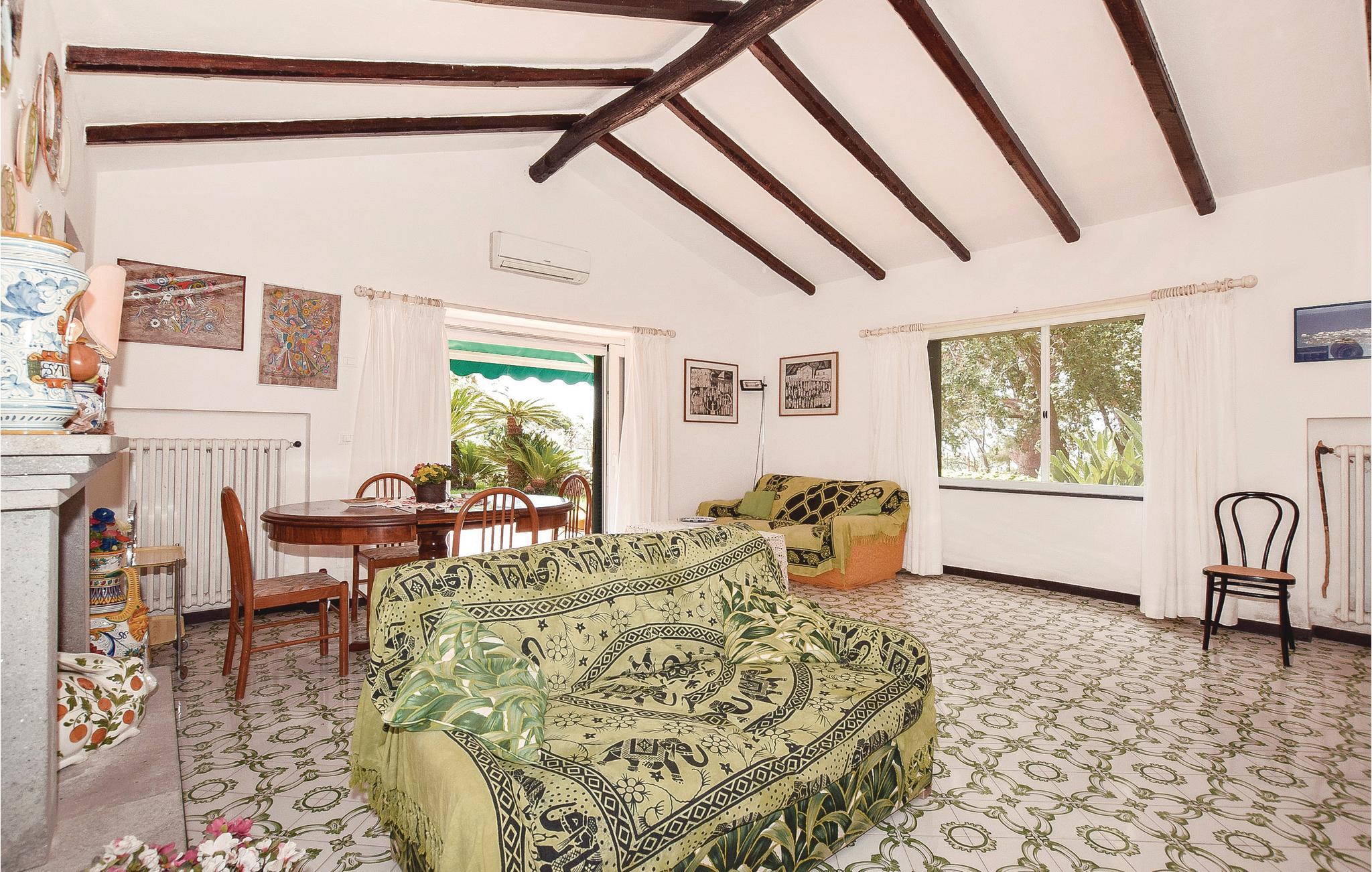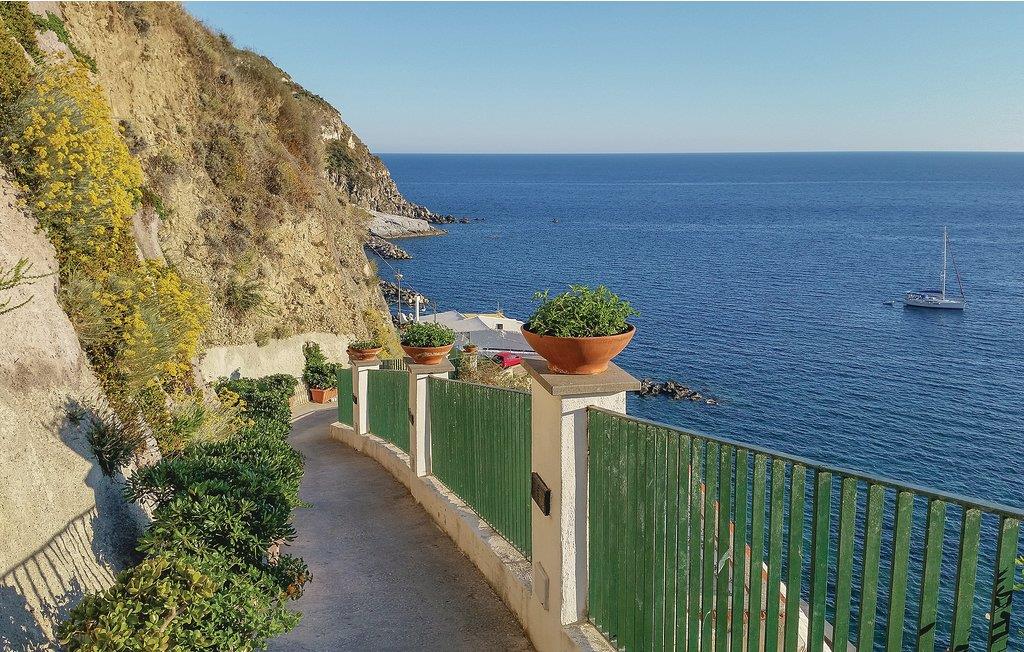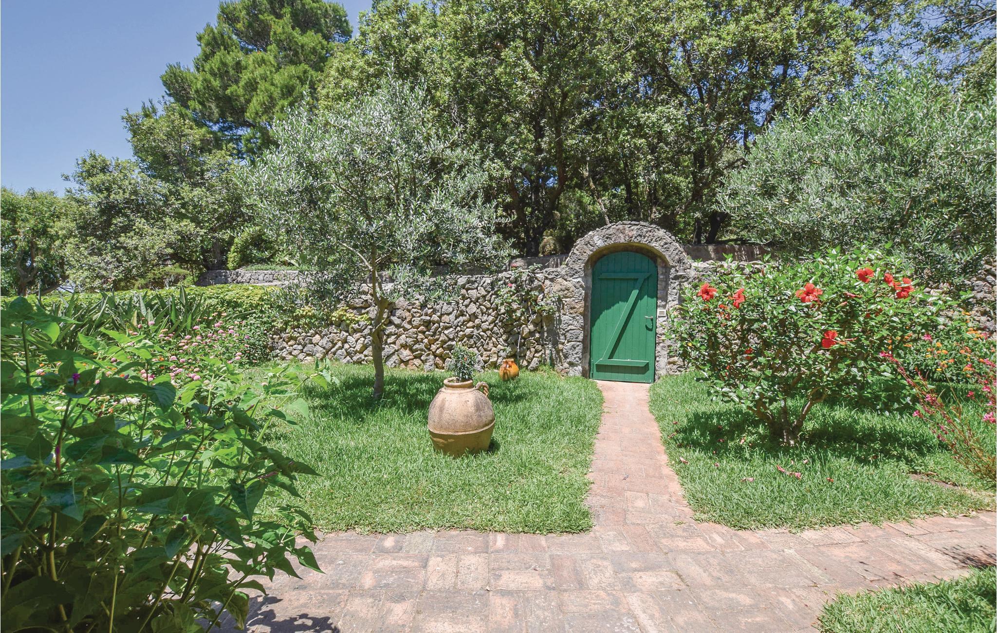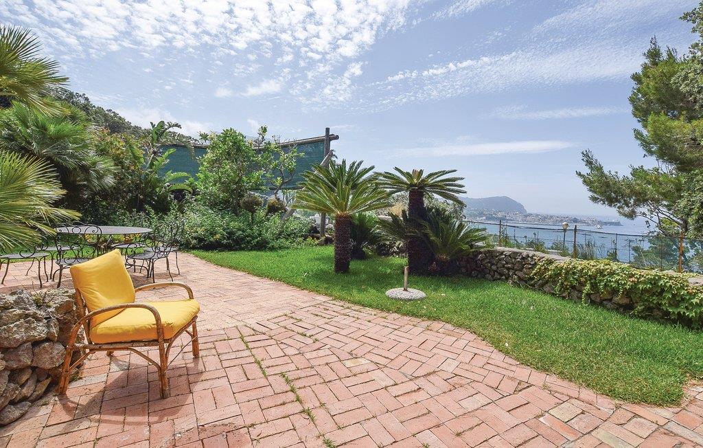 Dette eksklusive feriehus ligger på forbjerget Zaro på øen Ischia. Udearealet er præget af en stor park med haver, græsplæner og skovområder. Der er også terrasser med havemøbler, hvor du kan slappe af og nyde Ischias sol. Fra huset kan du også nyde en smuk panorama havudsigt over San Francesco-bugten (ca. 80 m i luftlinje). Gæsterne har udendørs borde med stole, liggestole og en grill til rådighed, ideel til din udendørs spisning. Huset har en pejs; Aircondition og varmepumpe findes i alle værelser. Sandstranden San Francesco ligger omkring 700 m væk og er en af ??de smukkeste på øen Ischia. Det kan nås til fods på cirka 15 minutter (vejen er op ad bakke) eller i bil (ca. 1200 m). Her finder du betalingsparkering, udstyrede badesteder, butikker, typiske restauranter, der serverer fisk og ischiske retter. Fra huset kommer du nemt til centrum af Lacco Ameno (ca. 2,7 km) med en smuk promenade, modebutikker, restauranter, pianobarer og typiske restauranter. Også et besøg værd er centrum af Forio d'Ischia (3,5 km) med lystbådehavnen og den historiske landsby, hvor du kan leje biler, scootere og cykler. I nærheden ligger den engelske komponist Sir William Waltons residens med en park med over 500 sjældne og eksotiske planter og et amfiteater, hvor ugentlige koncerter (klassisk musik) finder sted. Der er også en berømt termisk park i nærheden. Ubrolagt adgang (250 m).