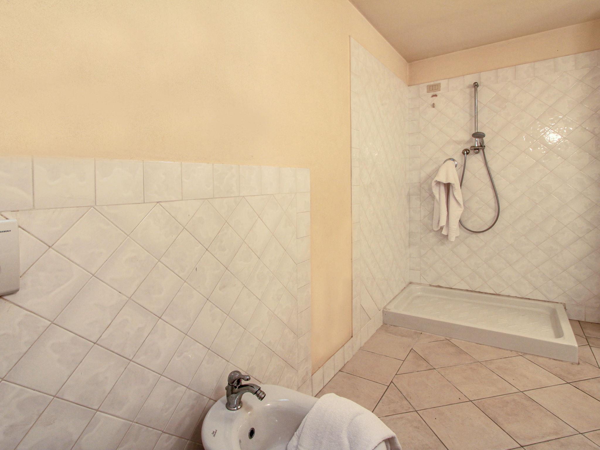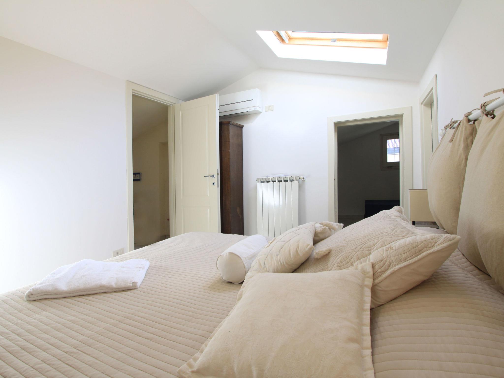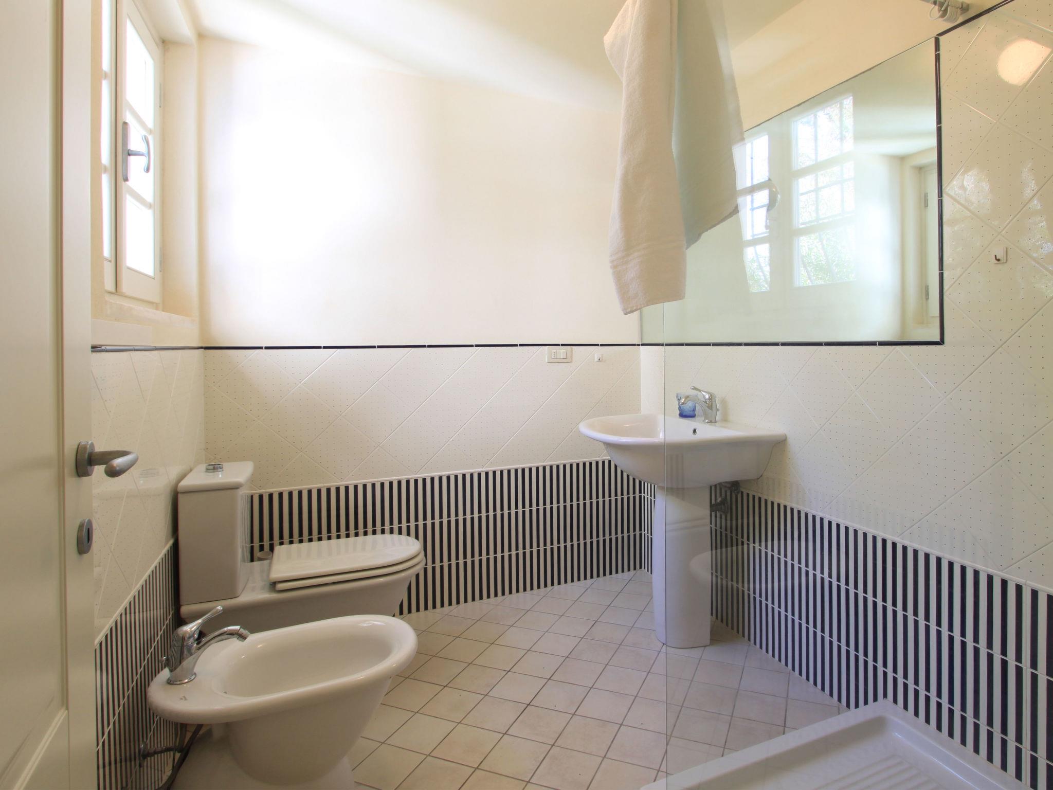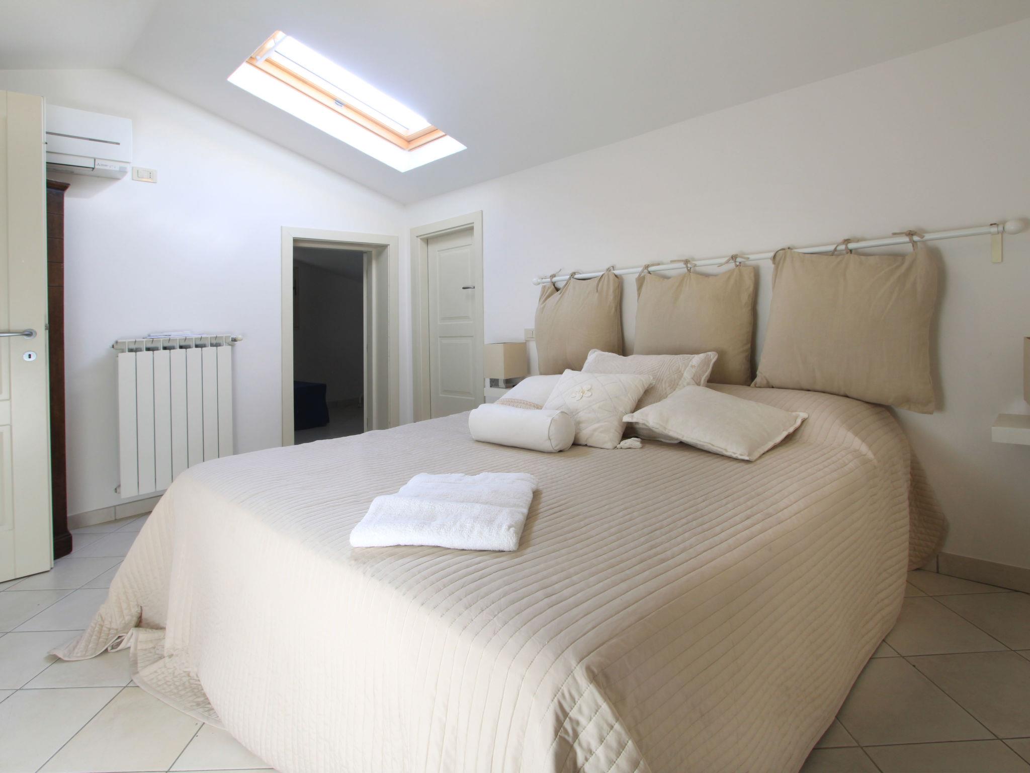 "Villa Glicine", 4-room villa 190 m2. Spacious and bright, modern and tasteful furnishings: large living/dining room with digital TV and flat screen. Exit to the garden, to the veranda, pergola, to the patio. Small kitchen (4 hot plates, dishwasher, freezer). Exit to the garden, to the patio. Sep. WC. Gas heating, air-conditioning. Heating available only from 01.11. to 15.04. On the lower ground floor: large living/dining room with 1 double sofabed and digital TV. Shower/bidet/WC. Upper floor: 1 large double bedroom with shower/bidet/WC and air conditioning. Exit to the terrace. 1 room with 2 beds, shower/bidet/WC and air conditioning. Exit to the balcony. 2nd upper floor: with sloping ceilings, 1 large double bedroom with Dressing room with shower/bidet/WC and air conditioning. Large terrace, large patio, large garden. Terrace furniture, deck chairs, sitting area. Facilities: washing machine. Internet (WiFi). Parking (fenced) at the house. Please note: fire extinguisher. IT046013B436ABLMEO