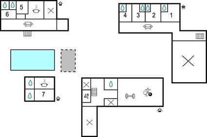 Badeværelse (nr. 7) - WC. Varmt og koldt vand. Bruser