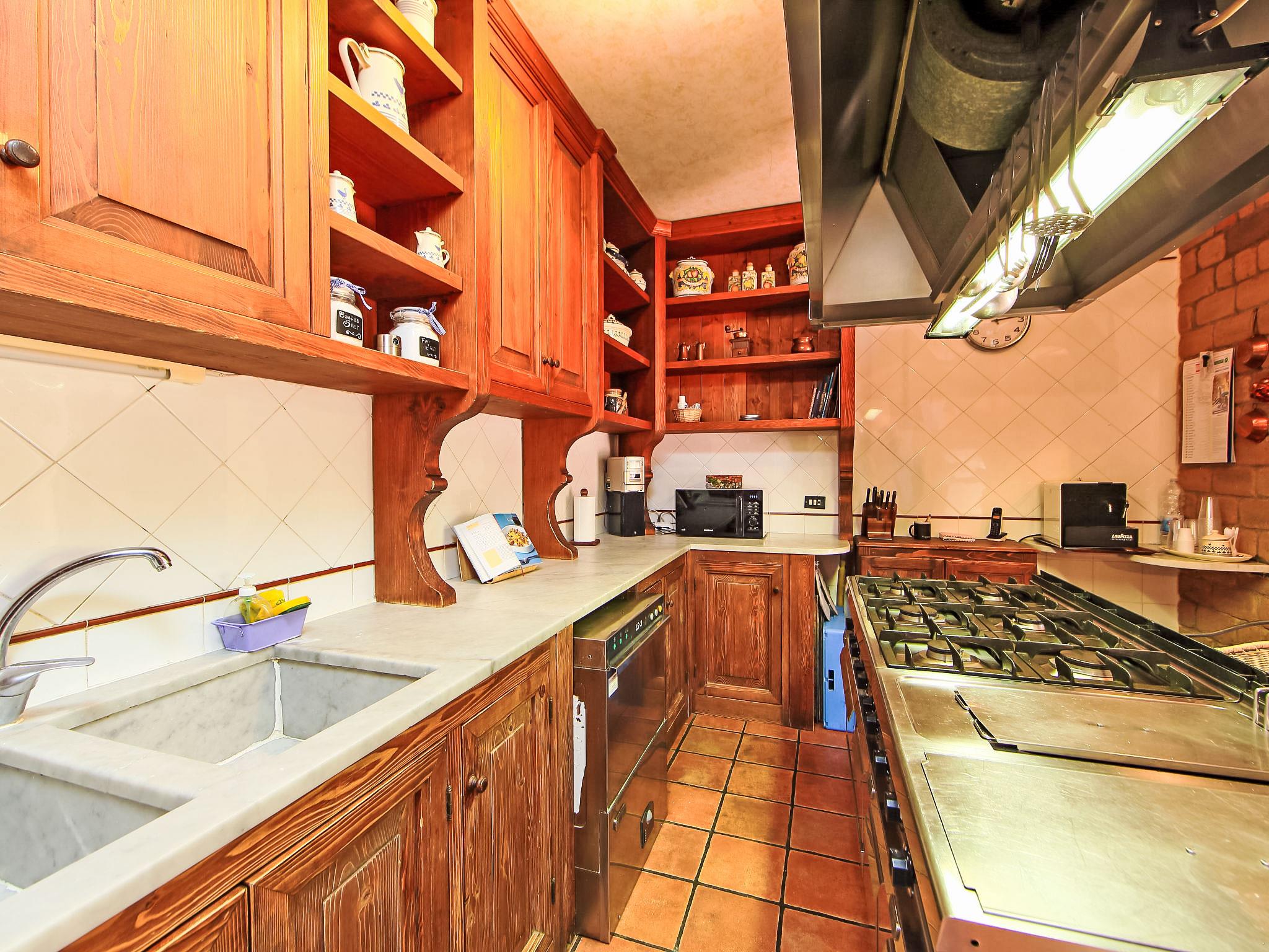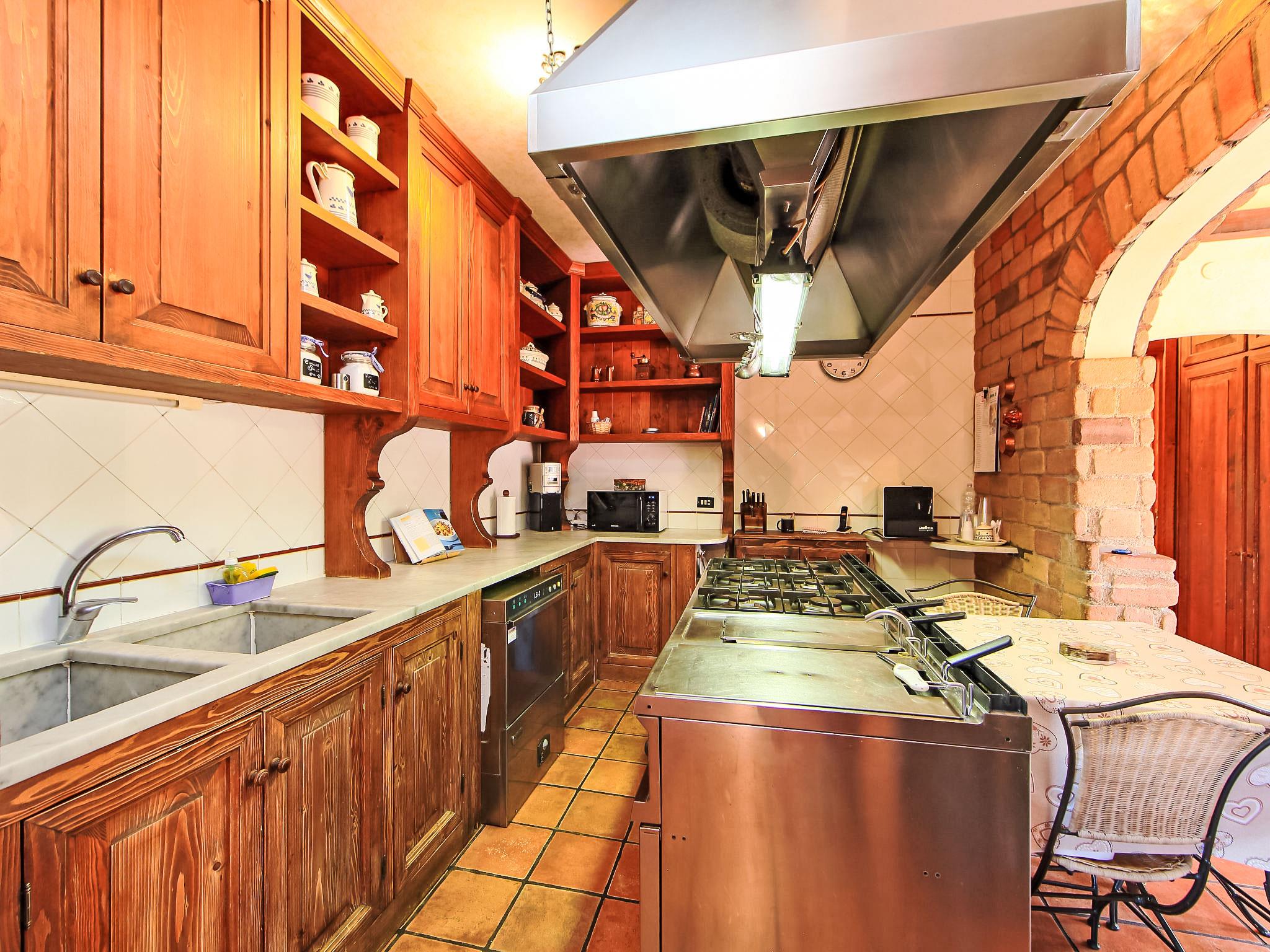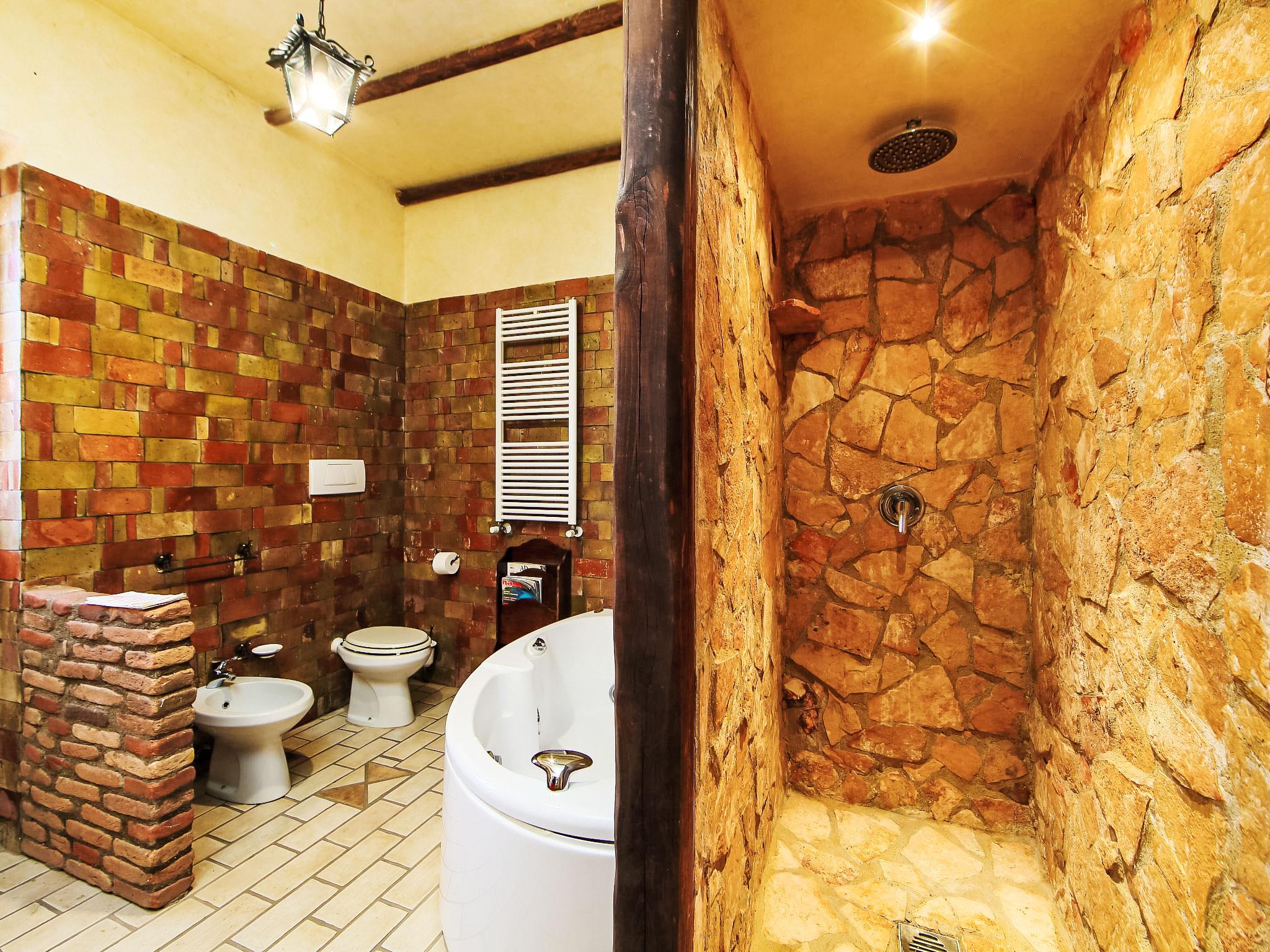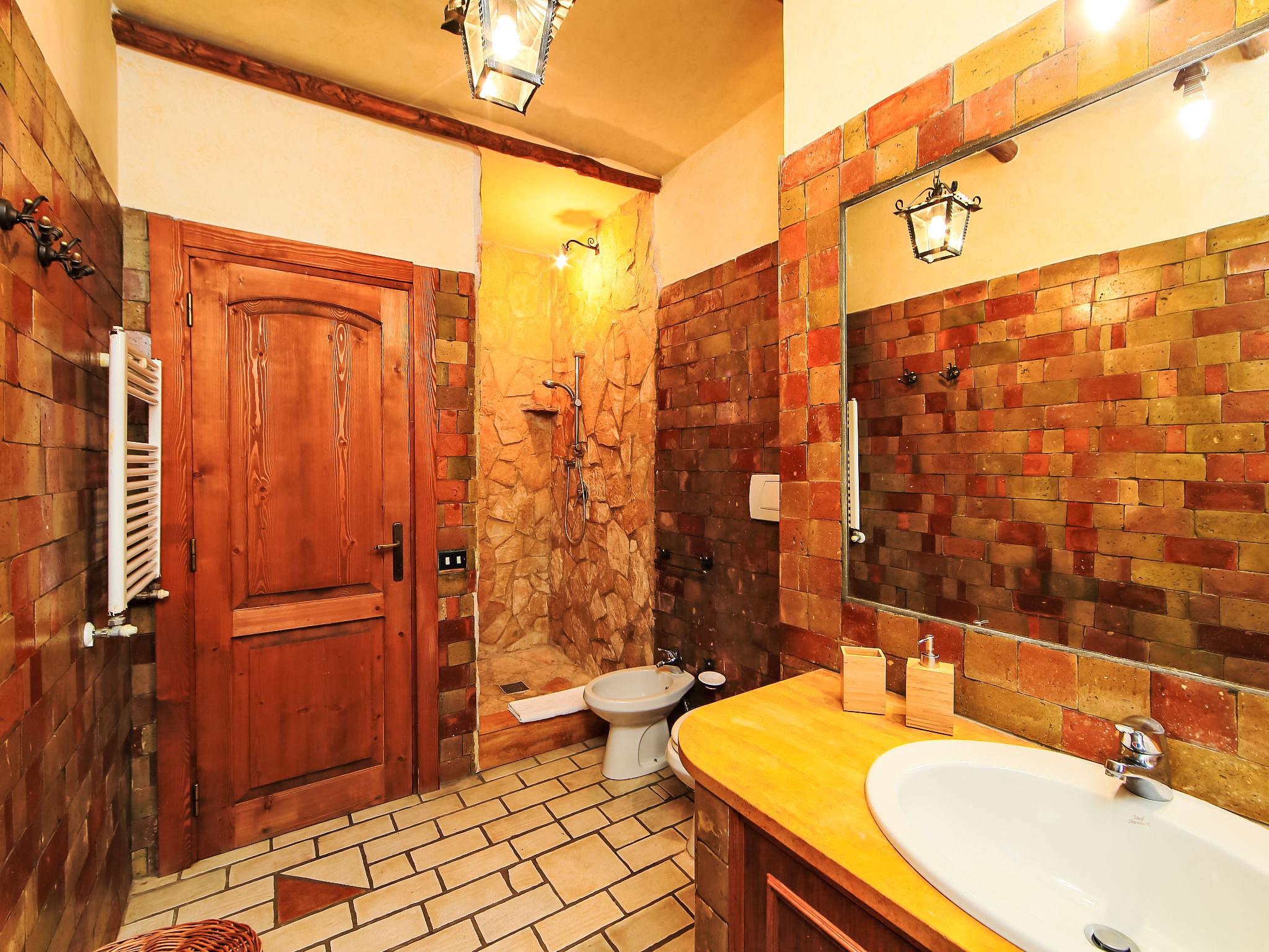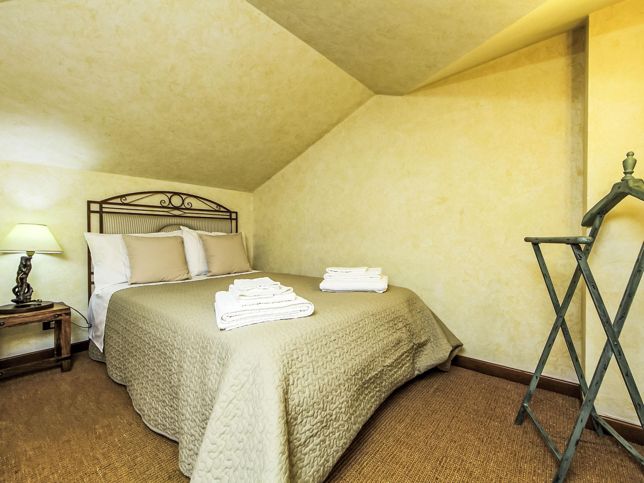 8-room villa 350 m2 on 3 levels. Spacious and bright, luxurious furnishings: large entrance hall. Open large living room with open-hearth fireplace, satellite TV, flat screen and air conditioning. Exit to the garden, to the terrace. Dining room with air conditioning. 2 rooms with sloping ceilings, each room with 1 bed (120 cm, length 190 cm), 1 french bed (140 cm, length 190 cm), air conditioning. Exit to the garden, to the terrace. 1 room with 1 double bed, bath/shower/bidet/WC, double hand-basin, hydro massage bath, TV and air conditioning. Exit to the balcony. Kitchen (6 hot plates, oven, dishwasher, toaster, kettle, microwave, freezer, electric coffee machine, Capsules for coffee machine (6) free). Exit to the garden. 2 showers/bidet/WC. Heating, air-conditioning. On the lower ground floor: large living/dining room with open-hearth fireplace, dining table, satellite TV and flat screen. Exit to the garden. Shower/bidet/WC. Upper floor: 1 large room with sloping ceilings with 1 double bed (160 cm, length 190 cm), TV (flat screen), air conditioning. Exit to the balcony. 1 room with sloping ceilings with (160 cm, length 190 cm), 1 double bed, TV, flat screen and air conditioning.) with dining table. Shower/bidet/WC. Large garden. Terrace furniture, barbecue. Very beautiful panoramic view of the countryside and Rome. Facilities: washing machine, iron, baby cot for up to 2 year olds, hair dryer. Internet (WiFi, free). Maximum 1 pet/ dog allowed. The master bathroom has a hydromassage tub. When there are less than the maximum number of guests staying at the property, not all of the bedrooms will be available for use. IT058060C2VEIARDR5