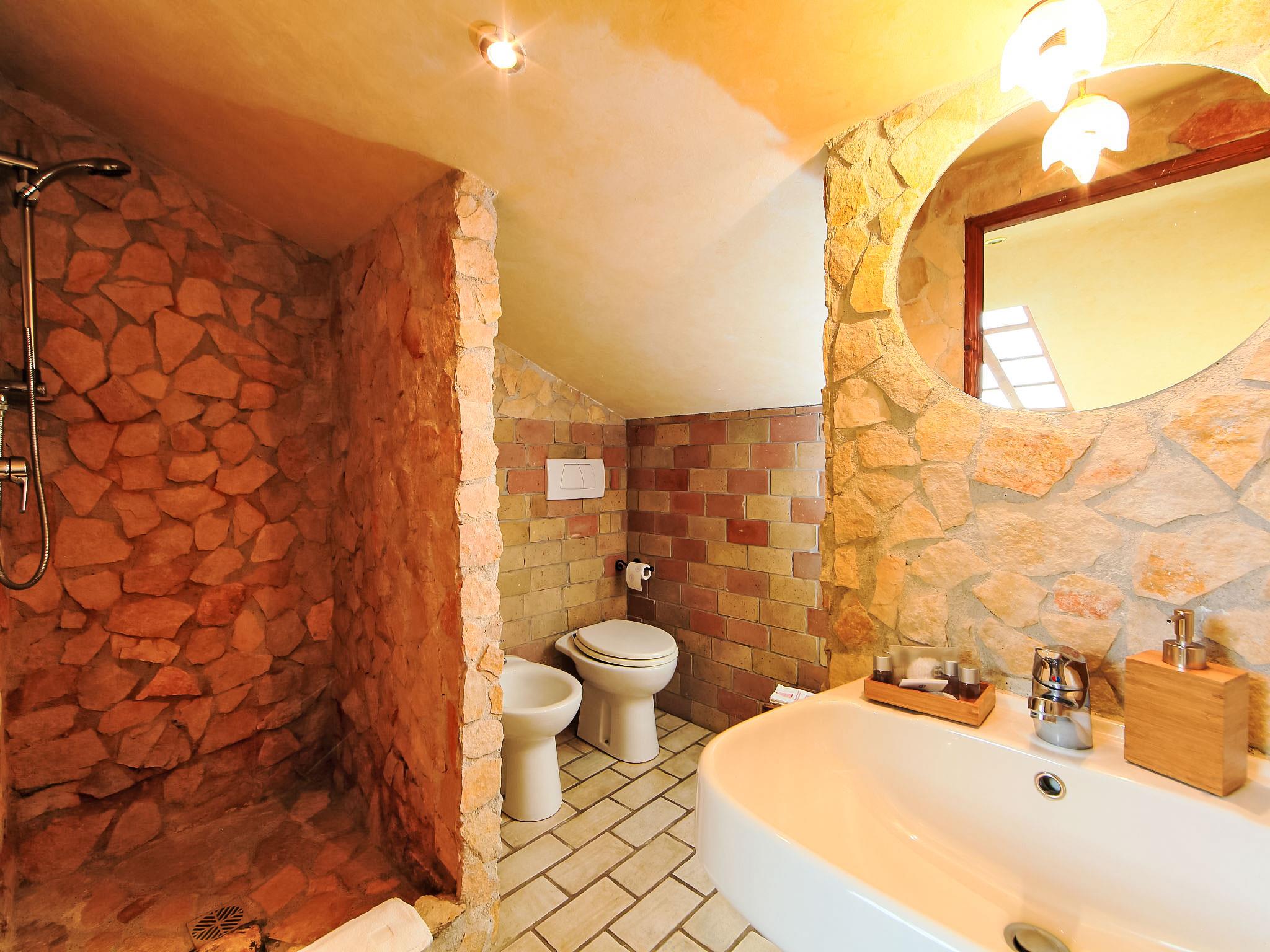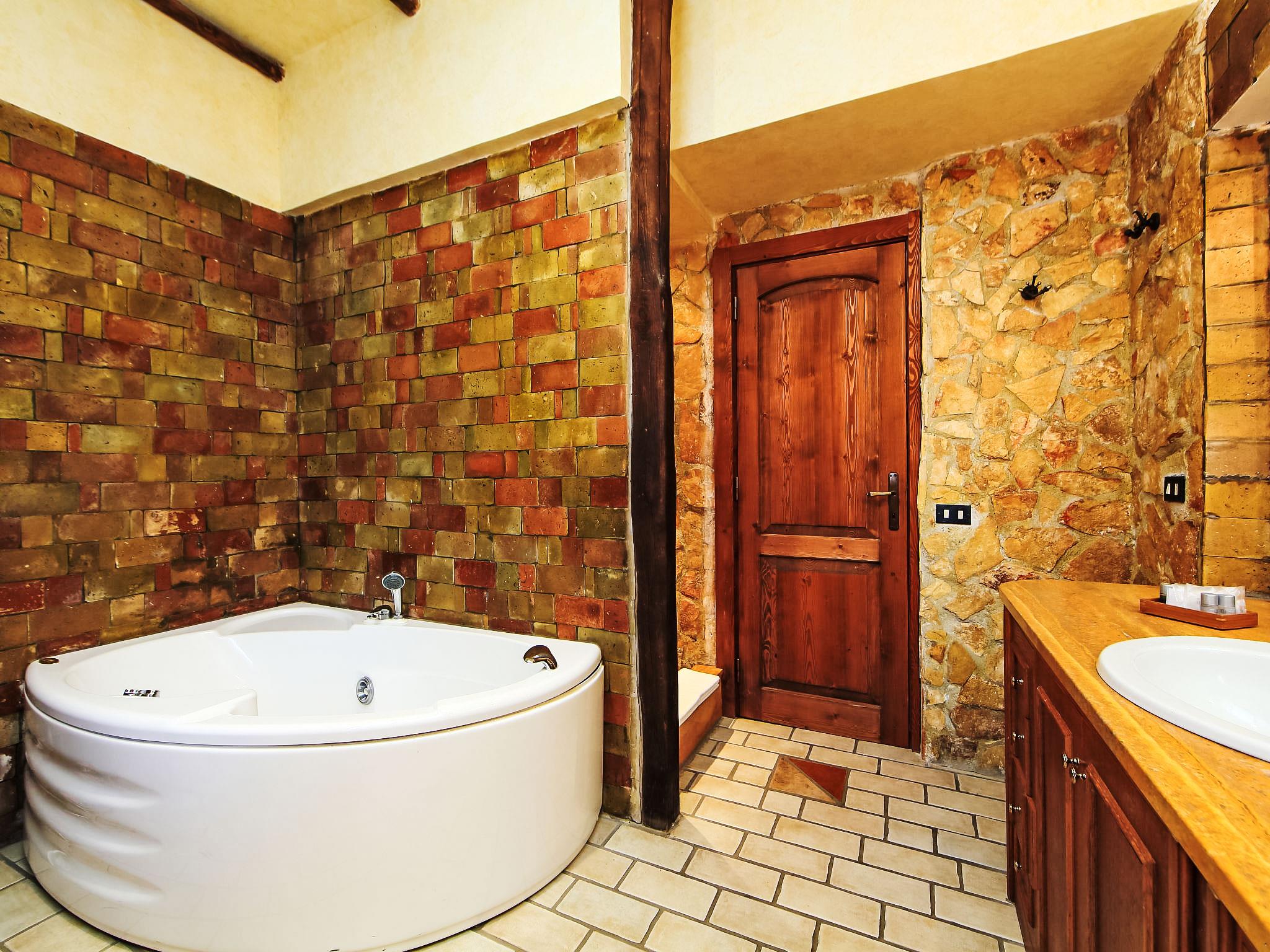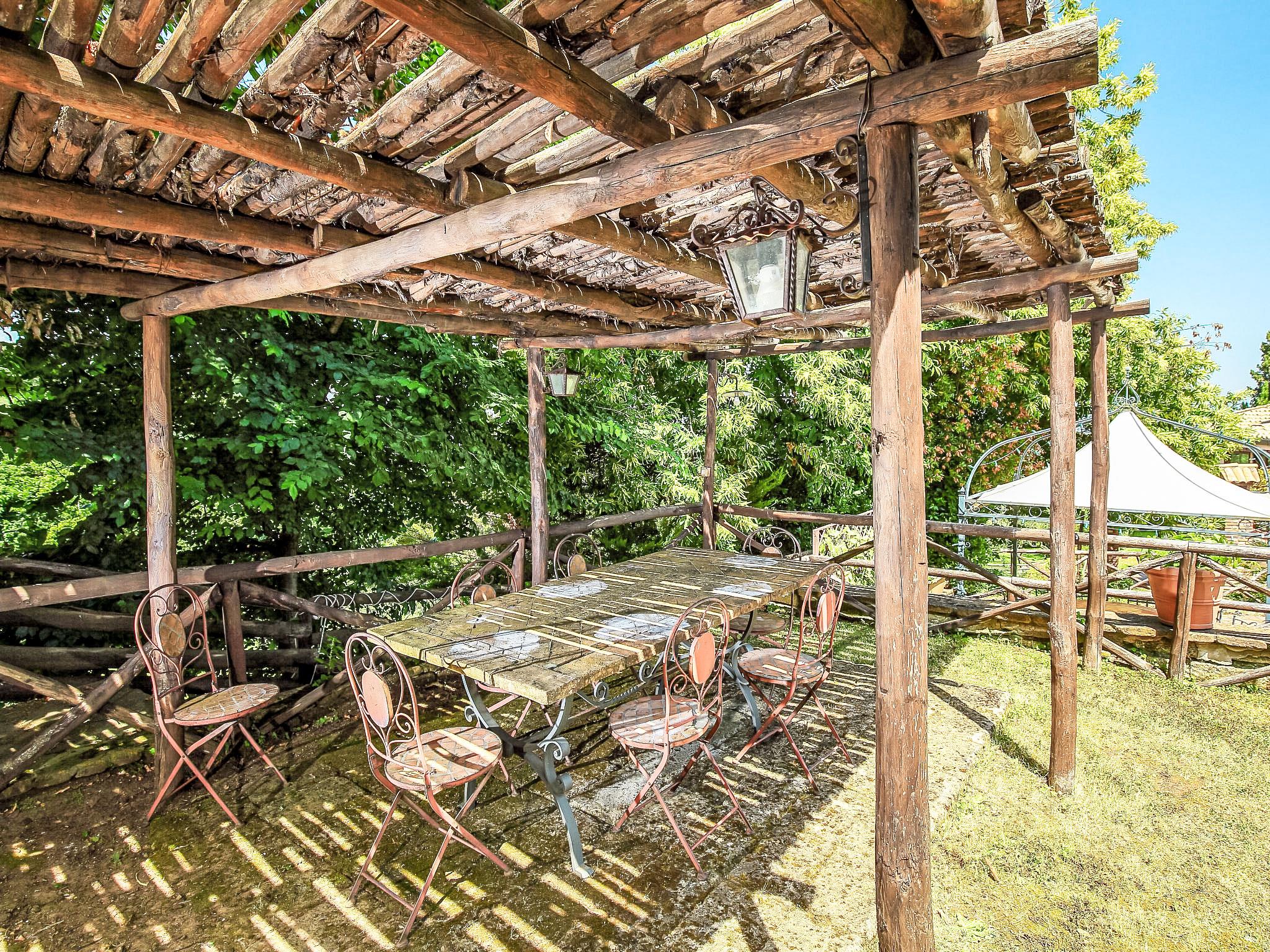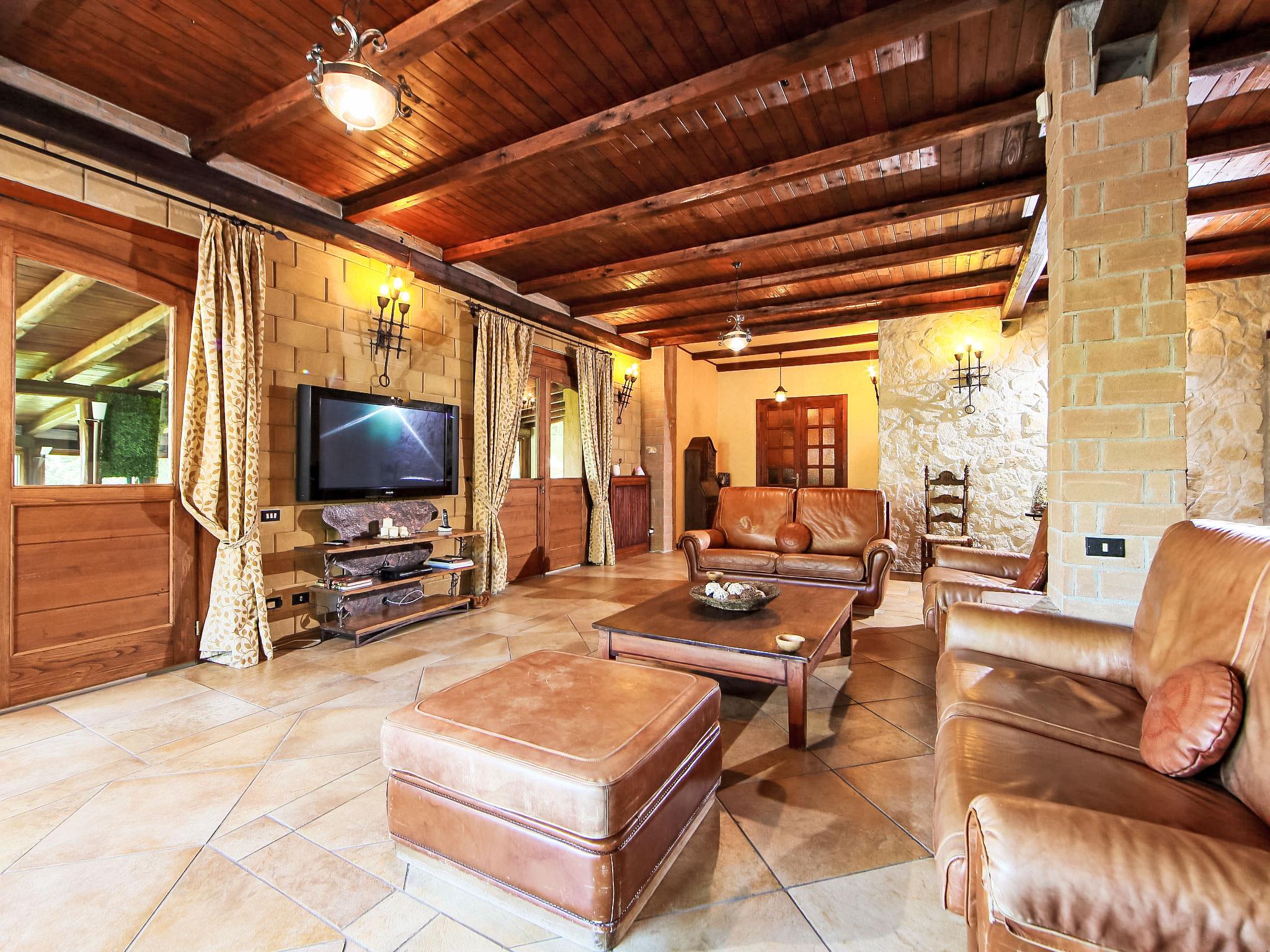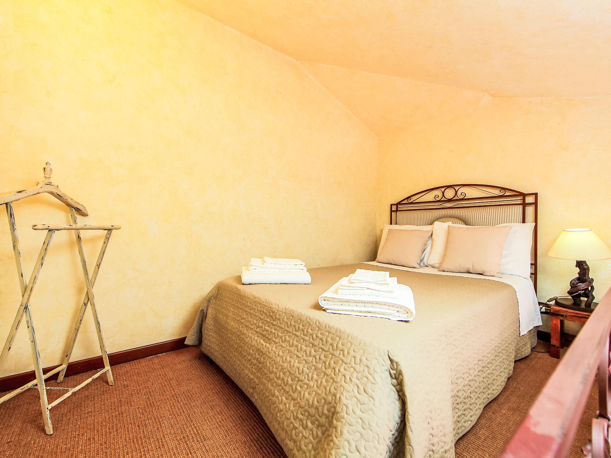 8-room villa 350 m2 on 3 levels. Spacious and bright, luxurious furnishings: large entrance hall. Open large living room with open-hearth fireplace, satellite TV, flat screen and air conditioning. Exit to the garden, to the terrace. Dining room with air conditioning. 2 rooms with sloping ceilings, each room with 1 bed (120 cm, length 190 cm), 1 french bed (140 cm, length 190 cm), air conditioning. Exit to the garden, to the terrace. 1 room with 1 double bed, bath/shower/bidet/WC, double hand-basin, hydro massage bath, TV and air conditioning. Exit to the balcony. Kitchen (6 hot plates, oven, dishwasher, toaster, kettle, microwave, freezer, electric coffee machine, Capsules for coffee machine (6) free). Exit to the garden. 2 showers/bidet/WC. Heating, air-conditioning. On the lower ground floor: large living/dining room with open-hearth fireplace, dining table, satellite TV and flat screen. Exit to the garden. Shower/bidet/WC. Upper floor: 1 large room with sloping ceilings with 1 double bed (160 cm, length 190 cm), TV (flat screen), air conditioning. Exit to the balcony. 1 room with sloping ceilings with (160 cm, length 190 cm), 1 double bed, TV, flat screen and air conditioning.) with dining table. Shower/bidet/WC. Large garden. Terrace furniture, barbecue. Very beautiful panoramic view of the countryside and Rome. Facilities: washing machine, iron, baby cot for up to 2 year olds, hair dryer. Internet (WiFi, free). Maximum 1 pet/ dog allowed. The master bathroom has a hydromassage tub. When there are less than the maximum number of guests staying at the property, not all of the bedrooms will be available for use. IT058060C2VEIARDR5