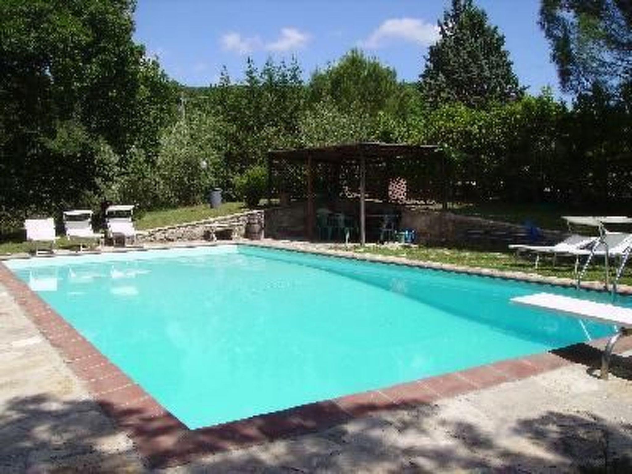 The exterior of the farmhouse is nothing short of spectacular, with a private swimming pool (6x12, 1.2-2.4 m deep) available from May 1 to September 30, offering a refreshing escape under the Tuscan sun. The property is directly at the edge of the wood, promising peace and privacy. Guests can enjoy their exclusive garden and reserved veranda, perfect for outdoor dining or simply soaking in the views of the surrounding woods. Parking is conveniently provided.