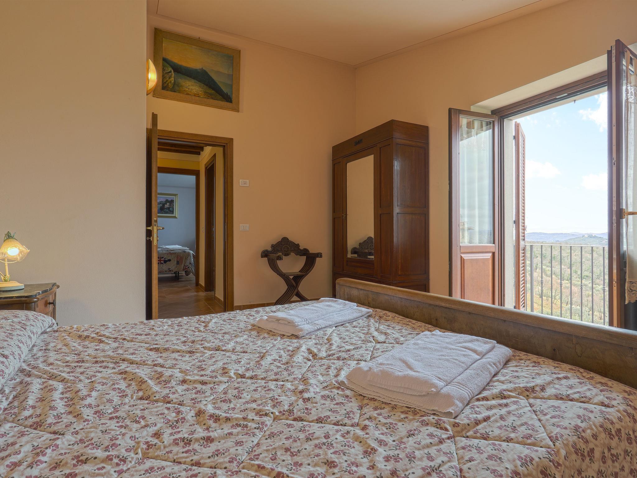 "Montechioccioli", 3-room semi-detached house 70 m2 on 2 levels, on the ground floor. Object suitable for 4 adults + 2 children. Spacious, renovated, rustic and cosy furnishings: living/sleeping room with 1 double sofabed, open-hearth fireplace, dining table and satellite TV. Kitchenette (oven, dishwasher, 4 gas rings, microwave, electric coffee machine). Sep. WC. Upper floor: 1 double bedroom. Exit to the balcony. 1 room with 2 beds (80 cm). Shower/bidet/WC. Gas heating (extra). Natural stone floors. Balcony, terrace. Terrace furniture, barbecue, deck chairs. Beautiful panoramic view of the countryside. Facilities: children's high chair, baby cot for up to 2 year olds. Internet (WiFi, free). Parking (2 cars). Please note: suitable for families. Non-smokers only. 1 small pet/ dog allowed. Private entrance. IT052013C2ZP7P7KUO
