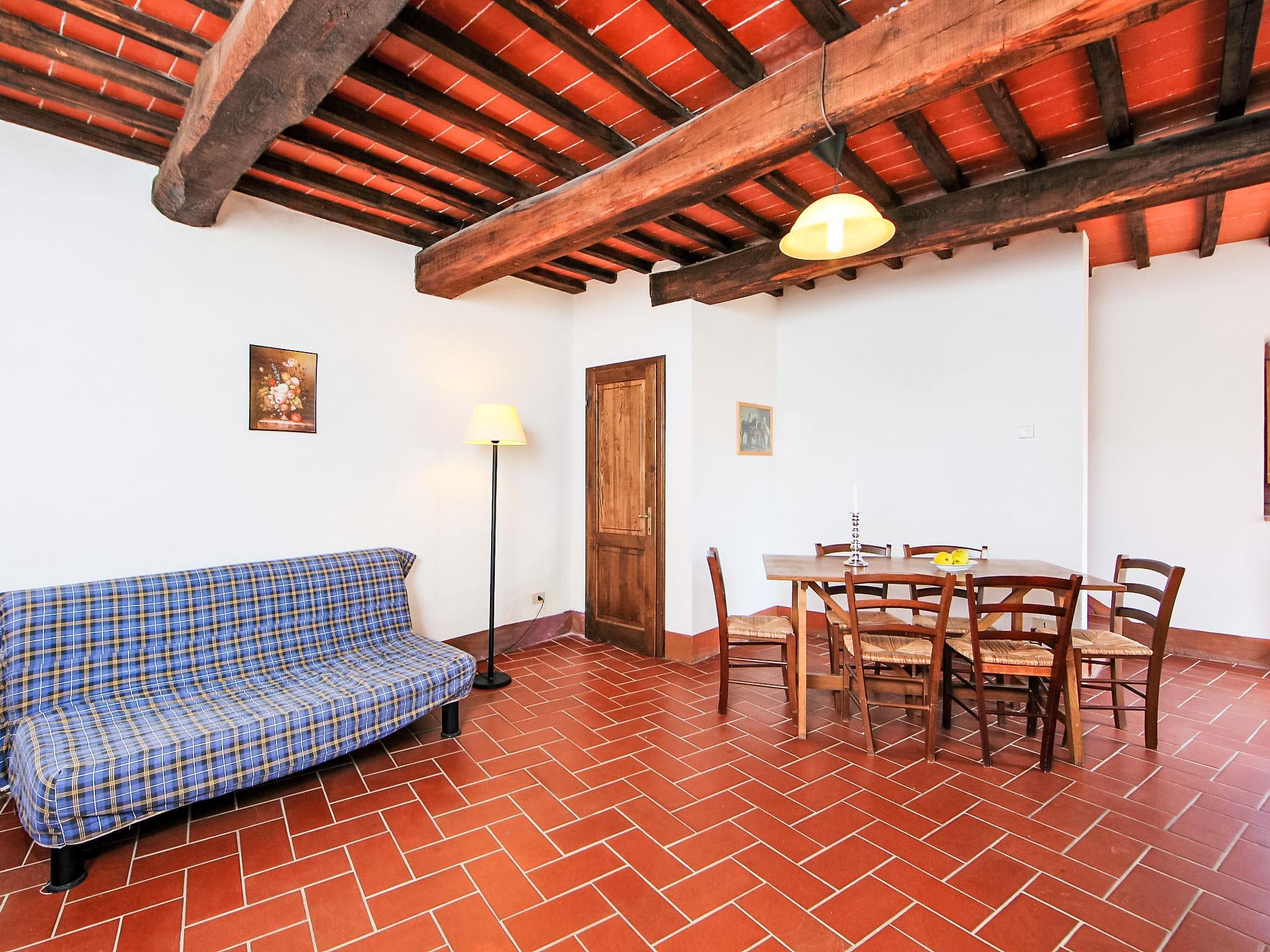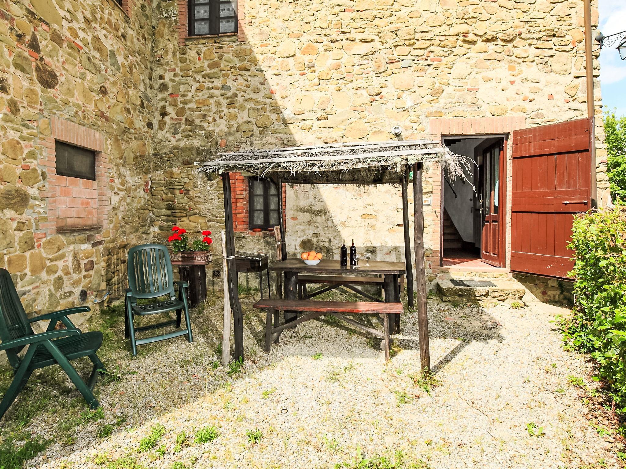 Carefully renovated "Podere La Massa" consists of a detached house and 8 apartments. It is surrounded by olive groves, fields and it enjoys a wonderful view over the Chianti hills. It is a very quiet position, ideal for nature lovers to enjoy walks or bicycle runs in the surroundings area. Each apartment has its private outdoor area fenced by hedges. A few kilometres away there are the Castello di Brolio (18 km), Meleto (14 km), Vertine (12 km) and Badia a Coltibuono and Spaltenna. Volley ball court and mini-football pitch. Children playground. Rustic, simple large working farm "La Massa". 10 km from the centre of Gaiole in Chianti, 13.5 km from the centre of Radda in Chianti, 43 km from the centre of Siena, in a secluded, quiet, elevated position, in the countryside. For shared use: natural garden 2 ha, swimming pool (14 x 7 m, depth 100 - 250 cm, seasonal availability: 03.May. - 27.Sep.). Outdoor shower, volleyball court, garden furniture, children's playground (slide). In the complex: WiFi, central heating system, washing machine (for shared use), heating to be paid on the spot, heating available only from 01.Nov. - 07.Apr.. Bread roll service on request. Motor access to the house (4 km via unmade road). Parking at the house. Shop 5 km, restaurant 5 km, bus stop 7.5 km, railway station "Montevarchi" 10 km, thermal baths "Rapolano Terme" 45 km. Nearby attractions: Castelnuovo Berardenga 19 km, Castellina in Chianti 24 km, Greve in Chianti, San Donato 30 km, Badia a Passignano 34 km, San Gimignano 52 km, Firenze 65 km. Please note: car recommended. Local sale of farm products.