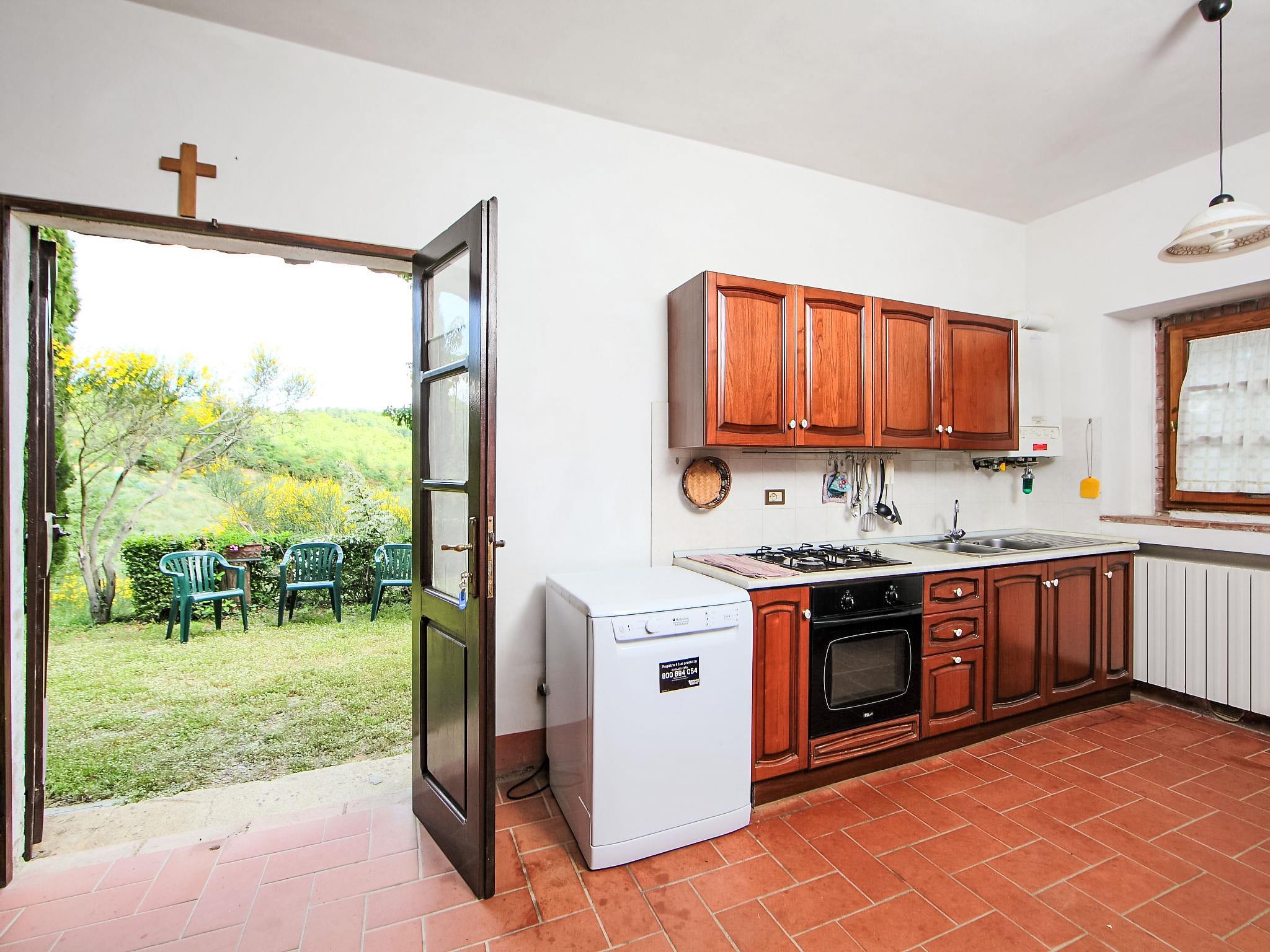 Carefully renovated "Podere La Massa" consists of a detached house and 8 apartments. It is surrounded by olive groves, fields and it enjoys a wonderful view over the Chianti hills. It is a very quiet position, ideal for nature lovers to enjoy walks or bicycle runs in the surroundings area. Each apartment has its private outdoor area fenced by hedges. A few kilometres away there are the Castello di Brolio (18 km), Meleto (14 km), Vertine (12 km) and Badia a Coltibuono and Spaltenna. Volley ball court and mini-football pitch. Children playground. Rustic, simple large working farm "La Massa". 10 km from the centre of Gaiole in Chianti, 13.5 km from the centre of Radda in Chianti, 43 km from the centre of Siena, in a secluded, quiet, elevated position, in the countryside. For shared use: natural garden 2 ha, swimming pool (14 x 7 m, depth 100 - 250 cm, seasonal availability: 03.May. - 27.Sep.). Outdoor shower, volleyball court, garden furniture, children's playground (slide). In the complex: WiFi, central heating system, washing machine (for shared use), heating to be paid on the spot, heating available only from 01.Nov. - 07.Apr.. Bread roll service on request. Motor access to the house (4 km via unmade road). Parking at the house. Shop 5 km, restaurant 5 km, bus stop 7.5 km, railway station "Montevarchi" 10 km, thermal baths "Rapolano Terme" 45 km. Nearby attractions: Castelnuovo Berardenga 19 km, Castellina in Chianti 24 km, Greve in Chianti, San Donato 30 km, Badia a Passignano 34 km, San Gimignano 52 km, Firenze 65 km. Please note: car recommended. Local sale of farm products.
