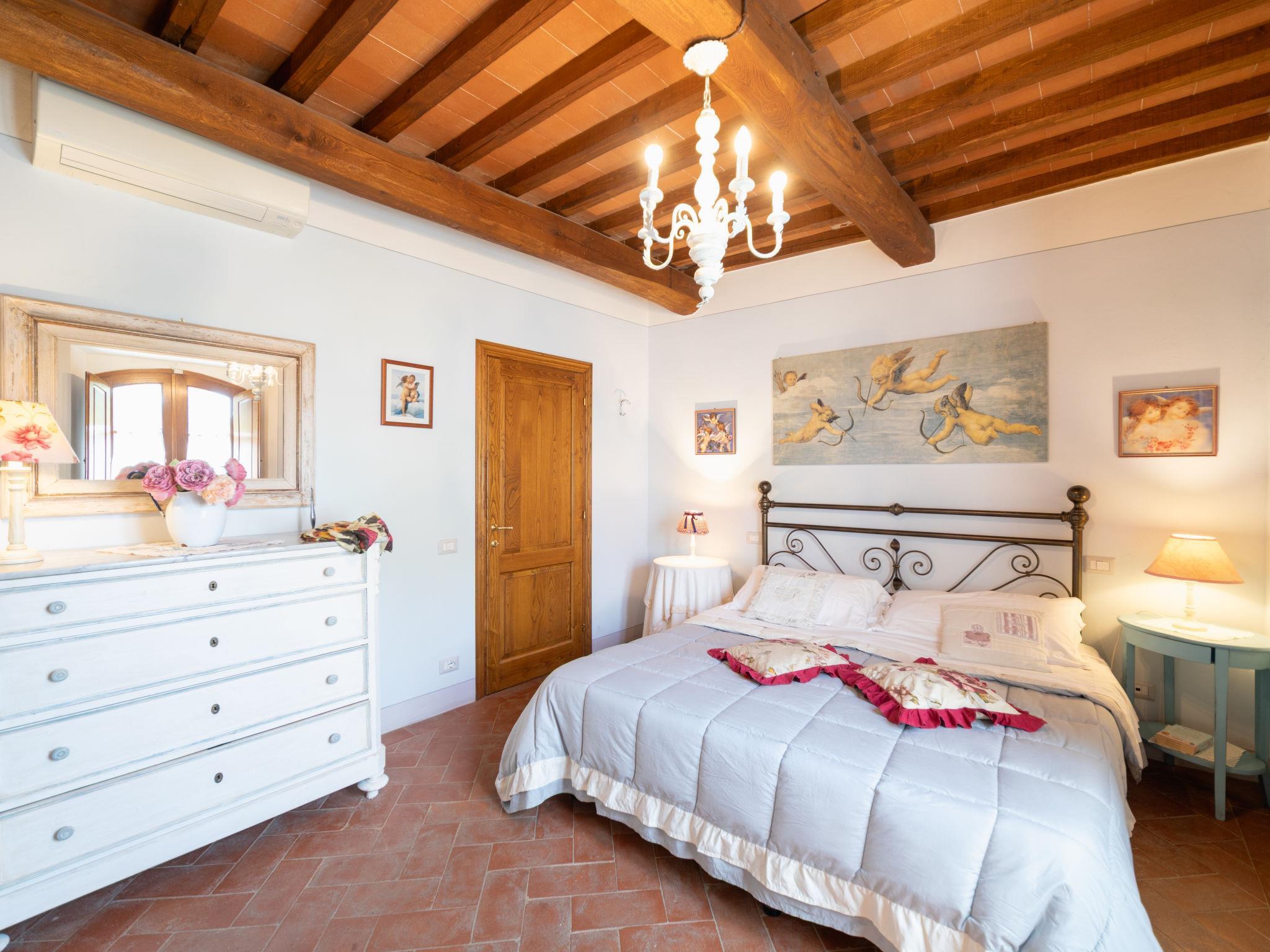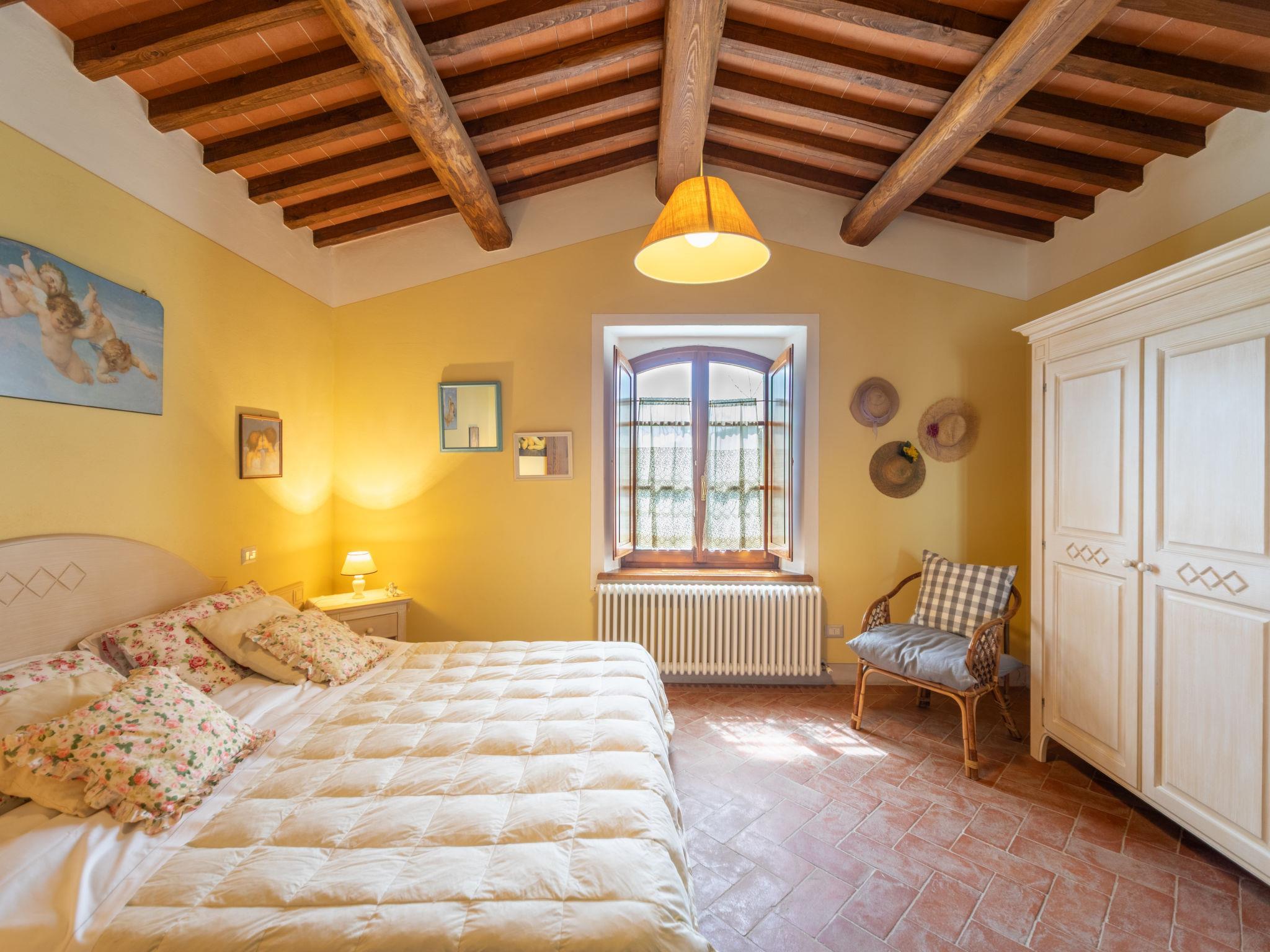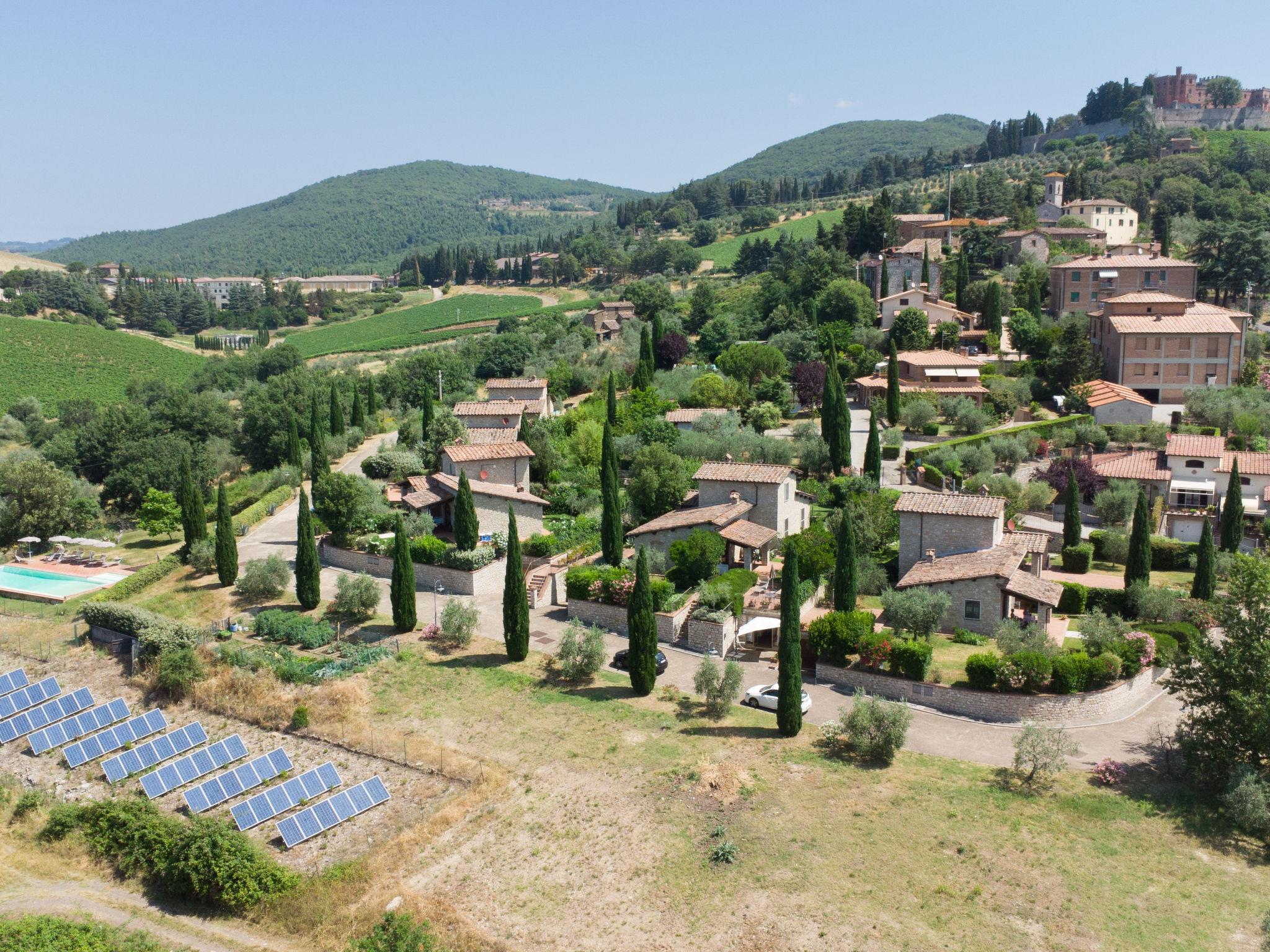 Resort "San Regolo", 460 m a.s.l.. 6 houses in the resort. In the hamlet San Regolo 10 km from the centre of Gaiole in Chianti, 16 km from the centre of Radda in Chianti, 76 km from the centre of Firenze, in a sunny position on top of a hill, residential area (villas), in the countryside. For shared use: swimming pool (15 x 6 m, depth 120 - 220 cm, seasonal availability: 01.May. - 25.Oct.). Children's pool, outdoor shower, garden furniture, pool maintenance by the owner/gardener. In the complex: reception, massage (extra). Central heating system, laundry, washing machine (for shared use), heating to be paid on the spot (29.Mar. - 31.Oct.), heating available only from 01.Nov. - 28.Mar.. Available: bicycles (6) (extra). Cook on request (extra). Parking on the premises. E-charging station. Shop 10 km, grocery 5 km, supermarket 10 km, restaurant 1 km, bus stop 10 km, sandy beach "Castiglione della Pescaia" 115 km, thermal baths "Rapolano Terme" 26 km. Nearby attractions: Castello di Brolio 2 km, Castelnuovo Berardenga 13 km, Siena 20 km, Castellina in Chianti 27 km, Greve in Chianti, Monteriggioni 35 km, Monte San Savino 39 km. Please note: suitable for families. The photograph shows a typical example.
