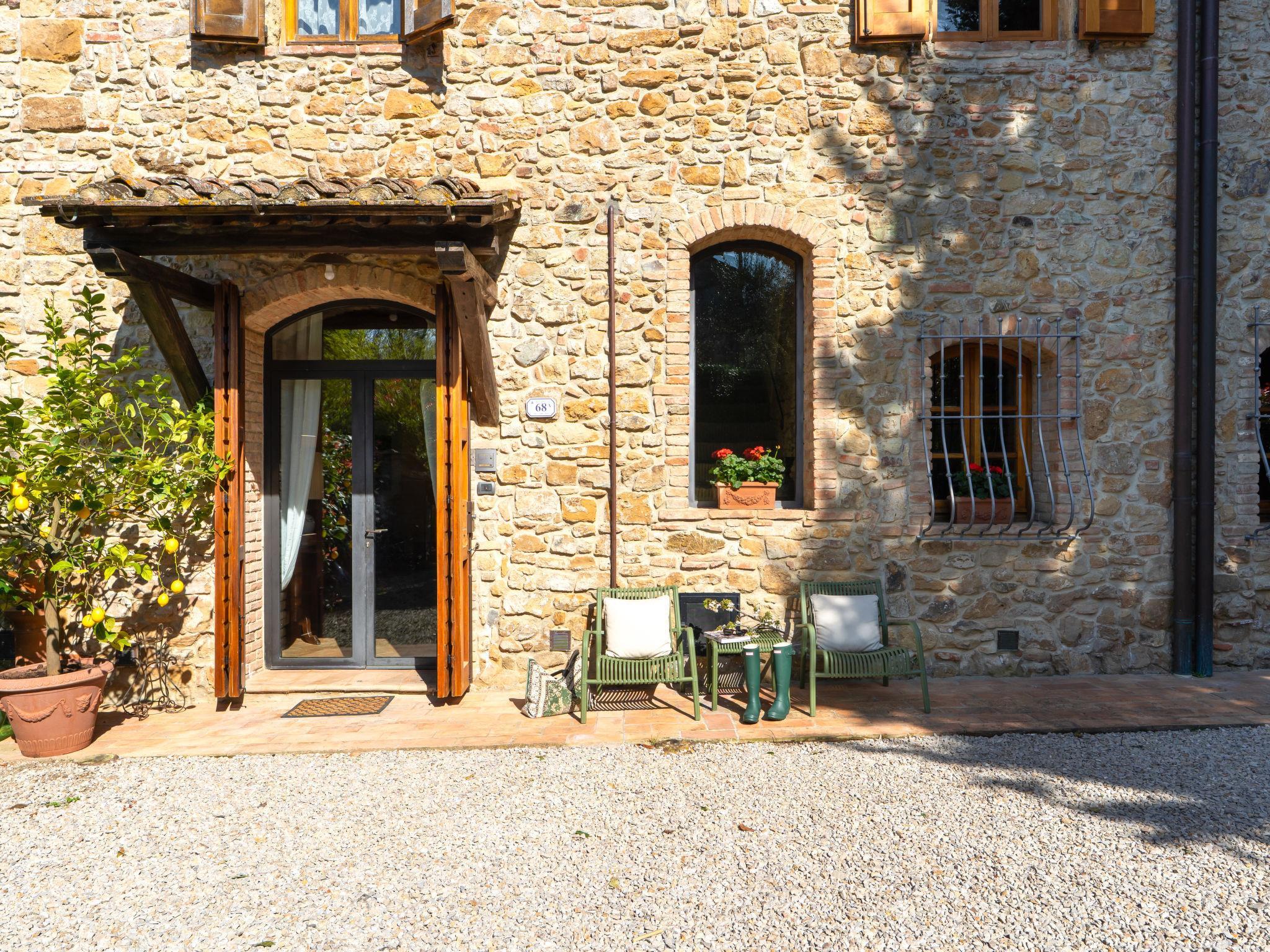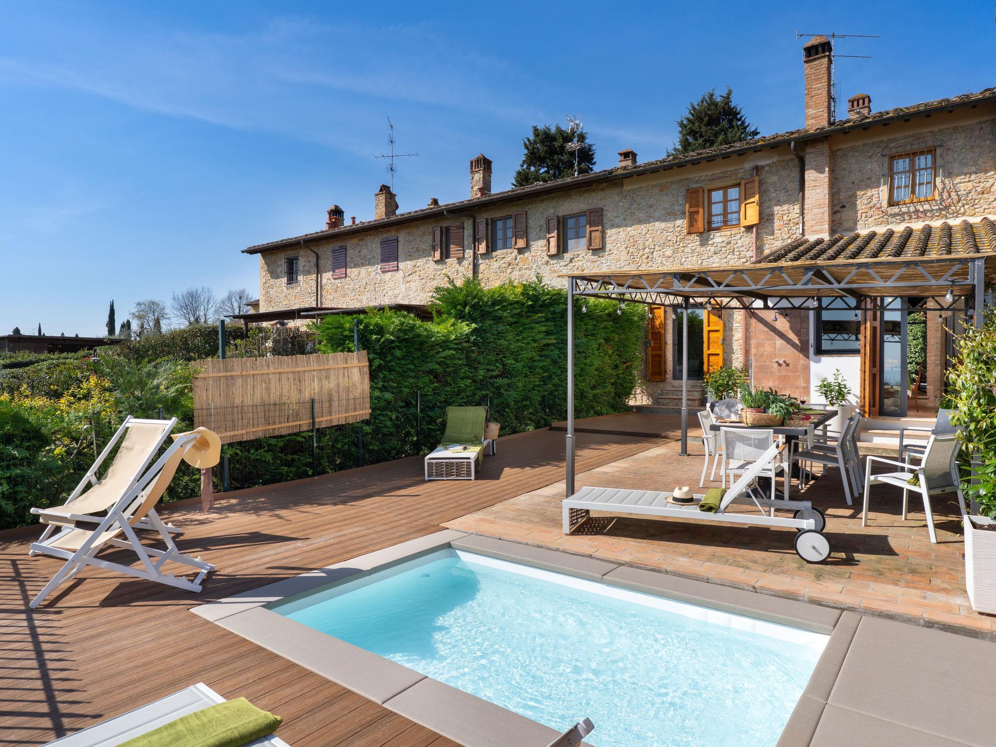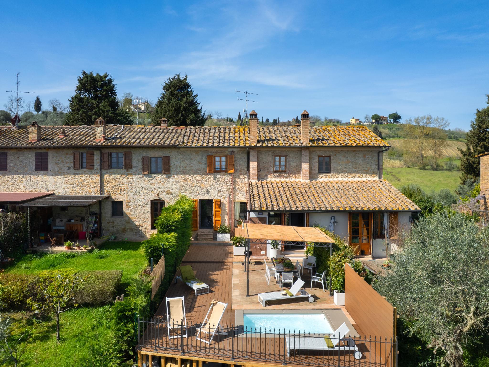 Restored farmhouse in the Tuscan tradition, in a panoramic position between the hills of Siena and Florence. Arranged on two floors, with period furnishings and private courtyard with mini hydromassage pool. Country house "Irene", 332 m a.s.l., semi-detached, renovated in 2025. 1.5 km from the centre of Gambassi Terme, 8 km from the centre of Montaione, 60 km from the centre of Firenze, in a quiet, sunny, elevated position on top of a hill, in the countryside. Private: garden 270 m2 (fenced), swimming pool (4 x 3 m, depth 71 cm, seasonal availability: 01.Apr. - 01.Oct.). Outdoor shower, garden furniture, barbecue, pool maintenance by the owner/gardener. In the house: air conditioning. Cook on request. Motor access to the house (200 m via unmade road). Parking on the premises. Shop 2 km, supermarket 2 km, restaurant 2 km, bus stop 2 km, railway station 8 km. Nearby attractions: San Gimignano 19 km, Volterra 29 km, Peccioli 30 km, Lajatico 35 km, Castellina in Chianti 44 km, Siena 53 km. Cooking courses bookable on request.