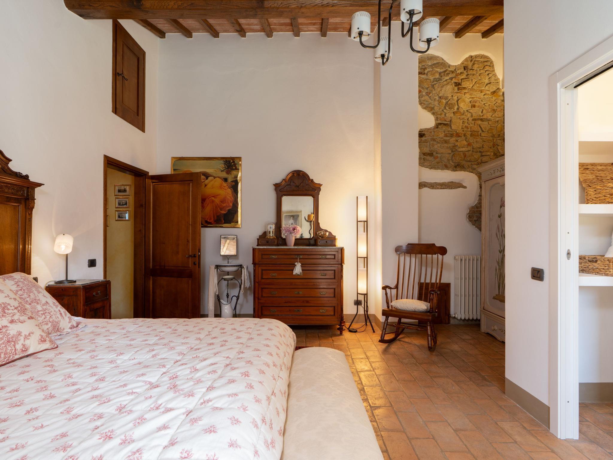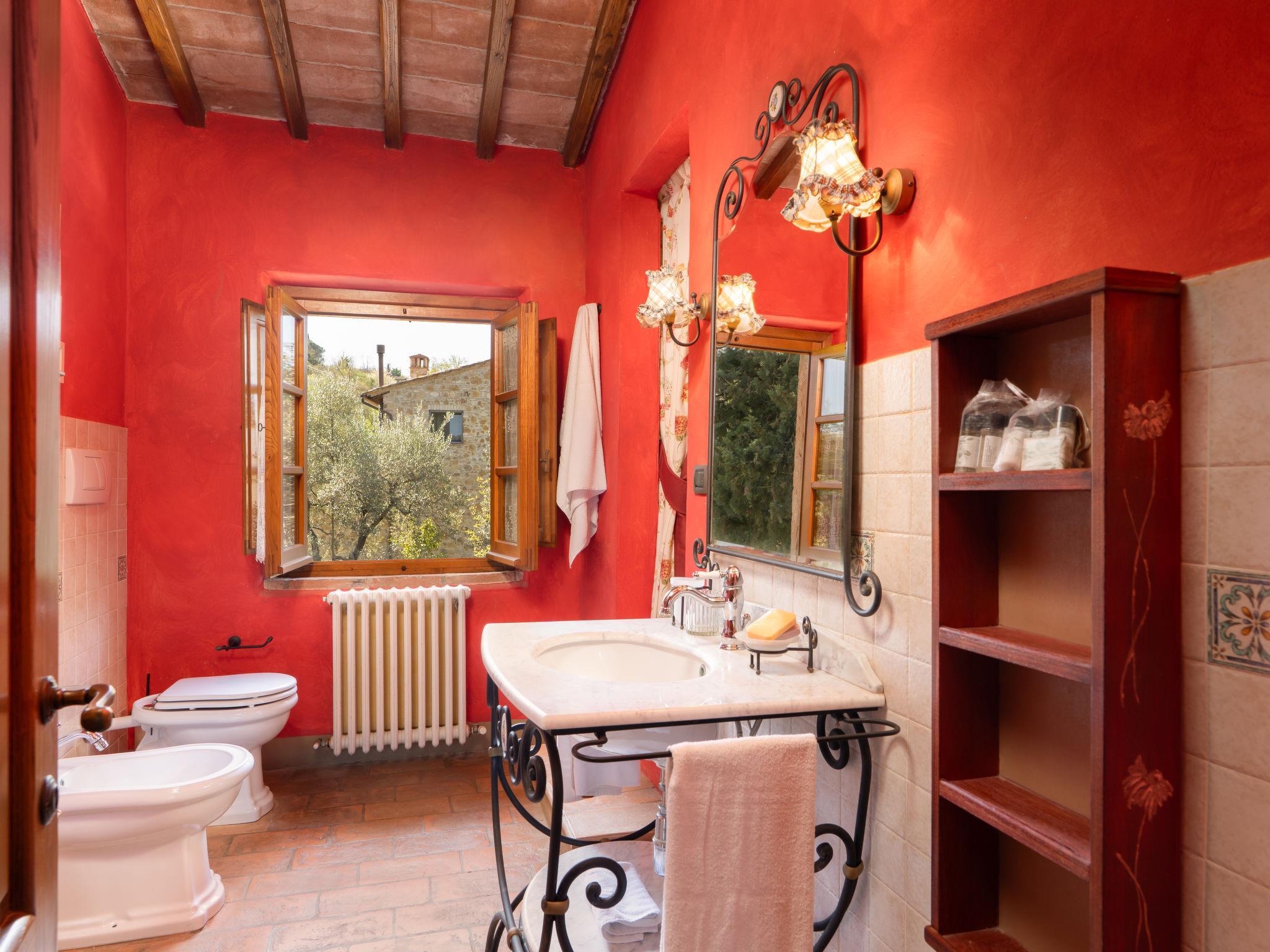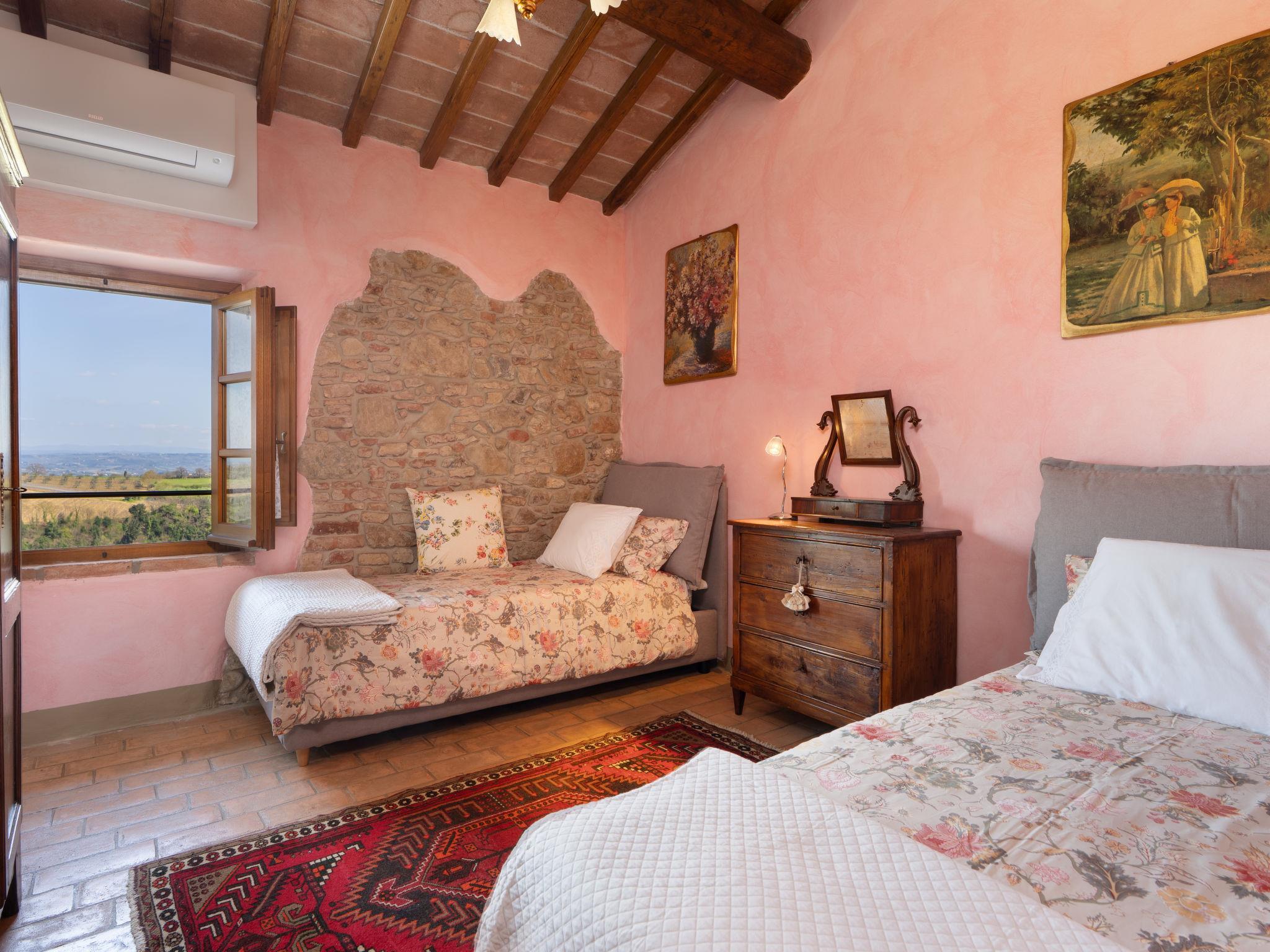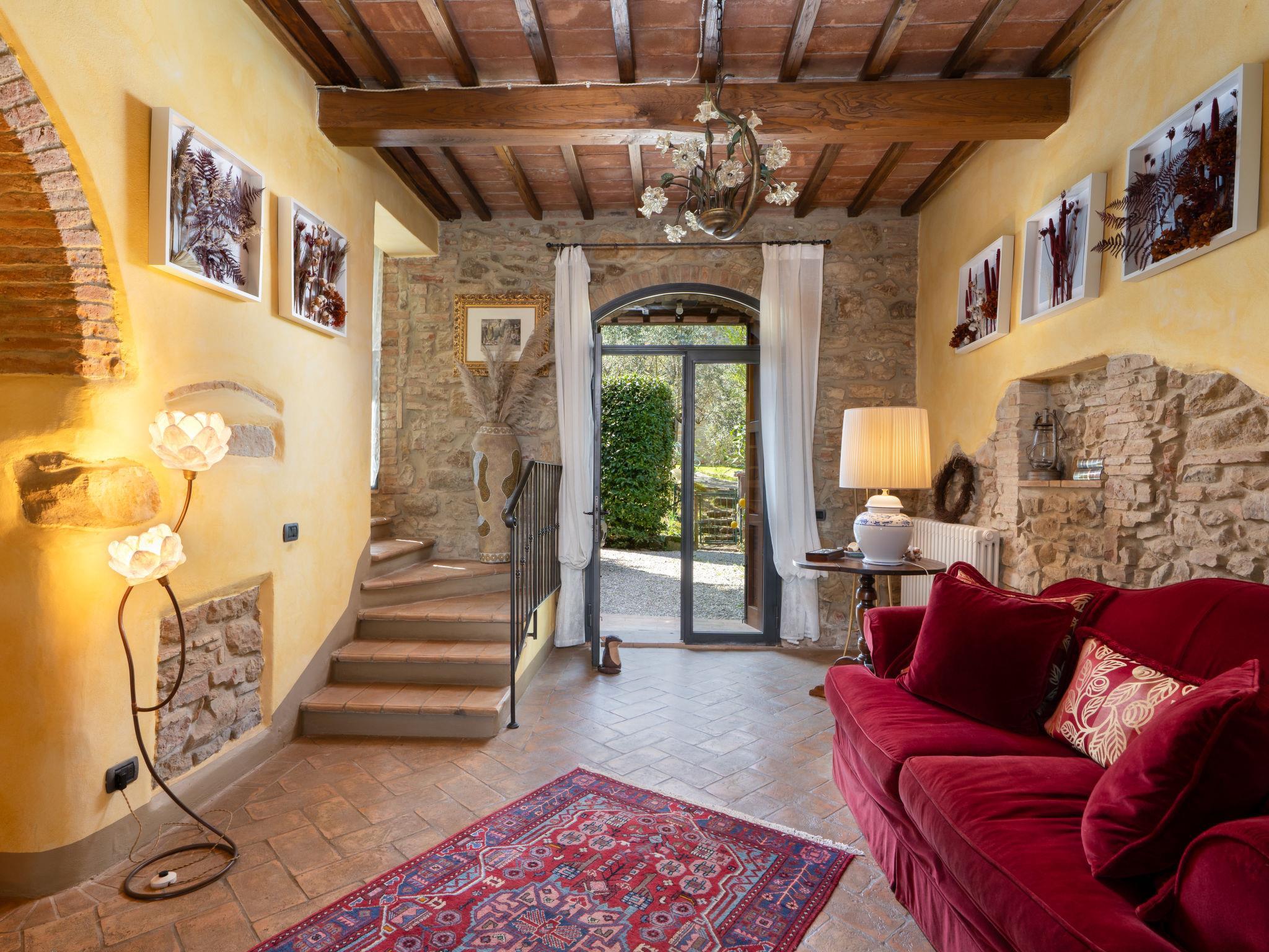 Restored farmhouse in the Tuscan tradition, in a panoramic position between the hills of Siena and Florence. Arranged on two floors, with period furnishings and private courtyard with mini hydromassage pool. Country house "Irene", 332 m a.s.l., semi-detached, renovated in 2025. 1.5 km from the centre of Gambassi Terme, 8 km from the centre of Montaione, 60 km from the centre of Firenze, in a quiet, sunny, elevated position on top of a hill, in the countryside. Private: garden 270 m2 (fenced), swimming pool (4 x 3 m, depth 71 cm, seasonal availability: 01.Apr. - 01.Oct.). Outdoor shower, garden furniture, barbecue, pool maintenance by the owner/gardener. In the house: air conditioning. Cook on request. Motor access to the house (200 m via unmade road). Parking on the premises. Shop 2 km, supermarket 2 km, restaurant 2 km, bus stop 2 km, railway station 8 km. Nearby attractions: San Gimignano 19 km, Volterra 29 km, Peccioli 30 km, Lajatico 35 km, Castellina in Chianti 44 km, Siena 53 km. Cooking courses bookable on request.