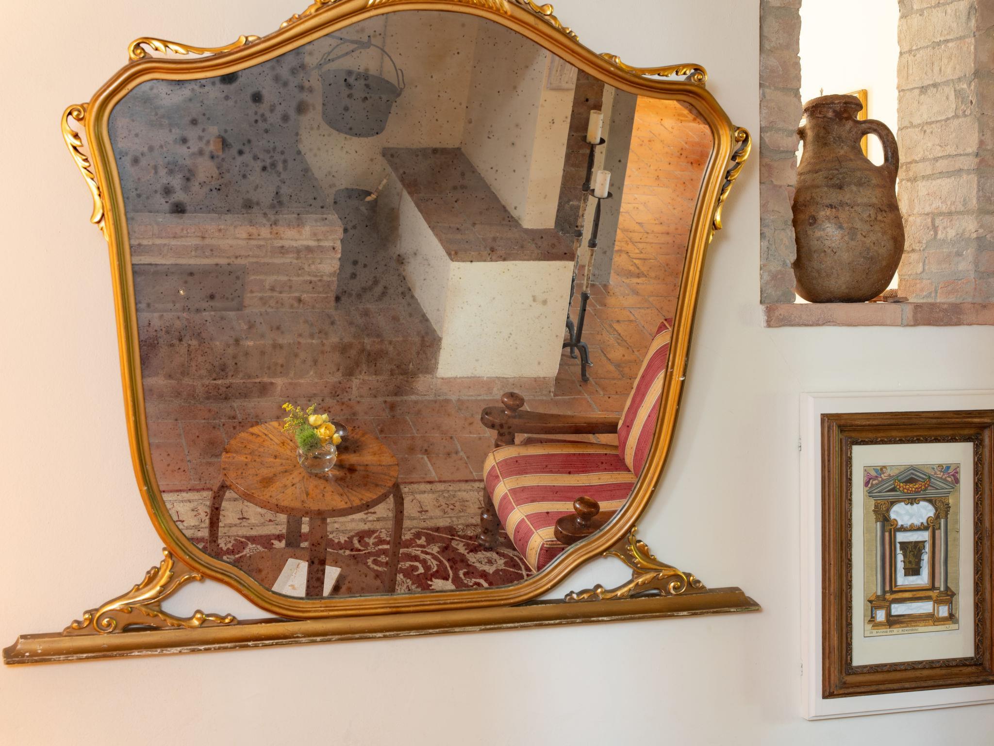 Very beautiful, comfortable villa "Fonte di Pillo", surrounded by fields and vineyards. Property composed of main house and outbuilding 4 km from the centre of Gambassi Terme, 4 km from the centre of Castelfiorentino, 20 km from the centre of San Gimignano, in a quiet position. Private: property 60'000 m2, well-kept garden (not fenced) with lawn and trees, swimming pool (12 x 6 m, depth 150 cm, seasonal availability: 20.Apr. - 14.Oct.). Outdoor shower, terrace, garden furniture, barbecue, pool maintenance by the owner/gardener. In the house: air conditioning, burglar alarm system. 200 m long motor access (via unmade road). Roofed, parking on the premises. E-charging station. Supermarket 4 km, bus stop 300 m, railway station "Castelfiorentino" 6 km. Golf course (18 hole) 15 km. Nearby attractions: Volterra 30 km, Firenze 40 km, Pisa 60 km, Livorno 70 km. Please note: baby equipment (included). Groups of teenagers on request only.