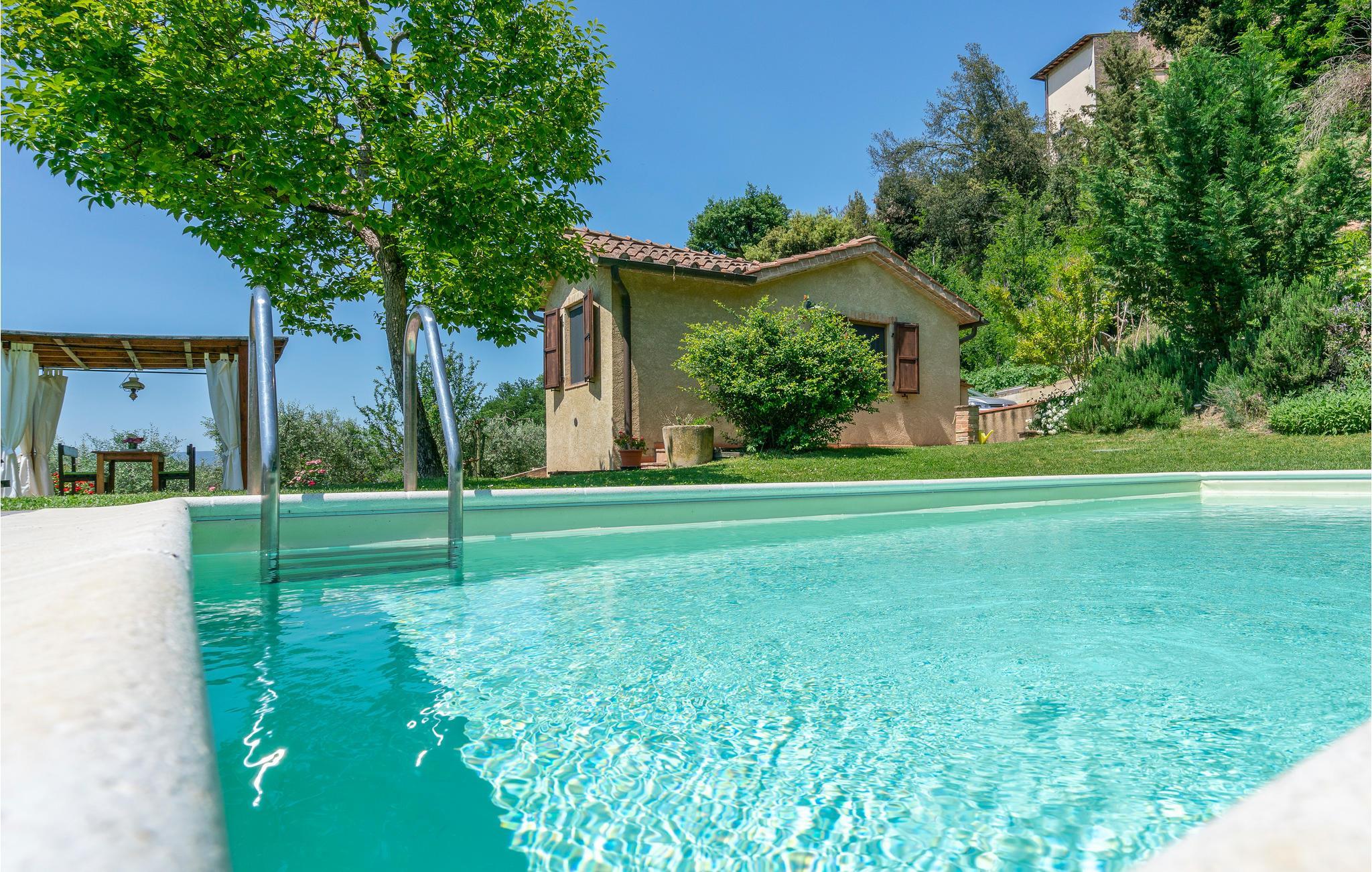 Lille feriehus med egen pool omgivet af oliventræer og vinmarker, på en bakke øst for den vidunderlige middelalderby San Gimignano (14 km). Veranda til udensdørs måltider. Her kan I nyde den rolige beliggenhed med smuk udsigt til landskabet. Ferieboligen byder på en velplejet græsplæne med poolen (4,5 x 6 m, 1,20 m dyb), og en smuk pavillon, så I kan spise i det fri. Tilkørslen til huset over 150 m landevej. Parkeringsplads. Rum: Køkken med boligområde med sovesofa og direkte adgang til haven, et dobbeltværelse med badeværelse med brusebad. Indretning af middel kvalitet. Der er en grill. Afstande: 3 km til Poggibonsi (alle slags butikker), 30 km til Siena med den fascinerende plads Piazza del Campo, 45 km til Firenze med de utrolige arkitektoniske mirakter som domkirken og rådhuset og Volterra med det hyggelige middelaldercentrum.