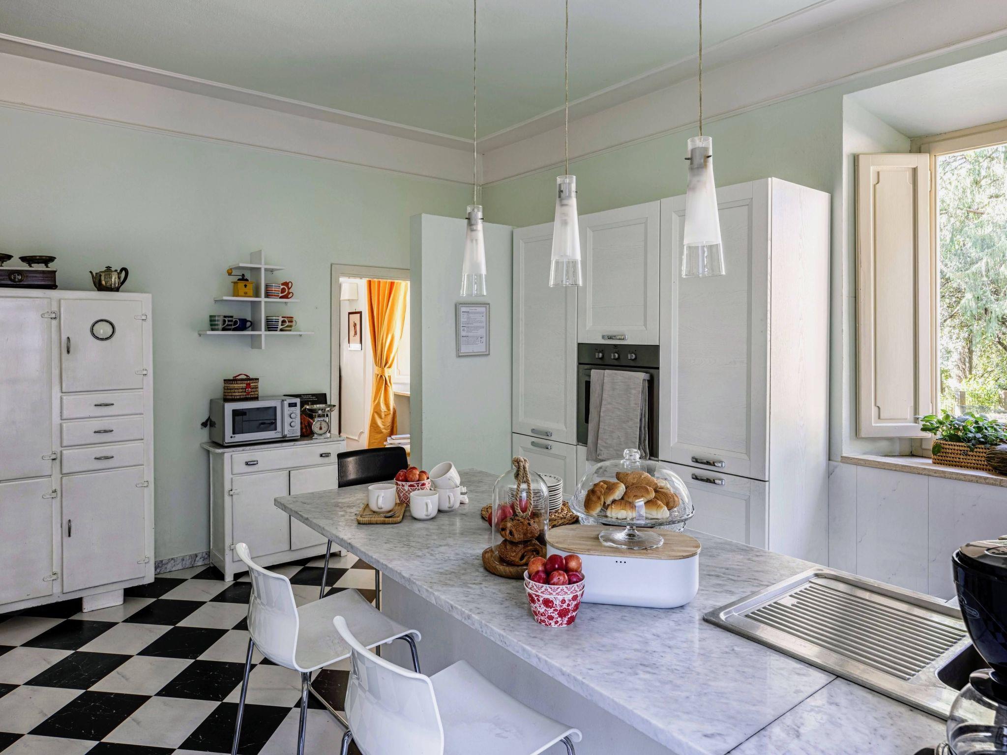 Outdoors, Villa Vianci extends into a fully fenced park of about 8,000 m², where nature embraces every corner. A charming terrace shaded by a beautiful gazebo and lined with lemon trees creates the perfect setting for al fresco dinners and long summer evenings together. Around the house you will find green areas and corners designed for relaxation and play. The swimming pool, nestled among cypresses and olive trees, promises moments of pure fun and relaxation, completing the picture of an unforgettable stay in this corner of paradise.