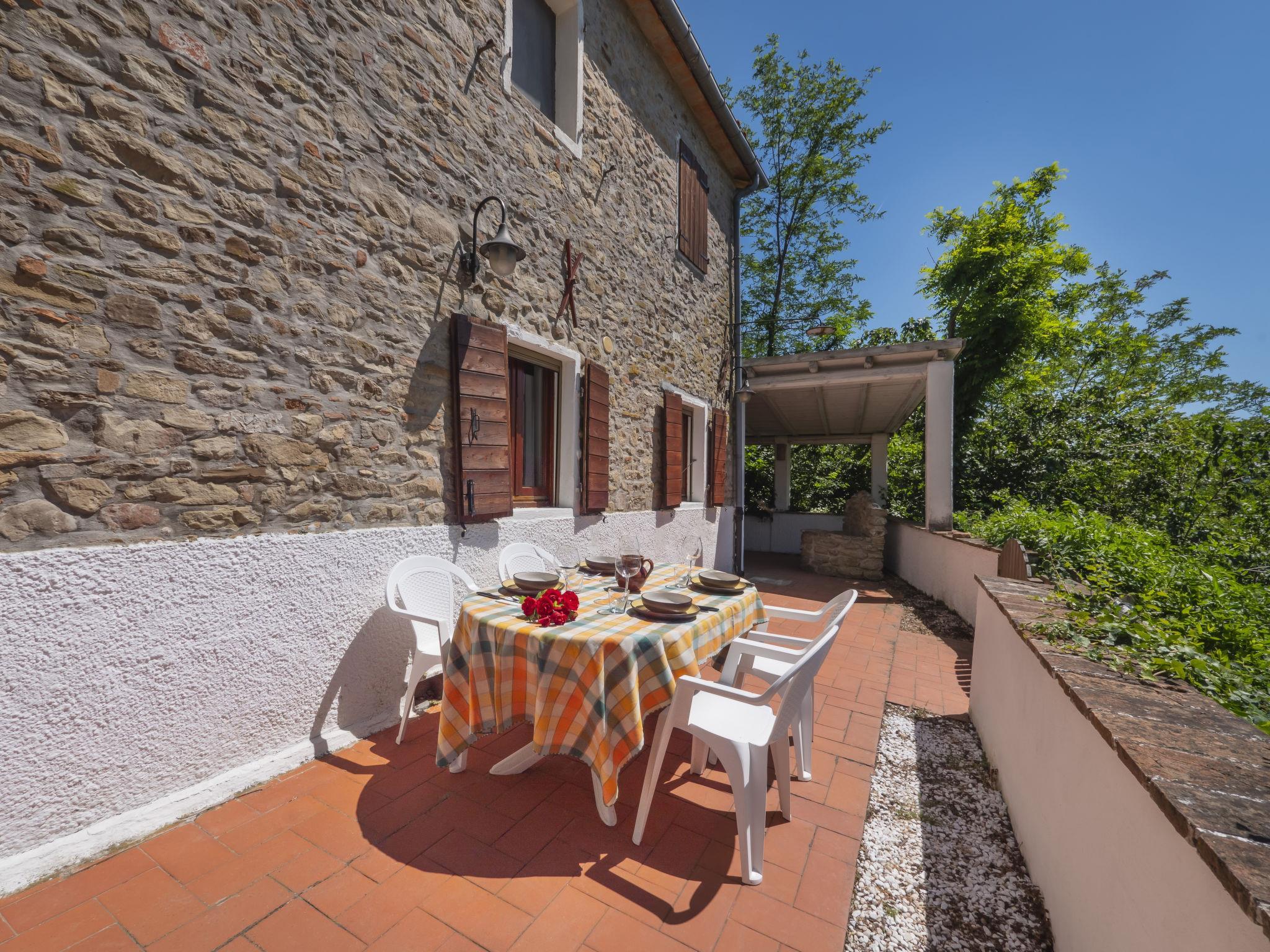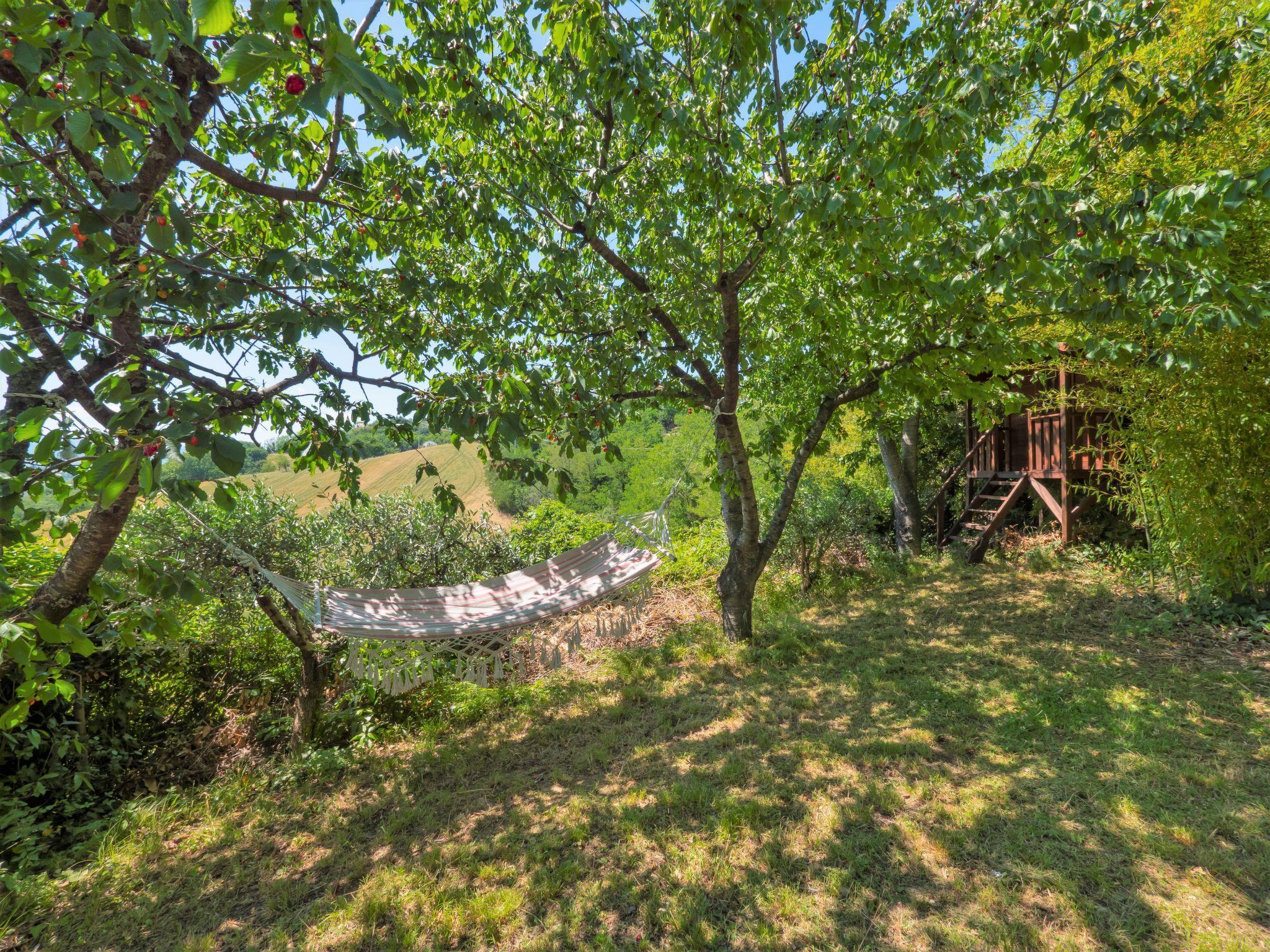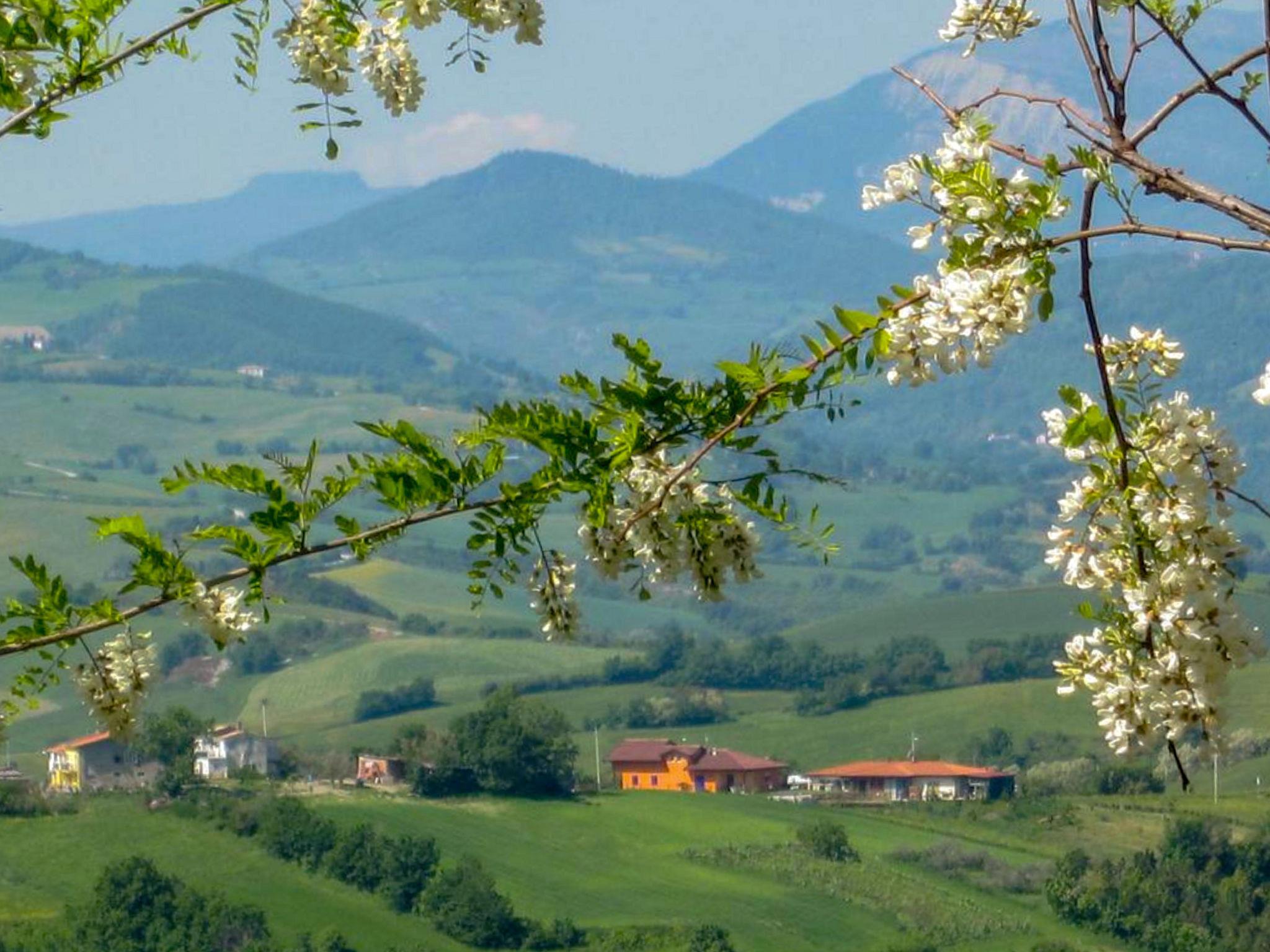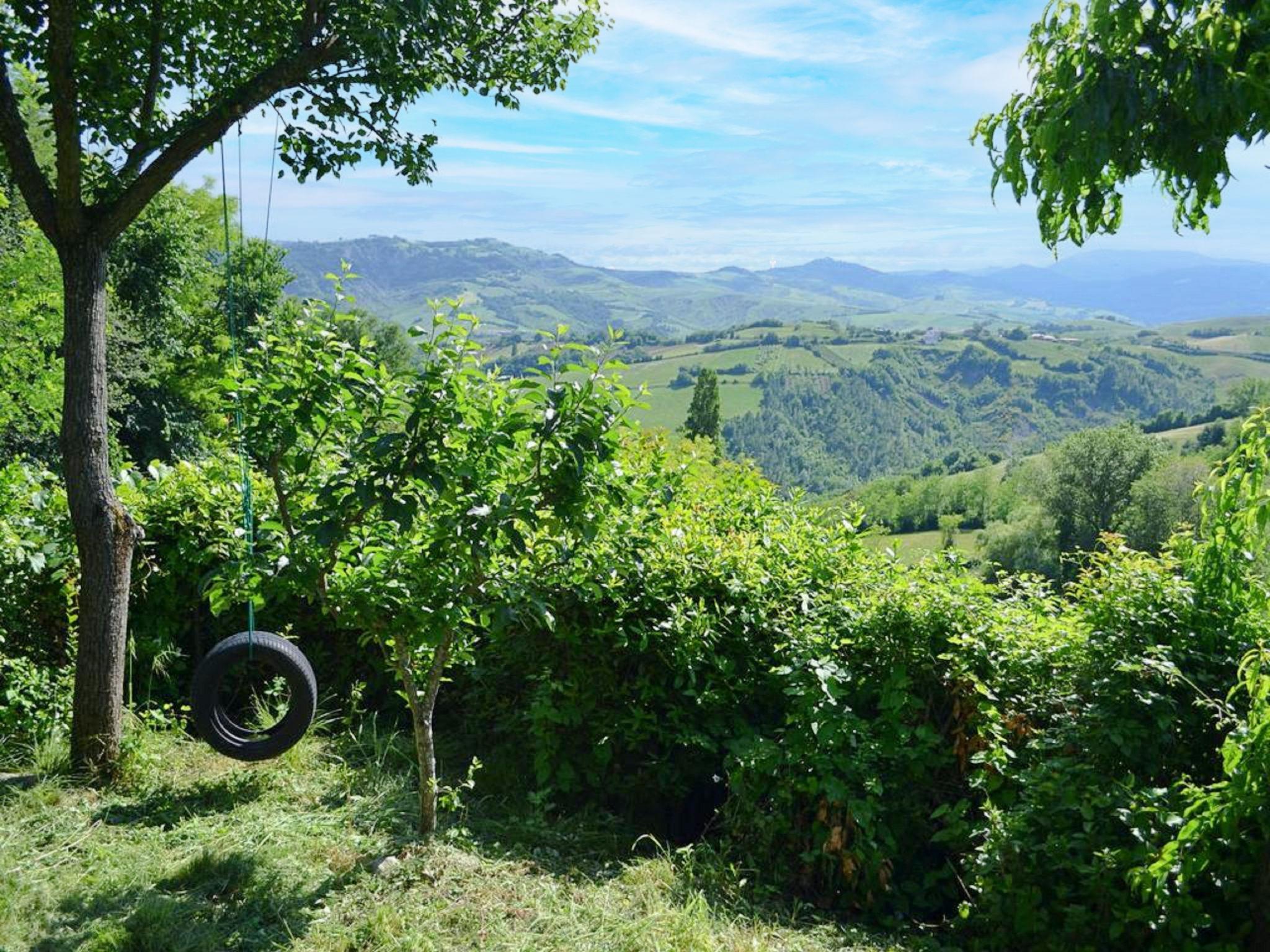 Rustic, comfortable country house "Casale Antica Pietra", 400 m a.s.l., 2 storeys, detached, surrounded by trees and fields. 19 km from the centre of Riccione, 18 km from the centre of Cattolica, outside the resort, 1 km from the centre of Gemmano, in a quiet, sunny position, 18 km from the sea, 18 km from the beach, in the countryside. Private: property (fenced), park 2'000 m2, swimming pool kidney shaped (25 m2, depth 130 cm, seasonal availability: 01.May. - 14.Oct.). Outdoor shower, patio, pergola, garden furniture, barbecue house, children's playground. In the house: table tennis, storage room for bicycles, washing machine, heating to be paid on the spot. Parking at the house at 10 m. Grocery 1 km, restaurant 1 km, bus stop "Zollara" 250 m, railway station "Riccone / Cattolica" 19 km, sandy beach "Riccione / Cattolica" 19 km pebble beach "Baia Vallugola" 26 km (small). Golf course 10 km. Nearby attractions: Grotte di Onferno 6 km, Repubblica di San Marino 12 km, Misano World Circuit 15 km, Gabicce Monte 24 km, Rimini 30 km, Urbino 42 km. Hiking paths: Parco del Monte San Bartolo 35 km. Please note: car recommended. Suitable for families. Loading and unloading of baggage is possible at the holiday house.