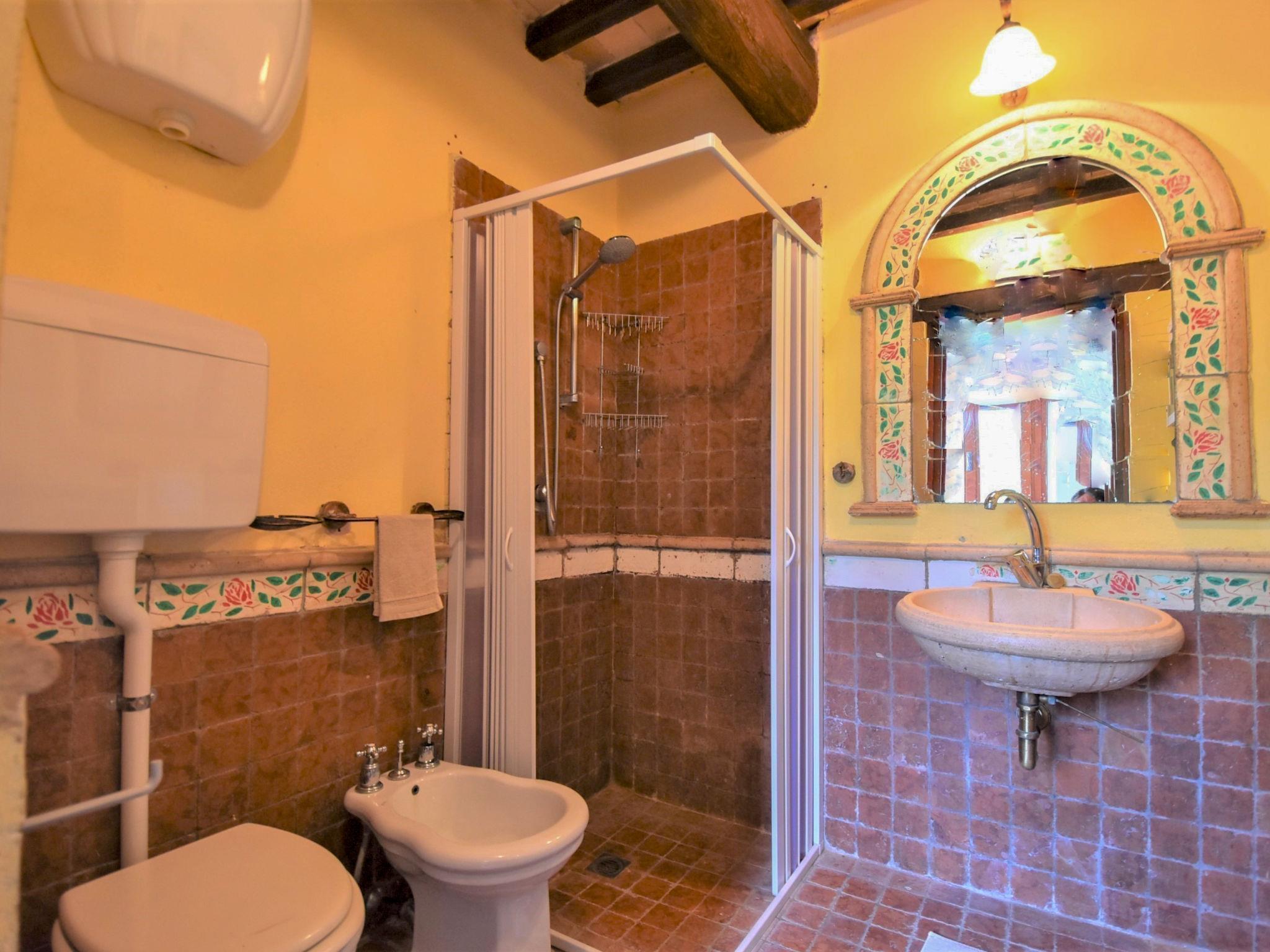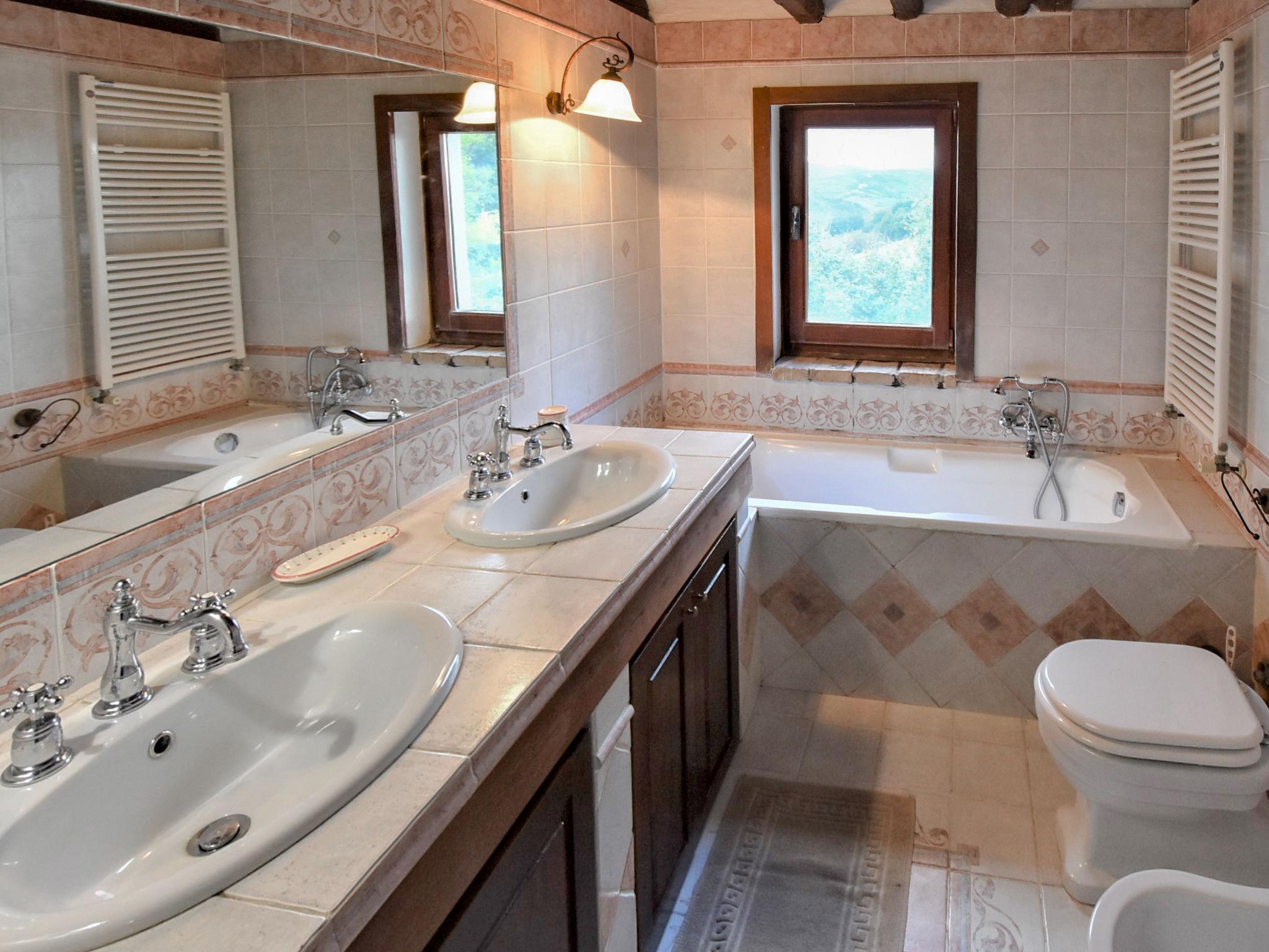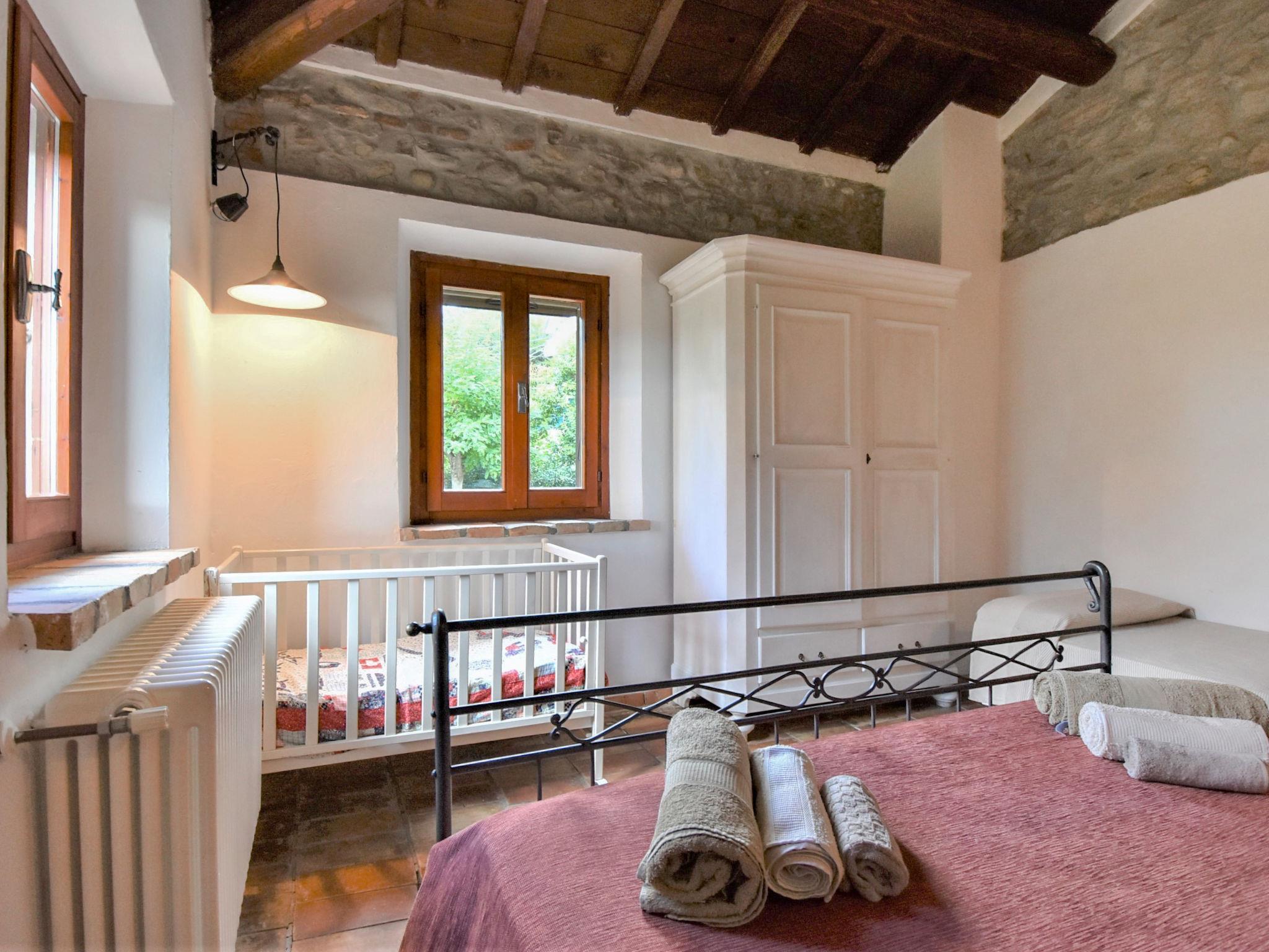 8-room house 250 m2 on 2 levels. Spacious, rustic and antique furnishings: open dining room with open-hearth fireplace, dining table and hi-fi system. Exit to the garden. Open small living room with satellite TV. Large living/dining room with panoramic window with open-hearth fireplace. 1 double bedroom. Open kitchen (oven, dishwasher, 4 gas rings, toaster, microwave, freezer, electric coffee machine) with dining table. Shower/bidet/WC. Upper floor: (open staircase), 1 double bedroom. 2 rooms, each room with 1 bed and 1 double bed. 1 small room with 2 beds. Bath/bidet/WC, double hand-basin. Gas heating (extra). Heating available only from 15.10. to 15.04. Comfortable furnishings in the country house style. Patio. Terrace furniture, barbecue, deck chairs. Beautiful panoramic view of the valley and the countryside. Facilities: washing machine, children's high chair, baby cot. Internet (WiFi, free). Please note: suitable for families. Non-smoking house. Maximum 2 pets/ dogs allowed. Private entrance. IT099004B4QHZ3DGJV