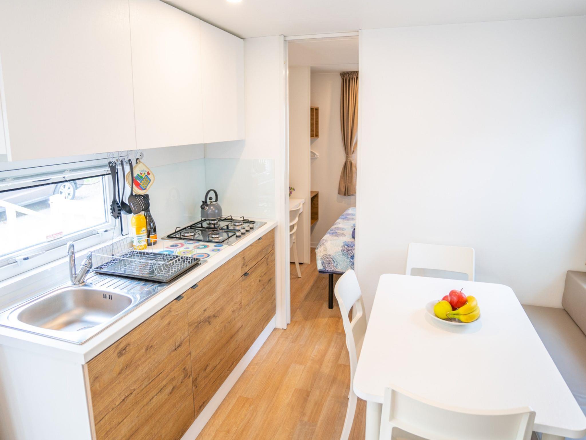 "Happy Relax", 3-room mobile home 25 m2. Practical furnishings: living/dining room with electric heating and air conditioning. 1 room with 1 french bed (140 cm, length 190 cm). 1 room with 2 beds (70 cm, length 190 cm). Open kitchen (4 hot plates). Shower/WC. Air-conditioning. Terrace roofed. Terrace furniture, deck chairs (2). Parking (1 car), garage. Please note: non-smokers only. IT067025B24A37J27Y