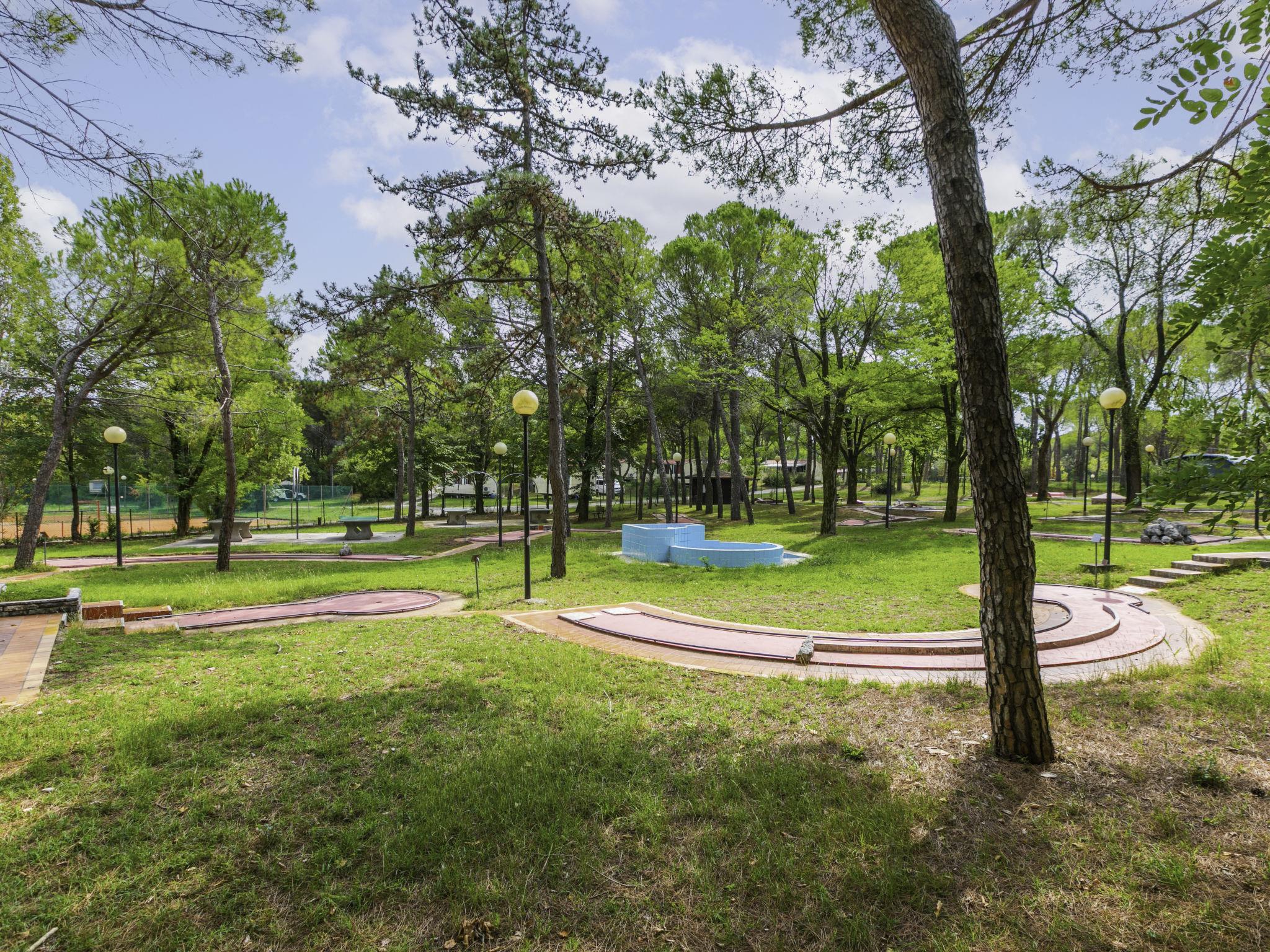 Child friendly resort "Belvedere Pineta Camping Village 4*". 173 houses in the resort. In the district of Belvedere 6 km from the centre of Aquileia, 7.5 km from the centre of Grado, 20 m from the sea, direct access to the beach, direct access to the lagoon. For shared use: natural state property 50 ha (fenced) with trees, swimming pool (25 x 12 m, seasonal availability: 01.May. - 21.Sep.). Children's pool, tennis (extra), table tennis, volleyball, beach volleyball, children's playground. In the complex: restaurant, bar, bistro, WiFi (extra). Shopping facilities, washing machine, tumble dryer (for shared use, extra), bicycle rental. Breakfast full board half board possible on request (extra). Supermarket 6 km, bus stop 1 km, railway station "Cervignano del Friuli" 14 km. Marina 7.5 km, cycle lane 1.3 km. Nearby attractions: Trieste 56 km, Riserva Naturale della Foce dell'Isonzo 20 km, Castello di Duino 32 km, Aquileia 6 km. Please note: entertainment in the season. Suitable for families. Obligation to wear bathing caps.