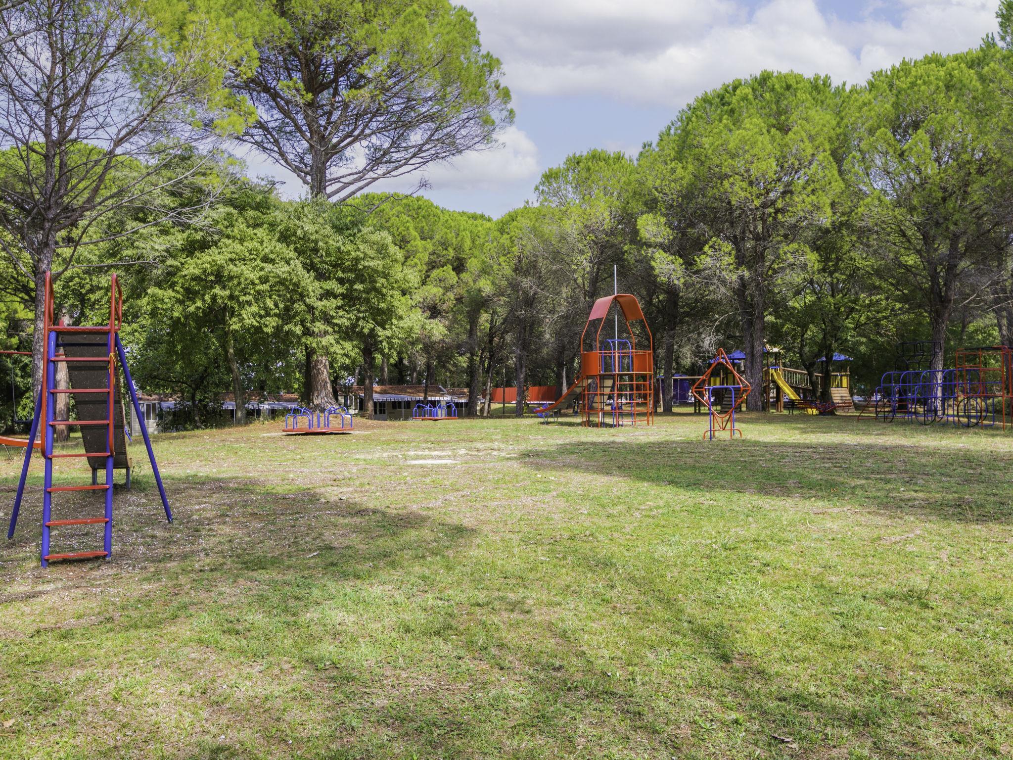 Child friendly resort "Belvedere Pineta Camping Village 4*". 173 houses in the resort. In the district of Belvedere 6 km from the centre of Aquileia, 7.5 km from the centre of Grado, 20 m from the sea, direct access to the beach, direct access to the lagoon. For shared use: natural state property 50 ha (fenced) with trees, swimming pool (25 x 12 m, seasonal availability: 01.May. - 21.Sep.). Children's pool, tennis (extra), table tennis, volleyball, beach volleyball, children's playground. In the complex: restaurant, bar, bistro, WiFi (extra). Shopping facilities, washing machine, tumble dryer (for shared use, extra), bicycle rental. Breakfast full board half board possible on request (extra). Supermarket 6 km, bus stop 1 km, railway station "Cervignano del Friuli" 14 km. Marina 7.5 km, cycle lane 1.3 km. Nearby attractions: Trieste 56 km, Riserva Naturale della Foce dell'Isonzo 20 km, Castello di Duino 32 km, Aquileia 6 km. Please note: entertainment in the season. Suitable for families. Obligation to wear bathing caps.