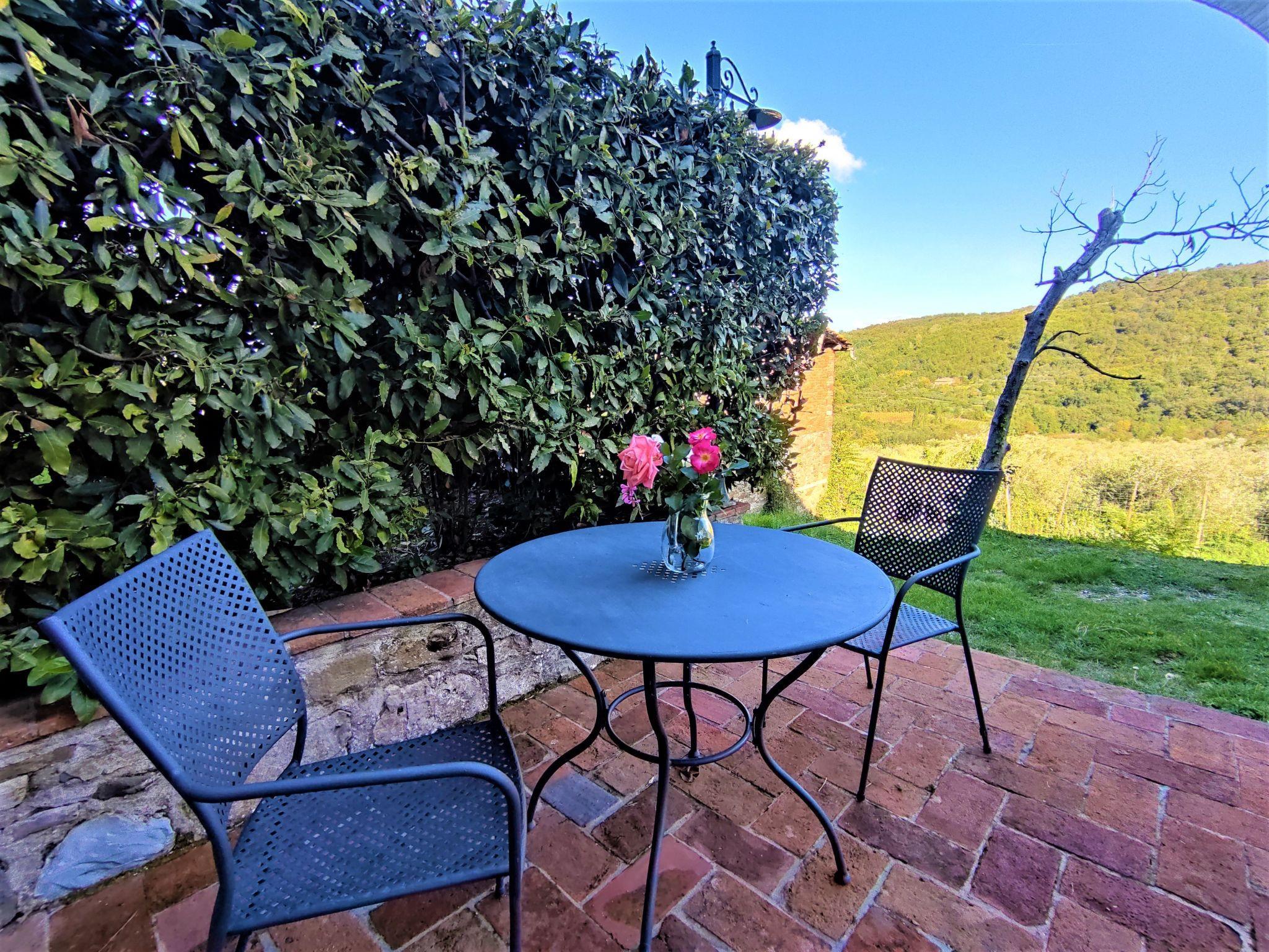 Large, rustic on a vinyard country house "Fattoria l'Ottavo", 400 m a.s.l., from the 18th century, renovated, surrounded by meadows and vineyards. 3 houses in the residence. 9 apartments in the residence. In the district of Lucolena in Chianti 12 km from the centre of Greve in Chianti, 13 m from the centre of Figline Valdarno, in a secluded, sunny, elevated position, in the countryside. For shared use: property 40 ha, natural garden, meadow, swimming pool fenced (8 x 4 m, seasonal availability: 01.May. - 15.Oct. pool opening hours: 08:00-20:00). Outdoor shower, terrace, garden furniture, barbecue, pool maintenance by the owner/gardener. In the house: reception, restaurant, breakfast room, WiFi, washing machine (for shared use). Linen change weekly. Breakfast possible on request (extra). 200 m long narrow motor access to the grounds. Parking on the premises. Shop 700 m, grocery 700 m, supermarket 12 km, shopping centre 13 km, restaurant 1 km, bar 700 m, bakery 700 m, bicycle rental 12 km, bus stop "Lucolena" 700 m, railway station "Figline Valdarno" 13 km, sandy beach "Calambrone" 110 km, indoor swimming pool 13 km, lake Trasimeno 114 km. Golf course (18 hole) 20 km, tennis 12 km, riding stable 2 km, walking paths from the house 100 m. Nearby attractions: Firenze 37 km, Siena 50 km, Arezzo 54 km, San Gimignano 65 km. Please note: car recommended. Reception open 10:00-17:00 hrs. Suitable for families, baby equipment (included). Suitable for events. Local sale of farm products. Please note: the owner lives on the same property. All houses/apartments are individually designed/furnished.