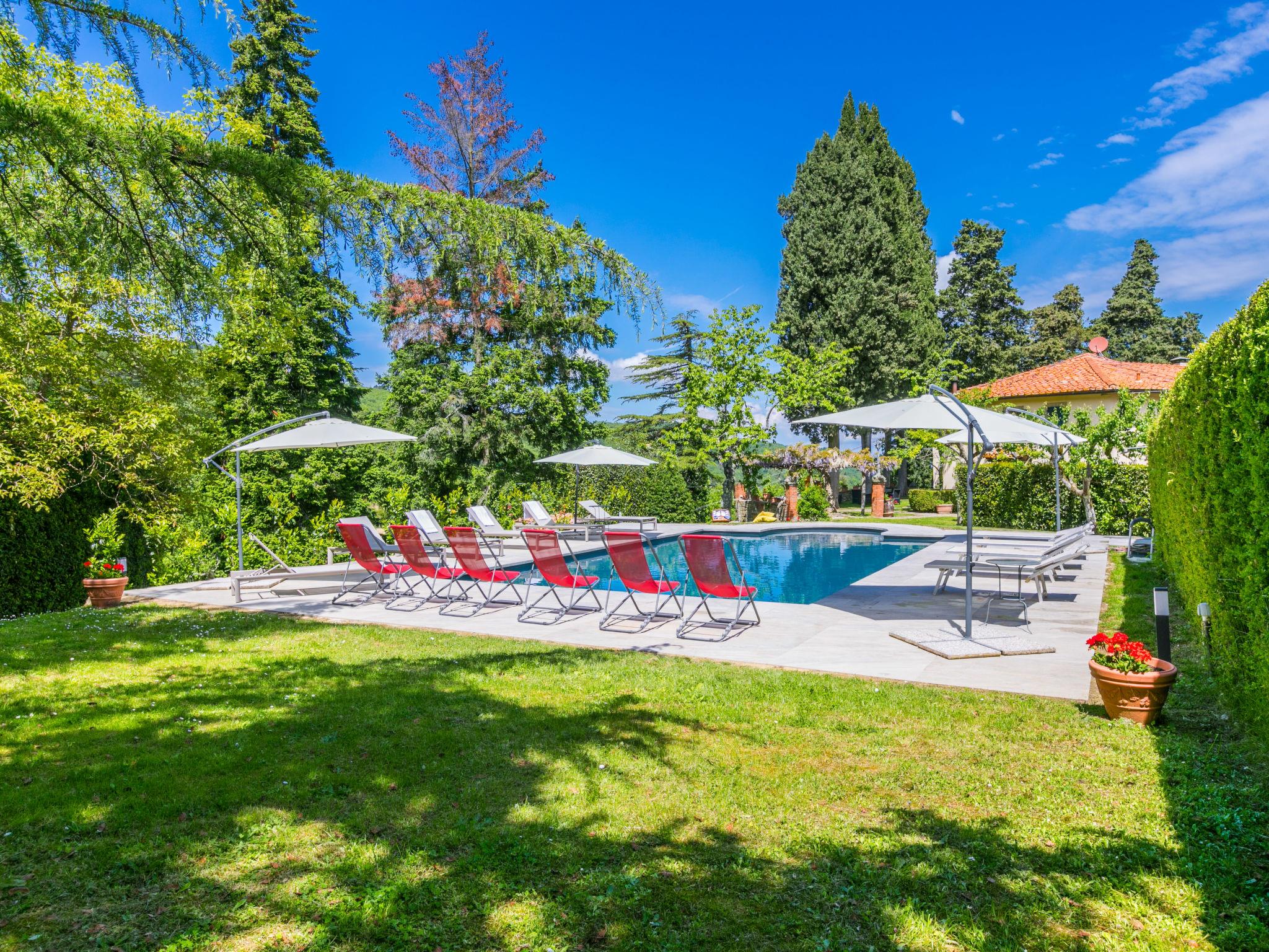 Manor house "Castagnoli", 650 m a.s.l., surrounded by fields and vineyards. 12 km from the centre of Greve in Chianti, 2 km from the centre of Lucolena, in a secluded position, in the countryside. Private: property 40 ha, park, beautiful, well-kept garden (not fenced) with flowers and trees, lawn for sunbathing, swimming pool (10 x 5 m, depth 100 - 200 cm, seasonal availability: 10.May. - 10.Oct.). Outdoor shower, terrace, barbecue, pool maintenance by the owner/gardener. 500 m long bumpy motor access (via unmade road). Parking on the premises. Shop 2 km, supermarket 10 km, bus stop 3 km, sandy beach "Marina di Cecina" 85 km. Golf course (18 hole) 20 km, walking paths from the house 50 m. Nearby attractions: Siena 30 km, Volterra 44 km, Firenze 50 km, Arezzo 75 km. Please note: car recommended. Baby equipment (included). Groups of teenagers on request only.