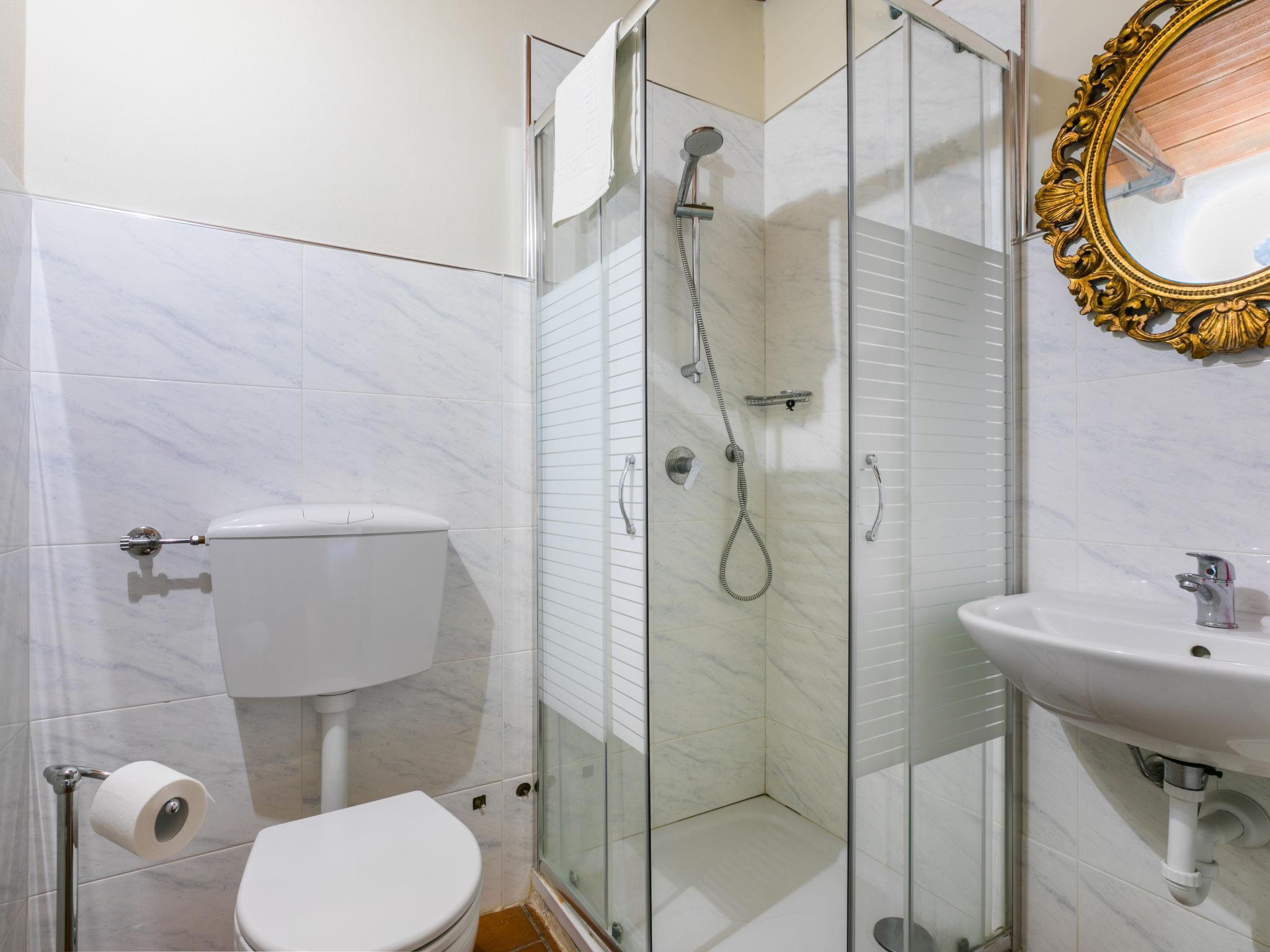 Greve in Chianti: Rustic on a vinyard agricultural estate "Valmontese", surrounded by meadows and vineyards. 3 apartments in the residence. 4 km from the centre of Greve in Chianti, in a secluded, sunny, elevated position, 100 km from the sea, in the countryside. For shared use: natural state property 5'000 m2 (fenced), plants and trees, swimming pool fenced (4 x 8 m, seasonal availability: 01.May. - 15.Oct.). Outdoor shower, patio, terrace, garden furniture, barbecue, pool maintenance by the owner/gardener. In the house: reception, WiFi. 1.5 km long bumpy motor access to the grounds. Parking at the house. Shop 4 km, grocery 4 km, supermarket 4 km, restaurant 2.5 km, bicycle rental 4 km, bus stop 2.5 km, railway station "Firenze" 26 km. Golf course (18 hole) 12 km, tennis 4 km, walking paths from the house 100 m. Nearby attractions: Firenze 26 km, San Gimignano 45 km, Siena 65 km. Please note: car recommended. Baby equipment (included). Local sale of farm products. Residence with electric gates. The owner lives on the same property. The owner has a dog. Animals in the neighbourhood. All houses/apartments are individually designed/furnished.
