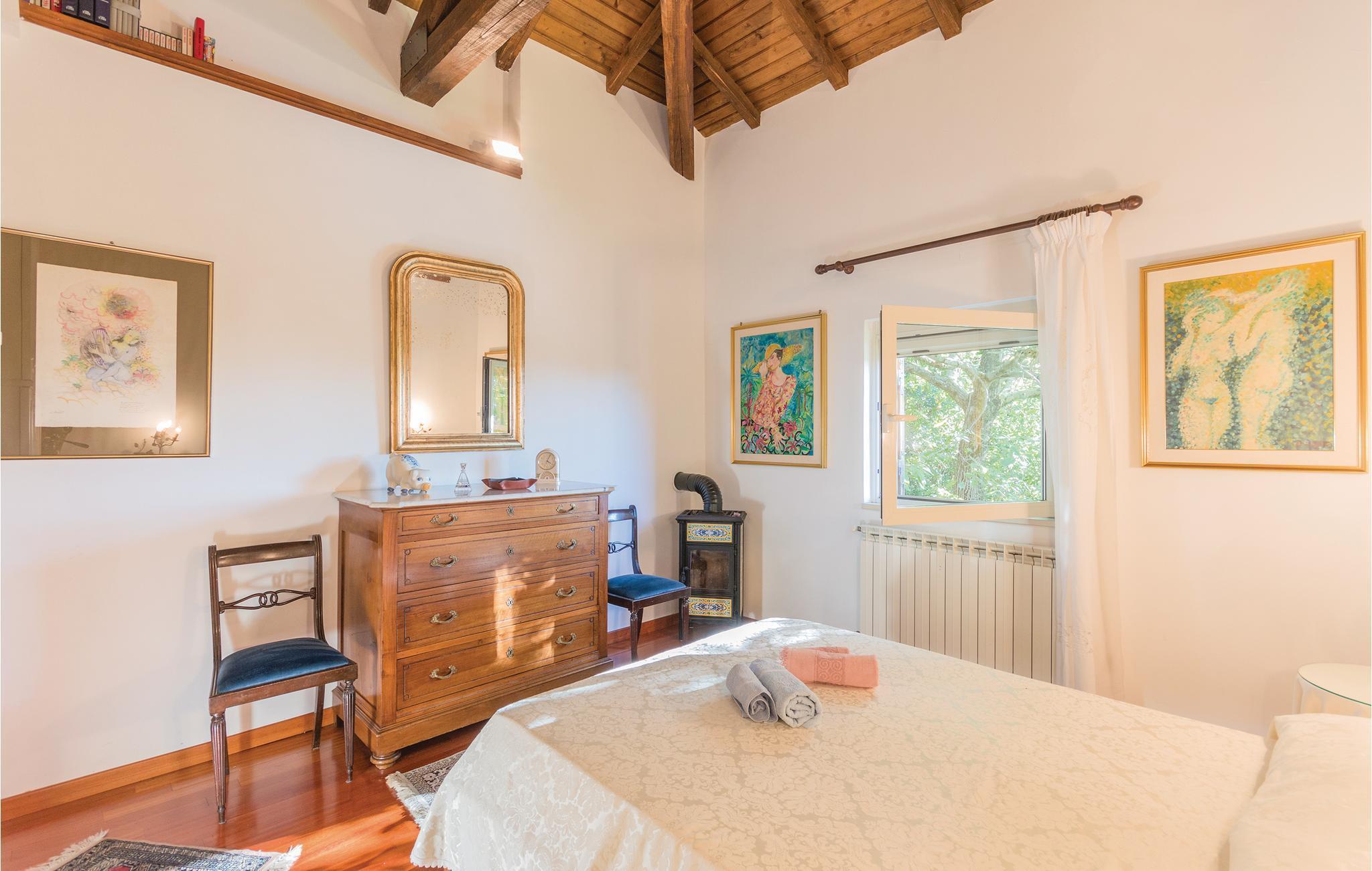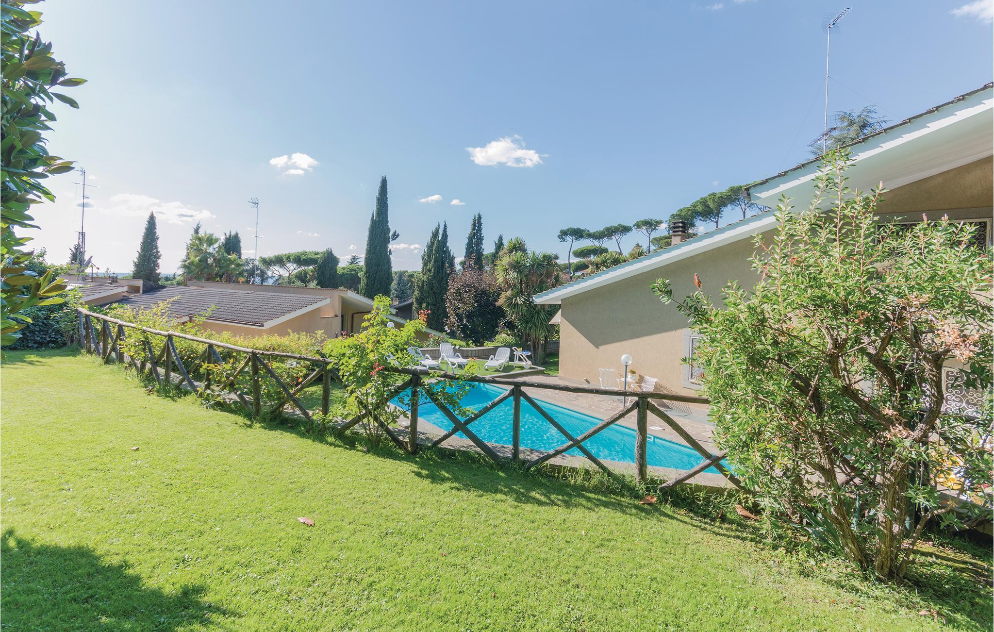 Skønt og indbydende sidebygning med panoramaudsigt, på en bakkeskråning nær Grottaferrata. Udsigt over Rom og helt til det Tyrrheniske hav. Rolige omgivelser. Sidebygningen ligger i den øverste del af haven, hvor også hovedhuset, som bebos af ejeren ligger. Huset er omgivet af have med træer og i den nederste del ligger swimmingpoolen som deles med ejeren. Boligen nås via en trappe med 50 trin. Det er muligt at bestille barneseng og -stol. Komfortabelt indrettet bla. med antikke møbler. Fra huset er der blot 20 km til Rom, som I med fordel kan tage toget ind til. Frascati 1,5 km., Castelgandolfo med sø 12 km., havet 30 km, søerne Albano og Nemi - få minutter med bil. I haven får I hyggeligt selskab af ejers tre søde små hunde.
