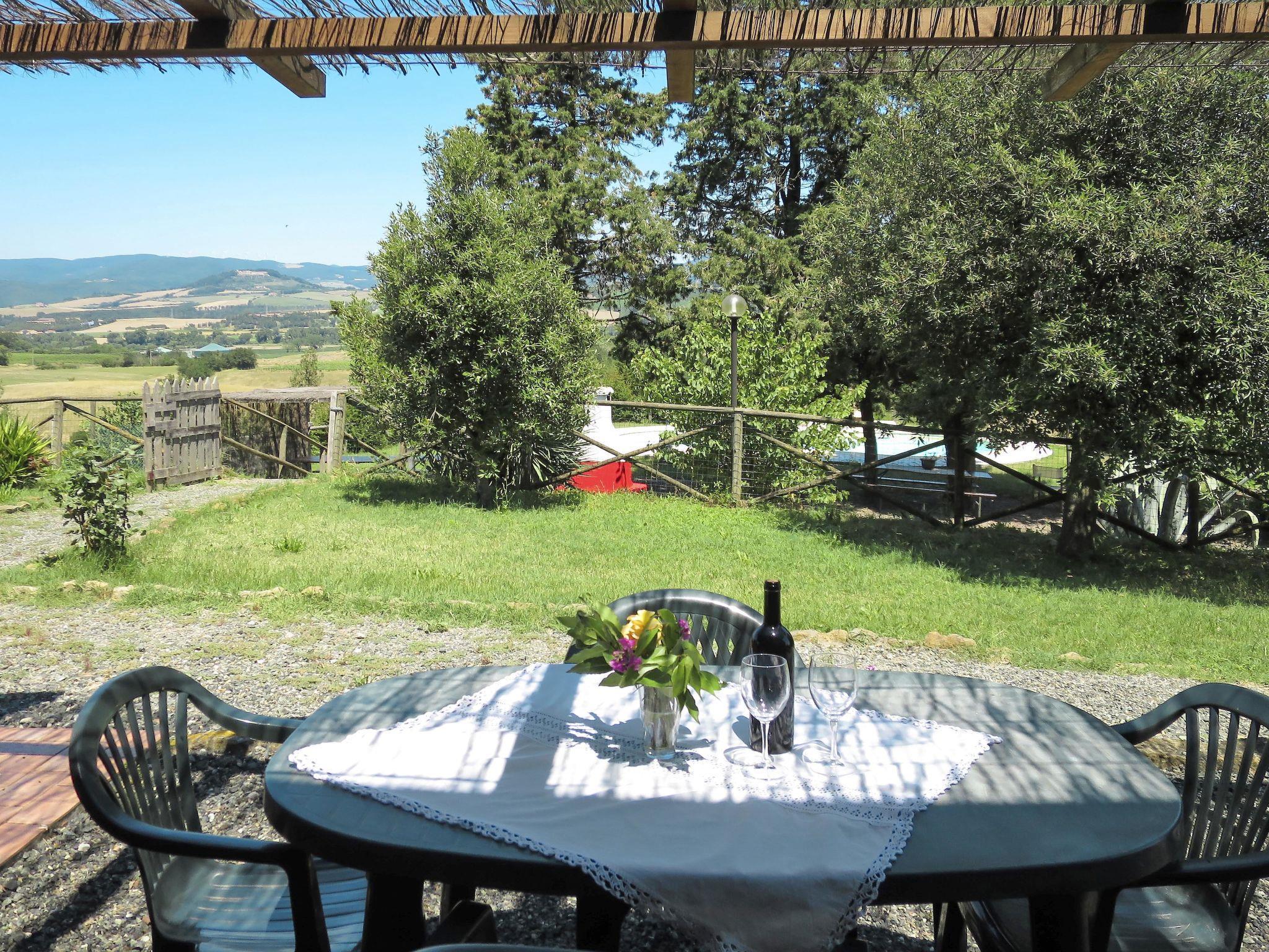 Agricultural estate "Le Colmate", detached. 4 apartments in the residence. 6.5 km from the centre of Guardistallo, 21.5 km from the centre of Cecina, 65 km from the centre of Pisa, in a sunny position on a slope, 12 km from the sea, in the countryside. For shared use: property with lawn and trees, swimming pool kidney-shaped (10 x 4 m, seasonal availability: 30.May. - 30.Sep.). Outdoor shower, barbecue. Motor access (200 m via unmade road). Parking on the premises. Shop 6.5 km, bus stop 2 km, sandy beach "Marina di Cecina" 12 km. On the estate animal husbandry. Please note: the owner lives on the same property. The owner has a dog.