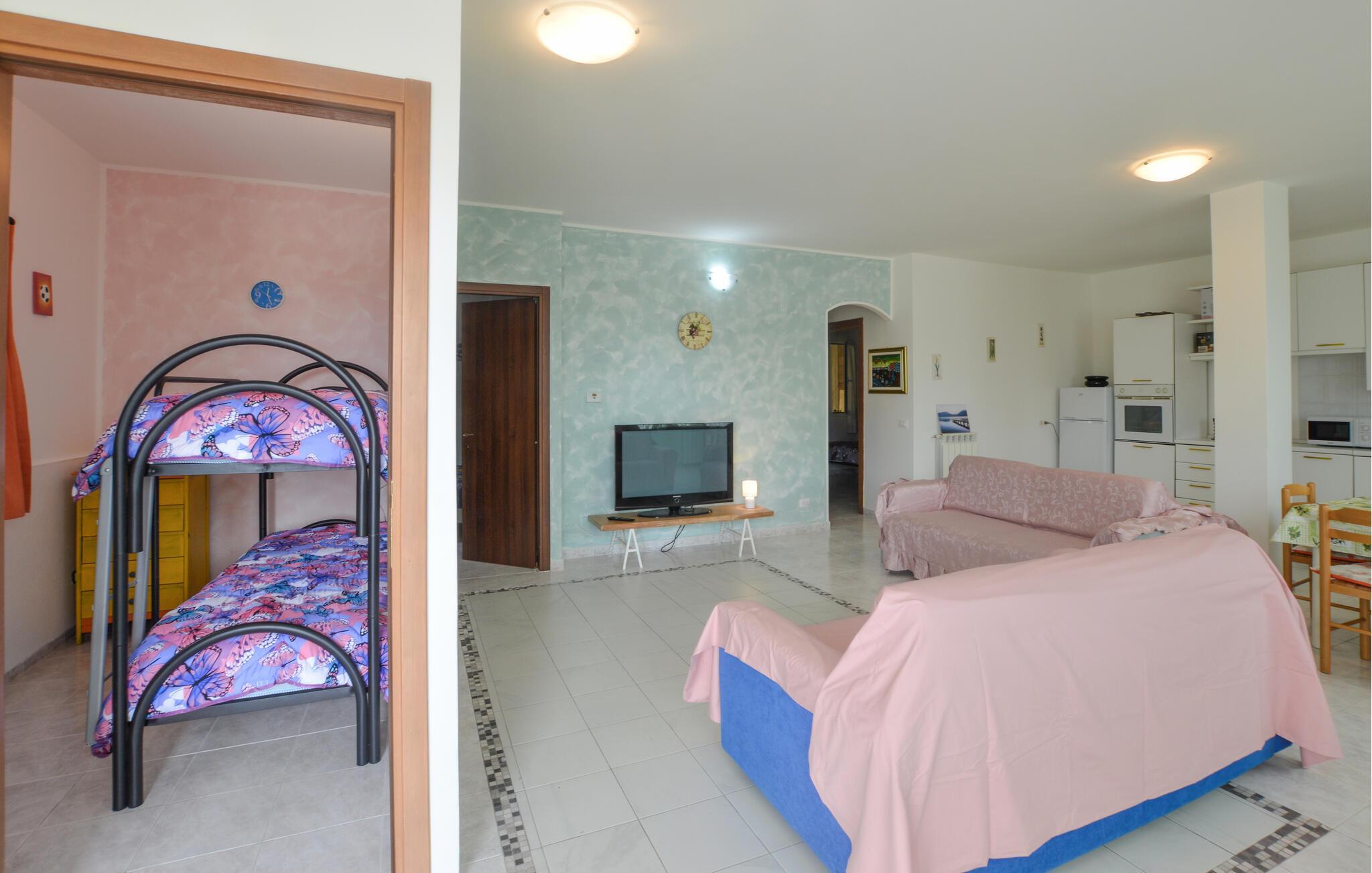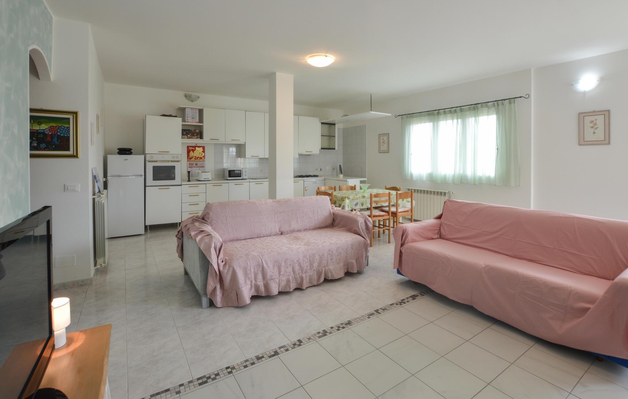 Se frem til en behagelig familieferie i denne indbydende lejlighed med adgang til fælles pool.