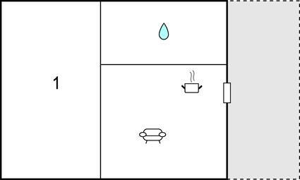Opholdsstue/køkken - 1 Soveplads. (Sofa, madras eller lignende).