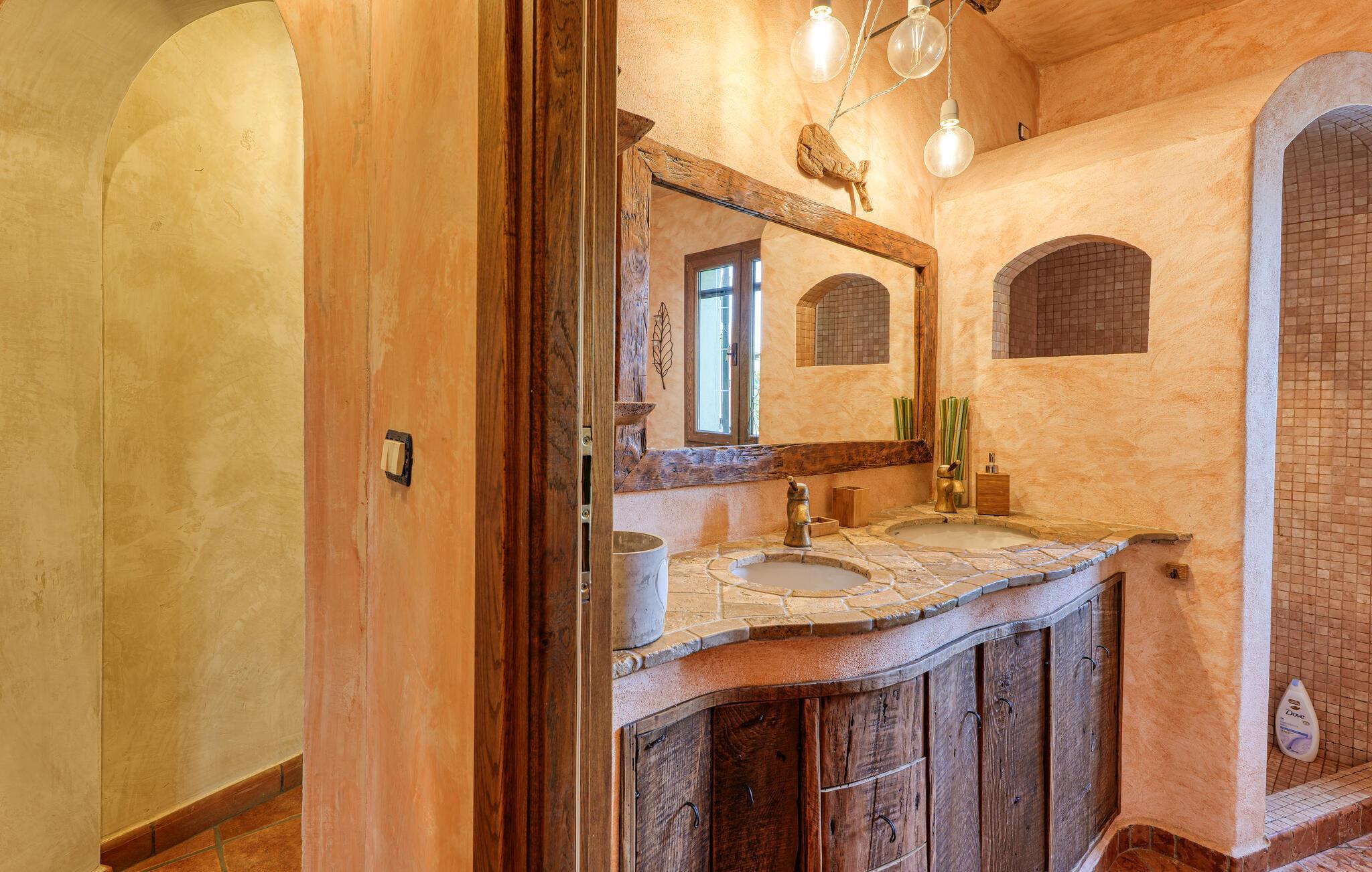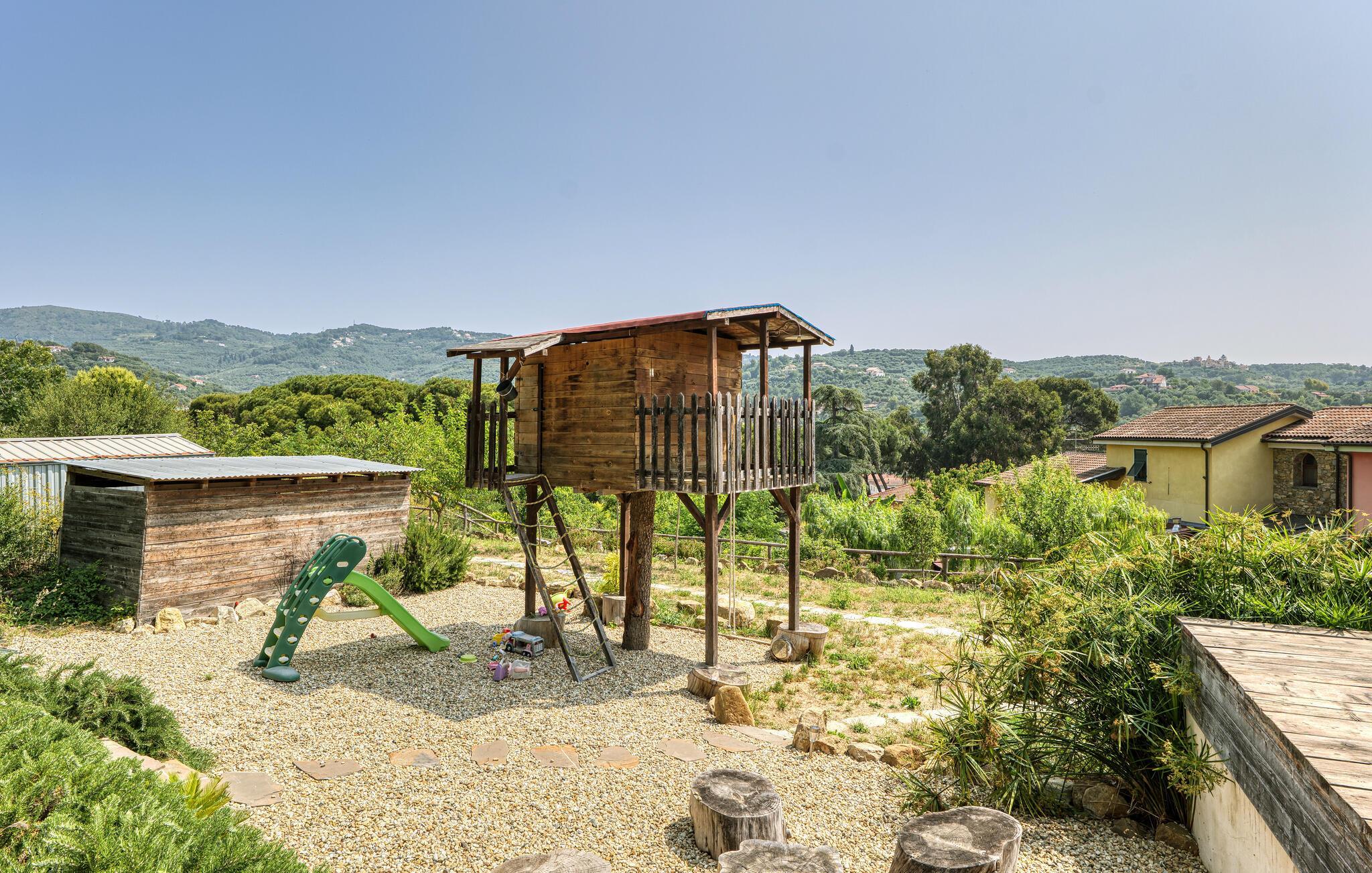 Start dagen med morgenmad på den overdækkede terrasse med udsigt over den omkringliggende natur. De to swimmingpools, en til børn og en til voksne, tilbyder forfriskende afkøling på varme dage. Det kærligt anlagte udendørsområde, med et træhus og legefaciliteter, vil især glæde de yngste gæster.