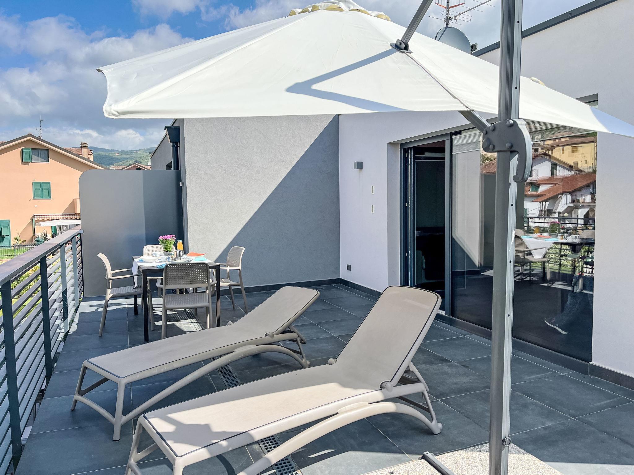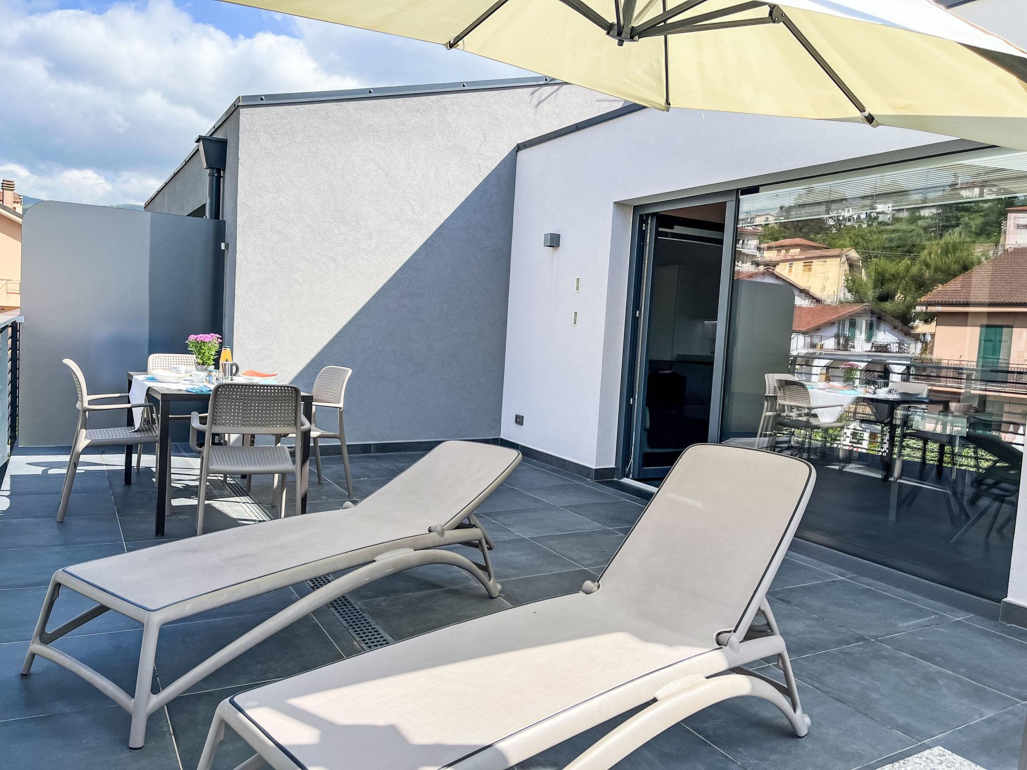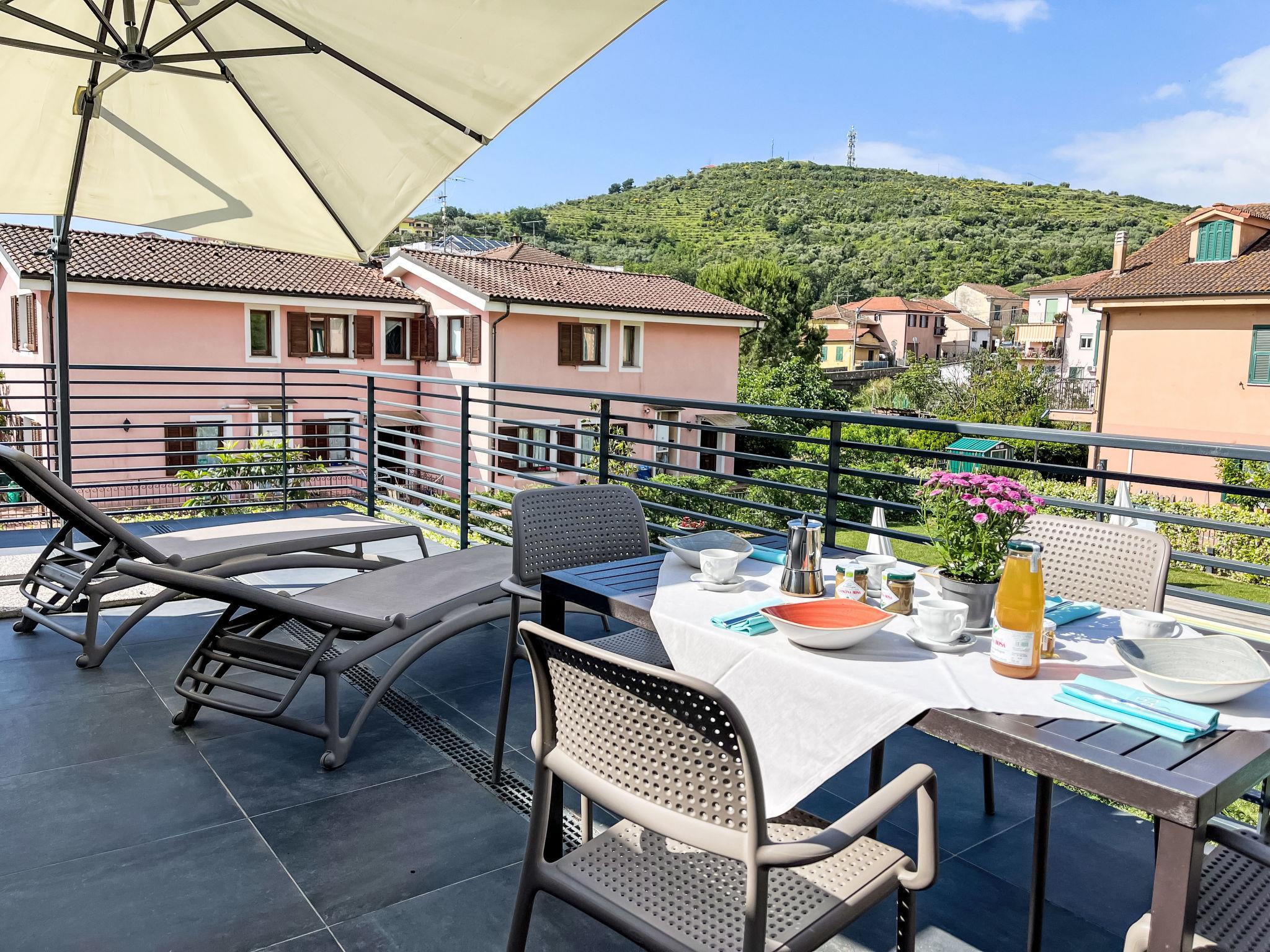 "Albarola", 2-room apartment 42 m2 on 1st floor. Bright, comfortable and tasteful furnishings: 1 room with 1 double bed (1 x 160 cm). Exit to the terrace. Kitchenette (oven, dishwasher, 4 induction hot plates, toaster, kettle, microwave, electric coffee machine) with dining table, 1 double sofabed (1 x 160 cm), satellite TV and flat screen. Exit to the terrace. Shower/WC. Air-conditioning, forced-air heating. Large terrace 20 m2. Terrace furniture, deck chairs (2). Beautiful view of the garden. Facilities: iron, children's high chair, baby cot, hair dryer. Internet (WiFi, extra). Parking (1 car), garage (1 car). Please note: 1 small pet/ dog allowed. Smoke alarm, fire extinguisher. IT008031B4VWHBOR2Z