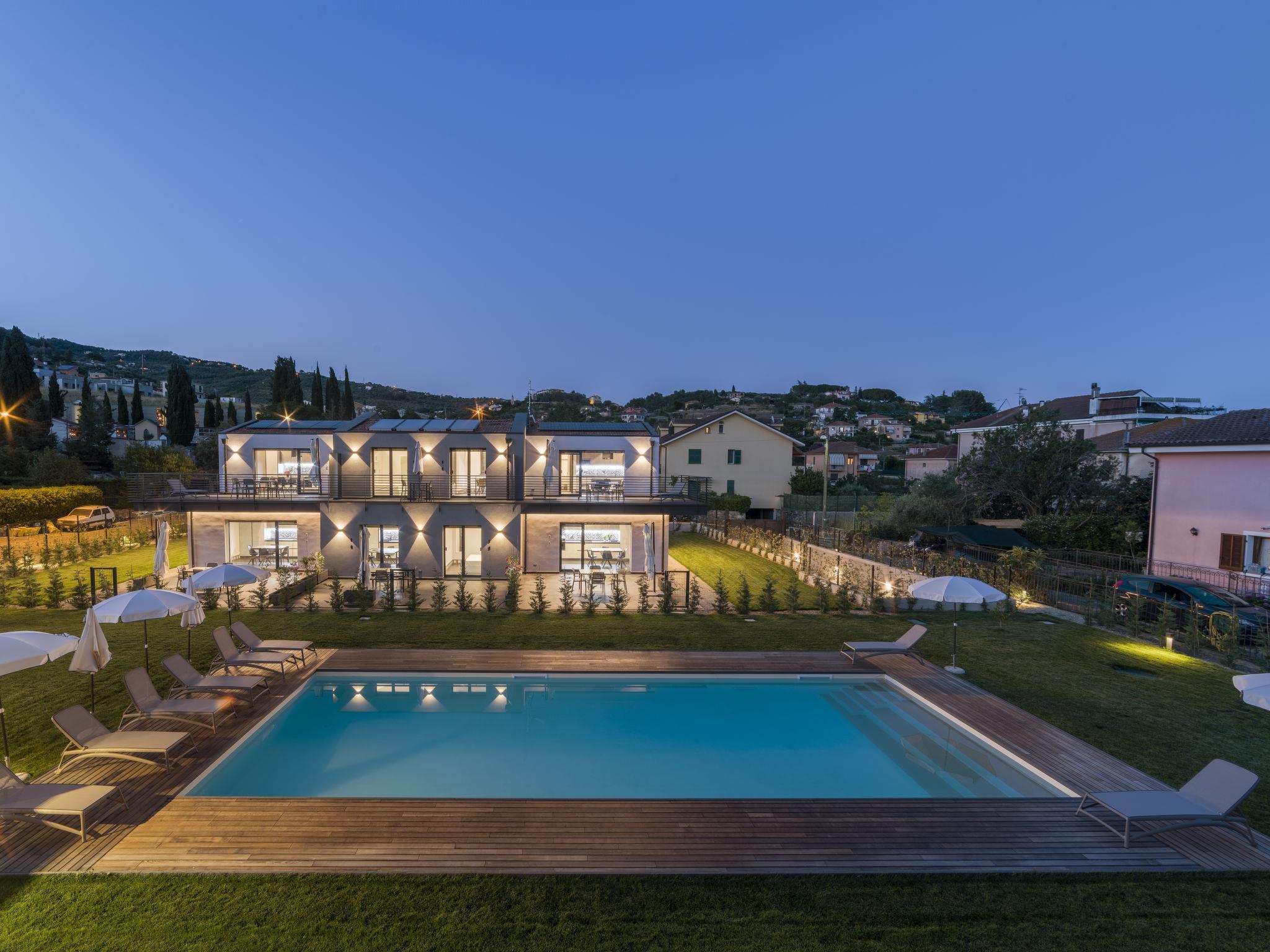 Modern, comfortable residence "Al Bistrot dei Vinai", 2 storeys, built in 2022. 6 apartments in the residence. In the district of Caramagna 1.5 km from the centre of Imperia, 25 km from the centre of San Remo, 90 km from the centre of Nizza, in a sunny position in the residential district, 1.5 km from the sea. For shared use: large, well-kept garden 1'000 m2 (fenced) with lawn and flowers, lawn for sunbathing, swimming pool (5 x 15 m, depth 140 cm, seasonal availability: 12.Apr. - 30.Sep.). Outdoor shower, garden furniture, barbecue, children's playground (slide), pool maintenance by the owner/gardener. In the house: lift, storage room for bicycles, air conditioning, washing machine, tumble dryer (for shared use), bicycle rental. Room cleaning on request (extra). Storeroom available. Motor access to the house. Parking (for 6 cars) on the premises, communal covered parking. Shop, grocery 600 m, supermarket 1 km, shopping centre 1 km, restaurant 2 km, bar 1 km, bakery 600 m, café 2 km, bicycle rental 2 km, bus stop 100 m, railway station "Imperia Oneglia" 6 km, sandy beach "Borgo Marina" 3 km pebble beach "Borgo Prino" 2 km, bathing lake "Laghetti di Lecchiore" 7 km. Cycle lane 2 km. Nearby attractions: Dolcedo Mountainbiken am Monte Faudo 7 km, Küstenradweg von Imperia bis Ospedaletti 2 km, Valloria das Dorf mit 150 bemalten Türen 10 km, Triora Hexendorf 45 km, Monte Carlo 75 km, San Remo 25 km. Hiking paths: Monte Faudo (1149 m) Mountainbike Trails. Please note: car recommended. Baby equipment (included). Additional accommodations can be booked.