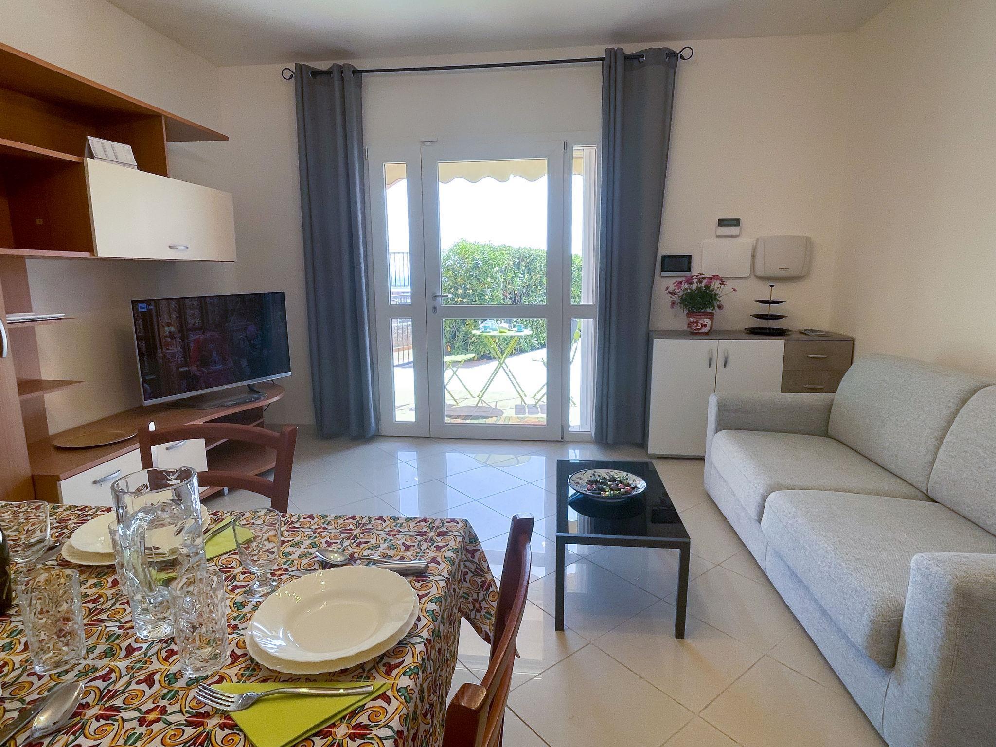 "Casa Damiano", 2-room apartment 45 m2, on the ground floor, south facing position. Bright, beautiful and cosy furnishings: 1 room with 1 double bed (1 x 160 cm). Exit to the terrace. Kitchen-/living room (oven, 4 induction hot plates, toaster, kettle, freezer, electric coffee machine) with dining table, 1 double sofabed (1 x 160 cm). Exit to the terrace. Shower/bidet/WC. Air-conditioning, forced-air heating (extra). Heating available only from 15.10. to 15.04. Beautiful panoramic view of the sea and the resort. Facilities: washing machine, mosquito net, baby cot. Internet (WiFi, free). Parking space n 12. IT008031C266BVBWRY