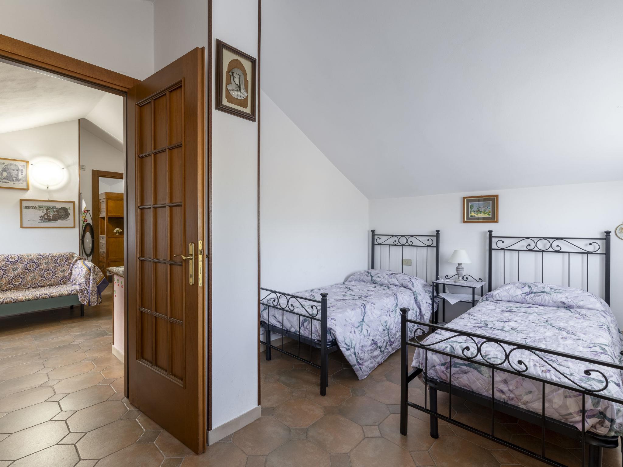 "La Quiete e il Mare", 3-room apartment 65 m2 on 2nd floor. Partly with sloping ceilings, practical and cosy furnishings: 1 room with 1 double bed (1 x 160 cm, length 200 cm). 1 room with 2 beds (80 cm, length 200 cm). Living/dining room with TV. Kitchenette (oven, 4 gas rings, toaster, kettle, freezer, electric coffee machine). Bath/bidet/WC. Air-conditioning (extra). Heating available only from 30.10. to 15.04. Balcony 15 m2. Balcony furniture. Beautiful panoramic view of the countryside. Facilities: washing machine, baby cot. Internet (WiFi, free). Parking (1 car). Please note: non-smokers only. Private entrance, smoke alarm, fire extinguisher. IT008031C2F6HUSG4N