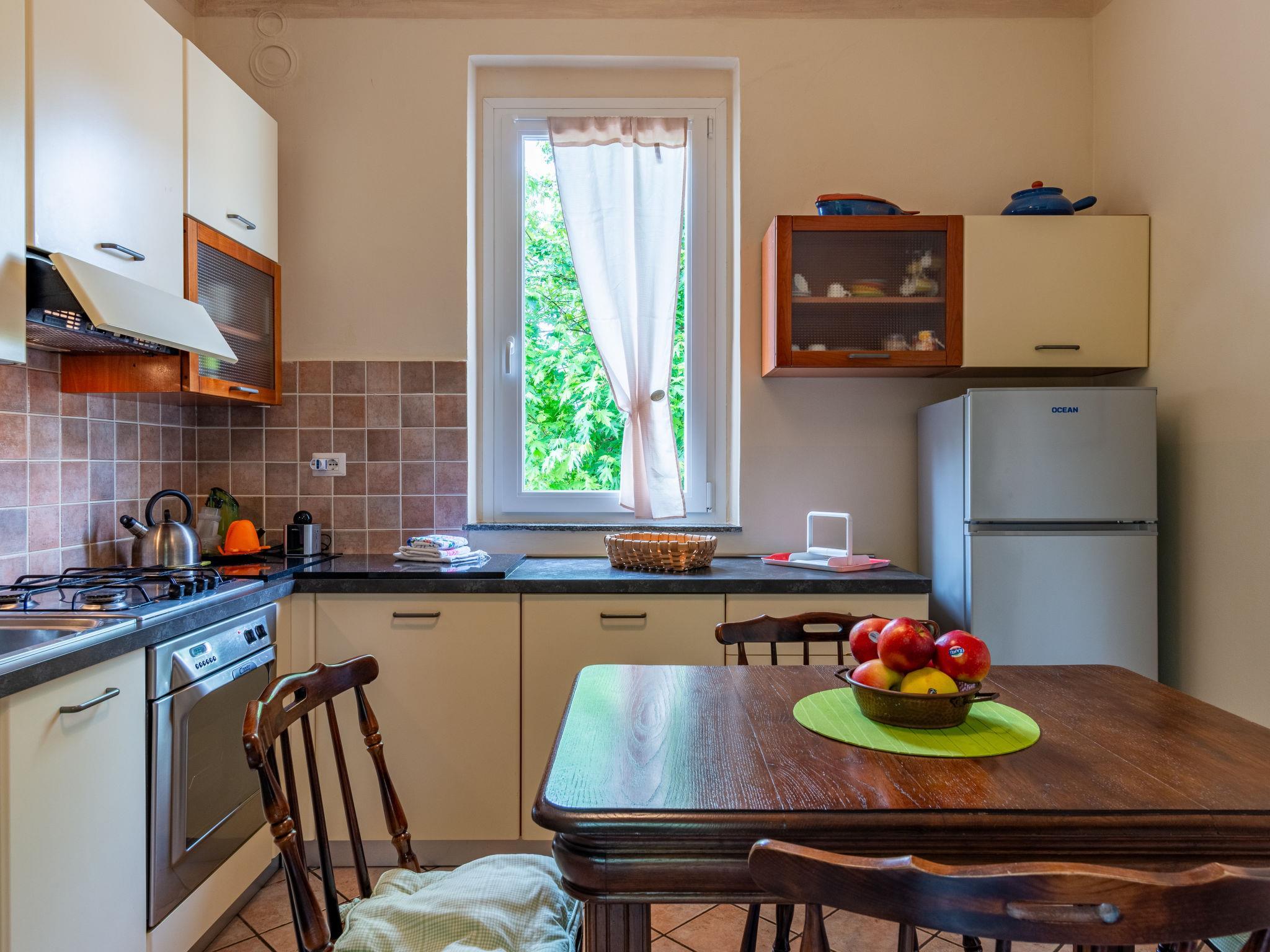 3-room house 100 m2, on the ground floor. Comfortable furnishings: living/sleeping room with 1 double sofabed and TV. Exit to the terrace. 1 double bedroom. Studio with 1 double bed, dining table, shower/bidet/WC and air conditioning. Exit to the garden. Kitchen (4 hot plates, oven, dishwasher, toaster, microwave) with dining table. Shower/bidet/WC. Gas heating (extra), air-conditioning. Terrace, large, garden. Terrace furniture, barbecue (portable), deck chairs (2). Parking (fenced 2 cars). Please note: non-smoking house. Maximum 1 pet/ dog allowed. No internal connecting door between the separated properties. IT003082C2PLMS4N65,IT003082C2BHSDEN4M