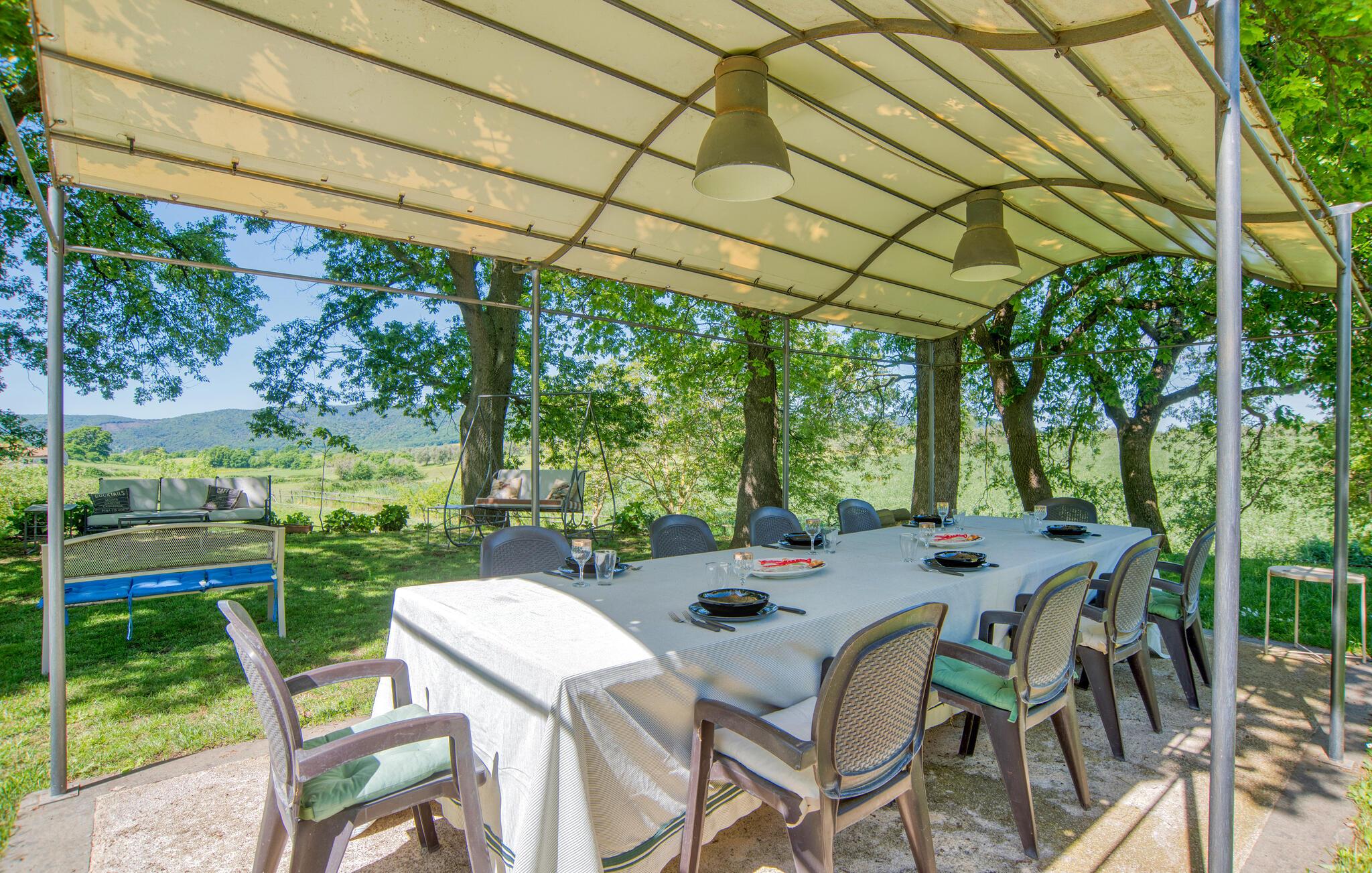 Dette familievenlige hus ligger mellem ??Det Tyrrhenske Hav og Bolsena-søen midt i den frodige natur. Indvendigt emmer det af hygge med højt til loftet, finurlige udsmykningsdetaljer og varme farveskalaer, der gør det rart at være her og nemt at slappe af. Nyd udsigten over landskabet, mens I kræser om livretterne, og nyd maden på den overdækkede terrasse, når vejret tillader det.