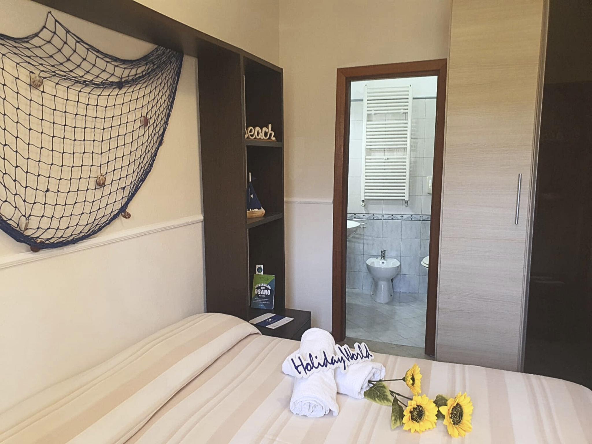 Casa di Vito is a delightful flat in a cosy, pet-friendly house, located in a quiet and strategically well-connected area of Forio, on the beautiful island of Ischia, in the heart of the Gulf of Naples. The accommodation is on the ground floor, on one level, and is designed to offer a comfortable, functional stay with a homely atmosphere. The sleeping area comprises two small but cosy bedrooms: a double bedroom with en-suite bathroom equipped with bathtub and bidet, and a single bedroom with bunk beds. Continuing on, there is a small living area, ideal for moments of relaxation and furnished with a comfortable sofa. The fully equipped kitchenette allows you to prepare your own breakfast, lunch and dinner. The living area also gives access to the second bathroom, equipped with shower and bidet, and to the outdoor area. Outside, a large covered terrace offers a private space to relax or eat outdoors, immersed in the quietness of the area. The accommodation also has Wi-Fi connection, air conditioning and mosquito nets. Casa di Vito is also perfect for those travelling with pets. Four-legged guests will find bowls and toys to make their stay comfortable as well. There are two pet-friendly beaches nearby that can be reached with a short bus ride or even on foot with a stroll, as well as supermarkets, bars, and typical restaurants within easy reach.