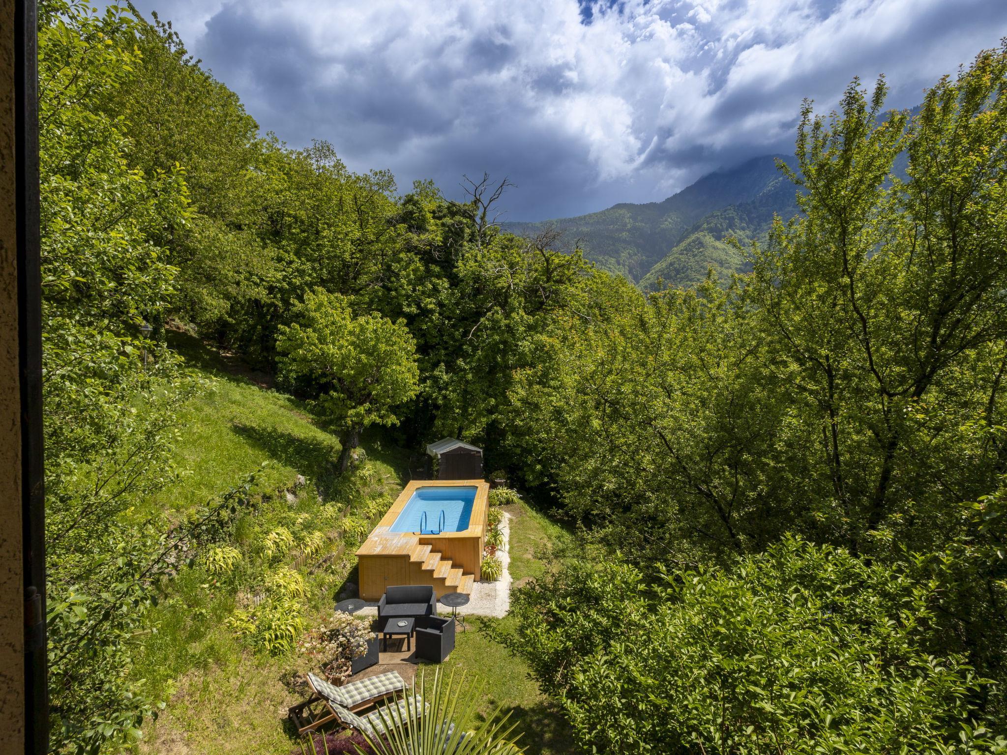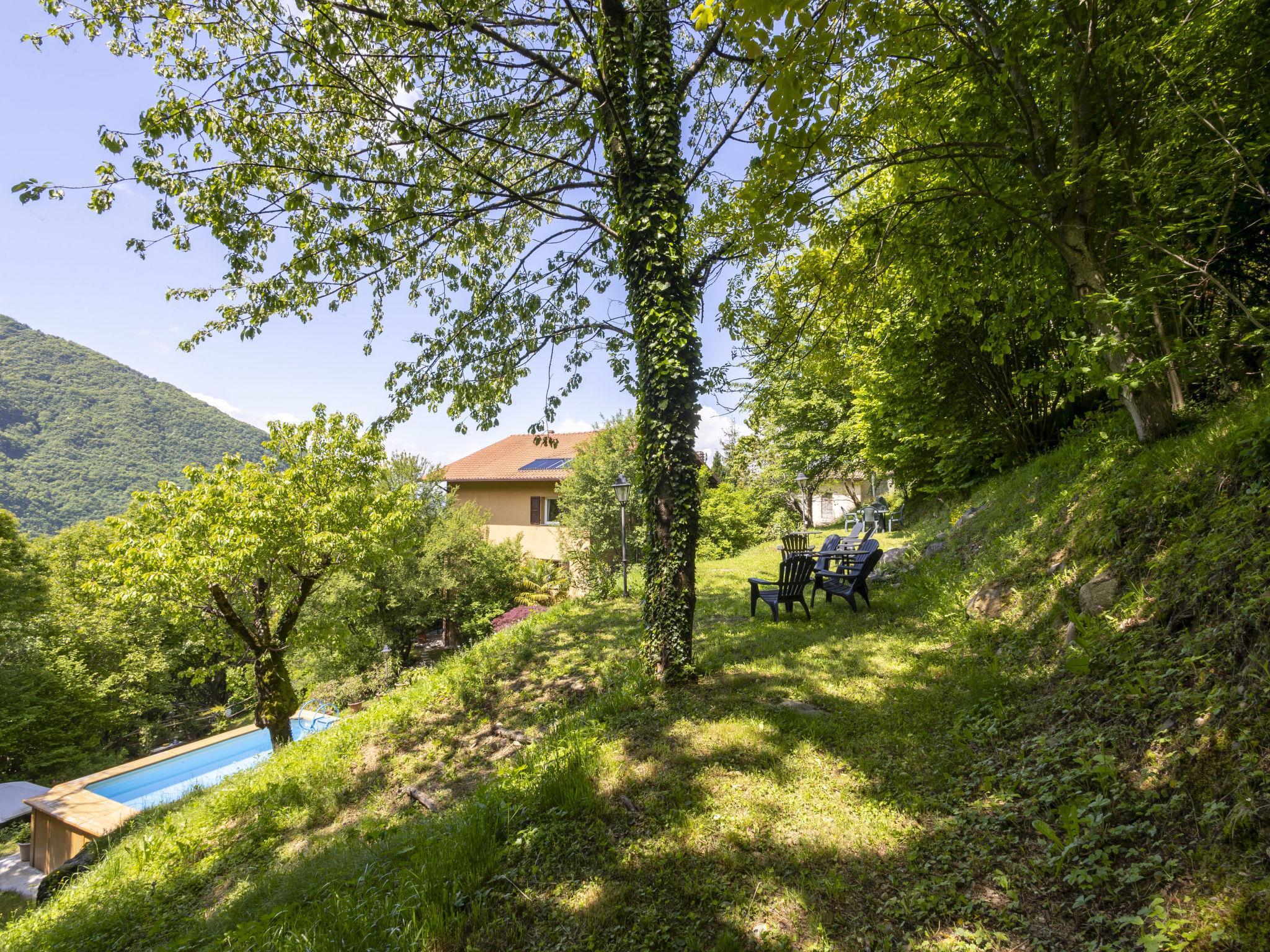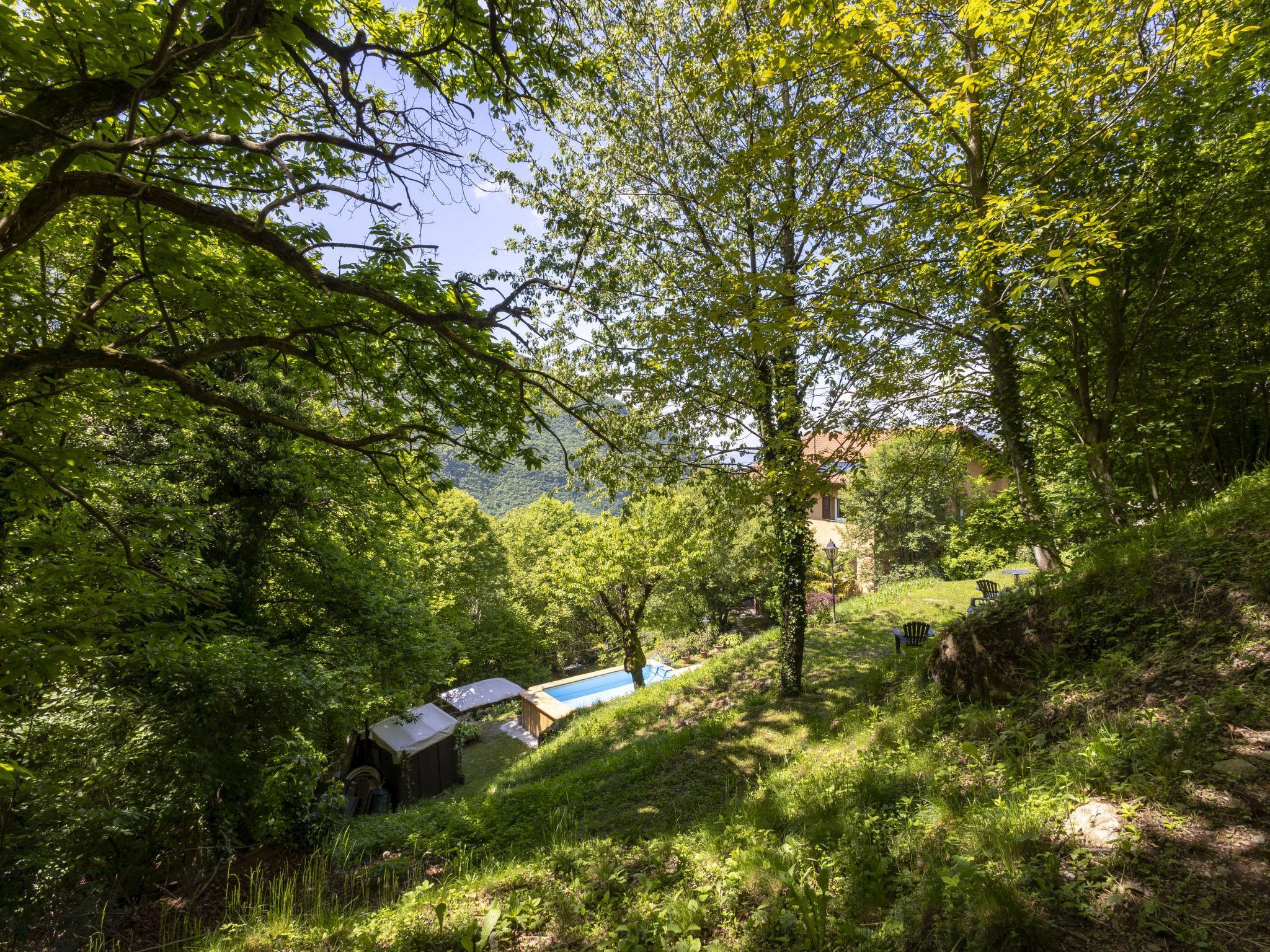 Large villa "Il Castagneto", 700 m a.s.l., 3 storeys, detached, surrounded by trees and meadows. In the hamlet Cortelghe 7 km from the centre of Pisogne, in a secluded, quiet position on a slope, along the wooded area, 8 km from the lake, south facing position. Private: property 5'000 m2, large terraced garden (not fenced) with flowers and trees, lawn for sunbathing, swimming pool (above ground) with privacy (5 x 3 m, depth 120 - 120 cm, seasonal availability: 01.May. - 30.Sep.). Outdoor shower, terrace, garden furniture, barbecue, barbecue house, children's playground, pool maintenance by the owner/gardener. In the house: storage room for bicycles, sun terrace, central heating system. 200 m long steep, narrow motor access (via unmade road). Parking at the house. Supermarket 7 km, restaurant 7 km, bar 7 km, bus stop 1 km, railway station "Pisogne" 9 km, thermal baths "Boario Terme" 22 km. Nearby attractions: Lovere 14 km, Iseo 23 km, Sarnico 39 km, Franciacorta (DOCG wine region) 42 km, Brescia 51 km, Bergamo 59 km. Please note: car recommended.
