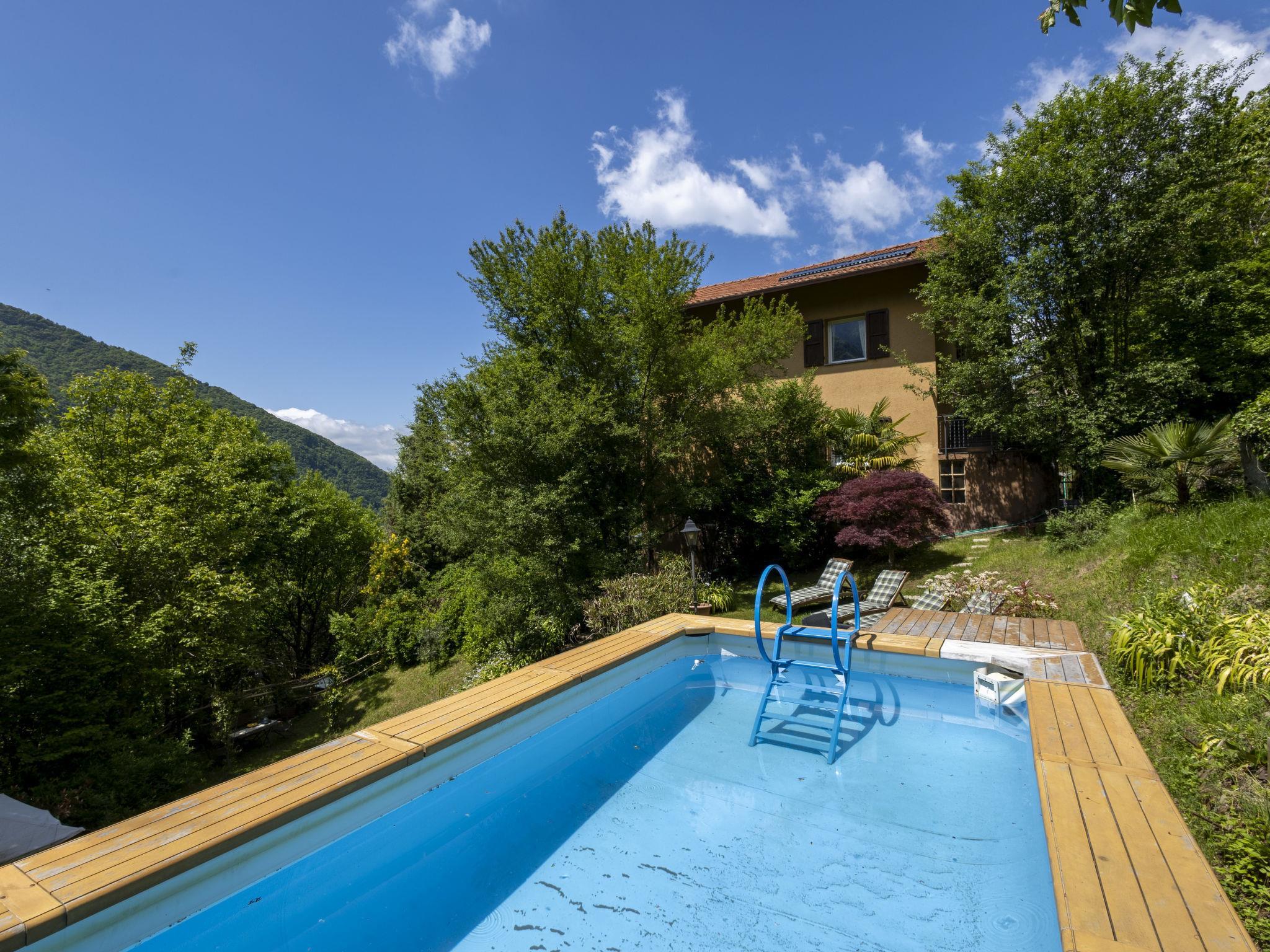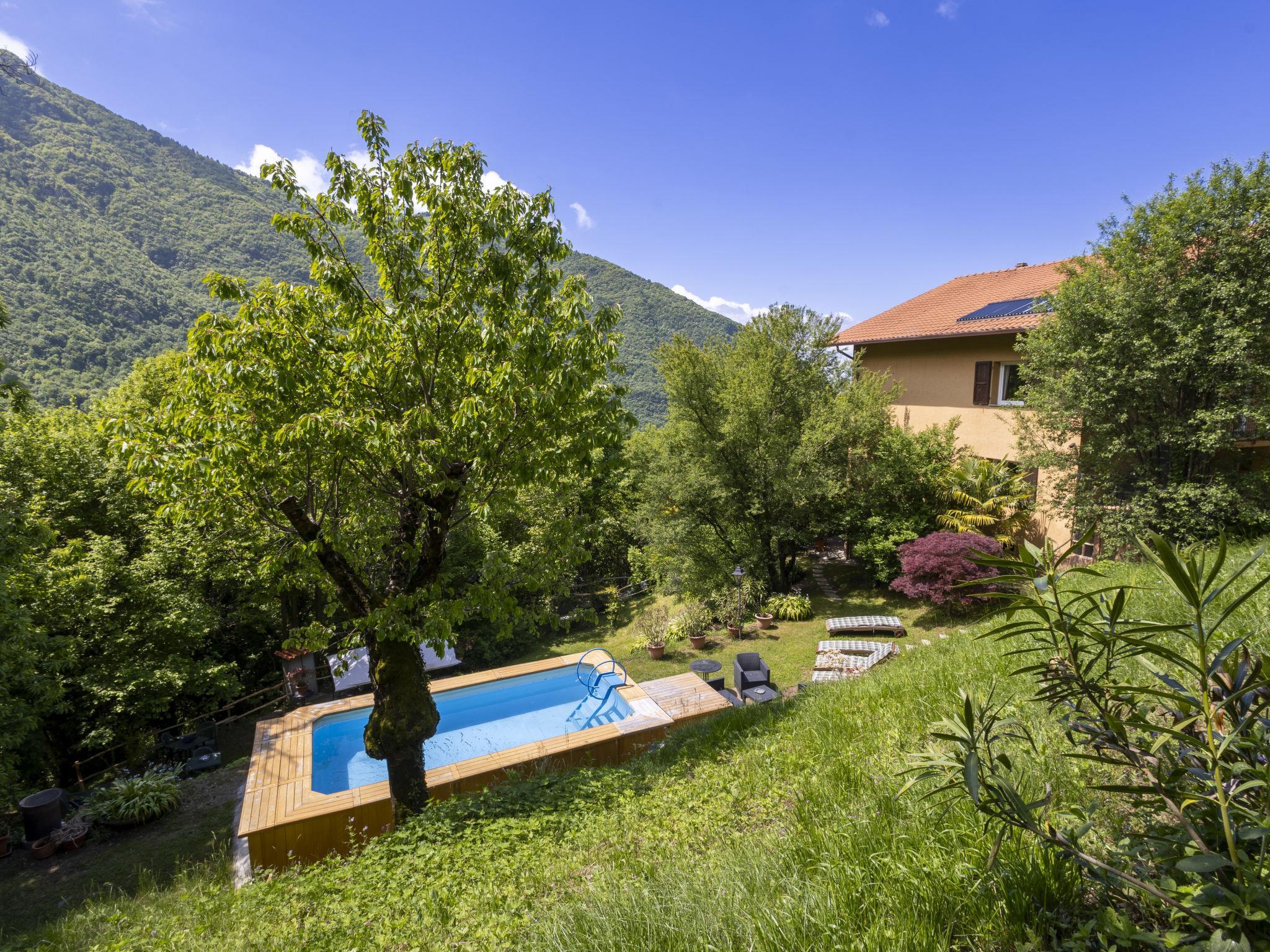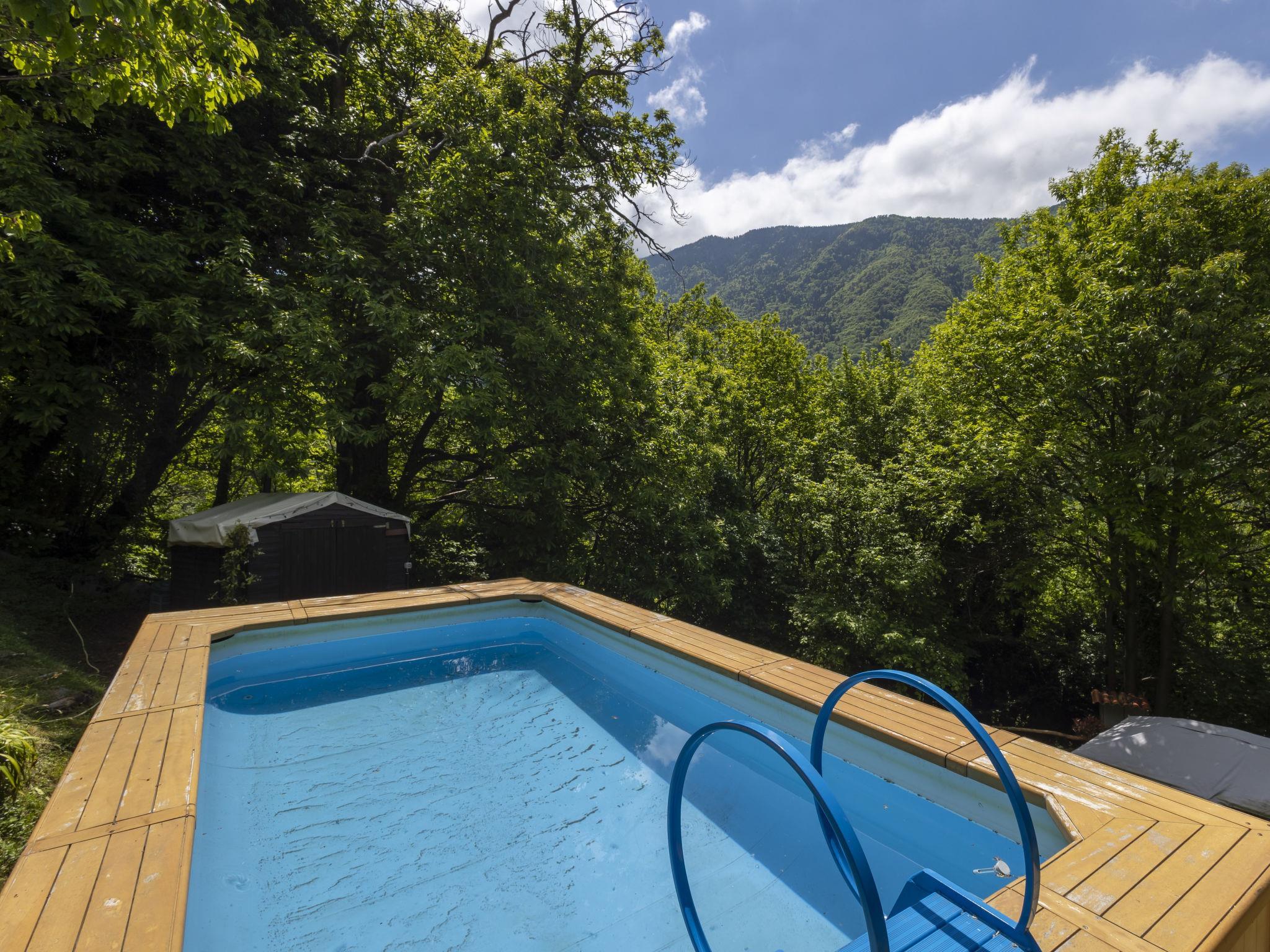 Large villa "Il Castagneto", 700 m a.s.l., 3 storeys, detached, surrounded by trees and meadows. In the hamlet Cortelghe 7 km from the centre of Pisogne, in a secluded, quiet position on a slope, along the wooded area, 8 km from the lake, south facing position. Private: property 5'000 m2, large terraced garden (not fenced) with flowers and trees, lawn for sunbathing, swimming pool (above ground) with privacy (5 x 3 m, depth 120 - 120 cm, seasonal availability: 01.May. - 30.Sep.). Outdoor shower, terrace, garden furniture, barbecue, barbecue house, children's playground, pool maintenance by the owner/gardener. In the house: storage room for bicycles, sun terrace, central heating system. 200 m long steep, narrow motor access (via unmade road). Parking at the house. Supermarket 7 km, restaurant 7 km, bar 7 km, bus stop 1 km, railway station "Pisogne" 9 km, thermal baths "Boario Terme" 22 km. Nearby attractions: Lovere 14 km, Iseo 23 km, Sarnico 39 km, Franciacorta (DOCG wine region) 42 km, Brescia 51 km, Bergamo 59 km. Please note: car recommended.