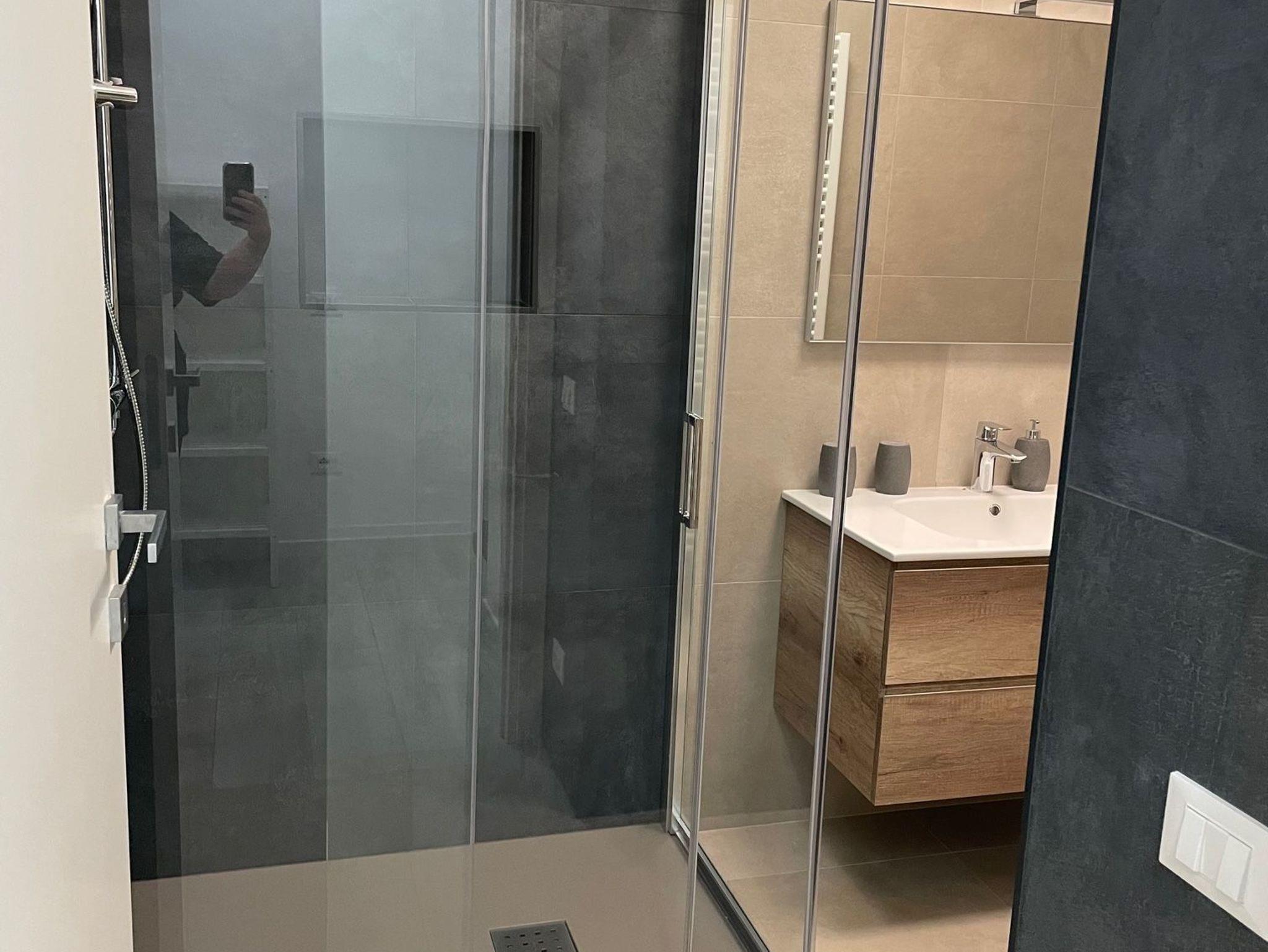 • Ein Bad mit Dusche, WC und Doppelwaschbecken