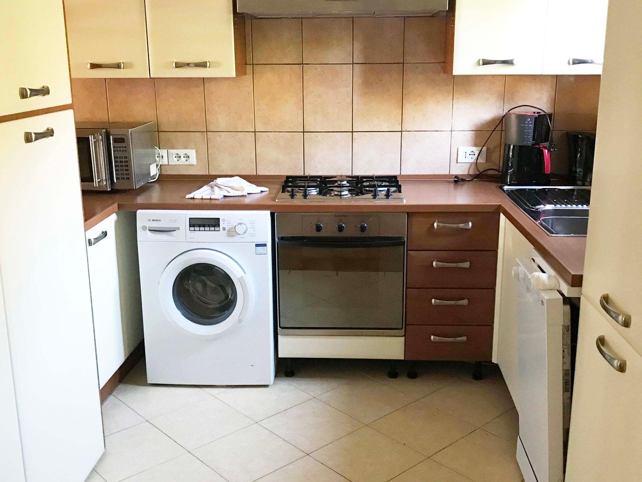 • Gut ausgestattete Küche mit Spülmaschine, Waschmaschine, deutscher Kaffeemaschine, Mikrowelle, Backofen und großer Kühlgefrierkombination