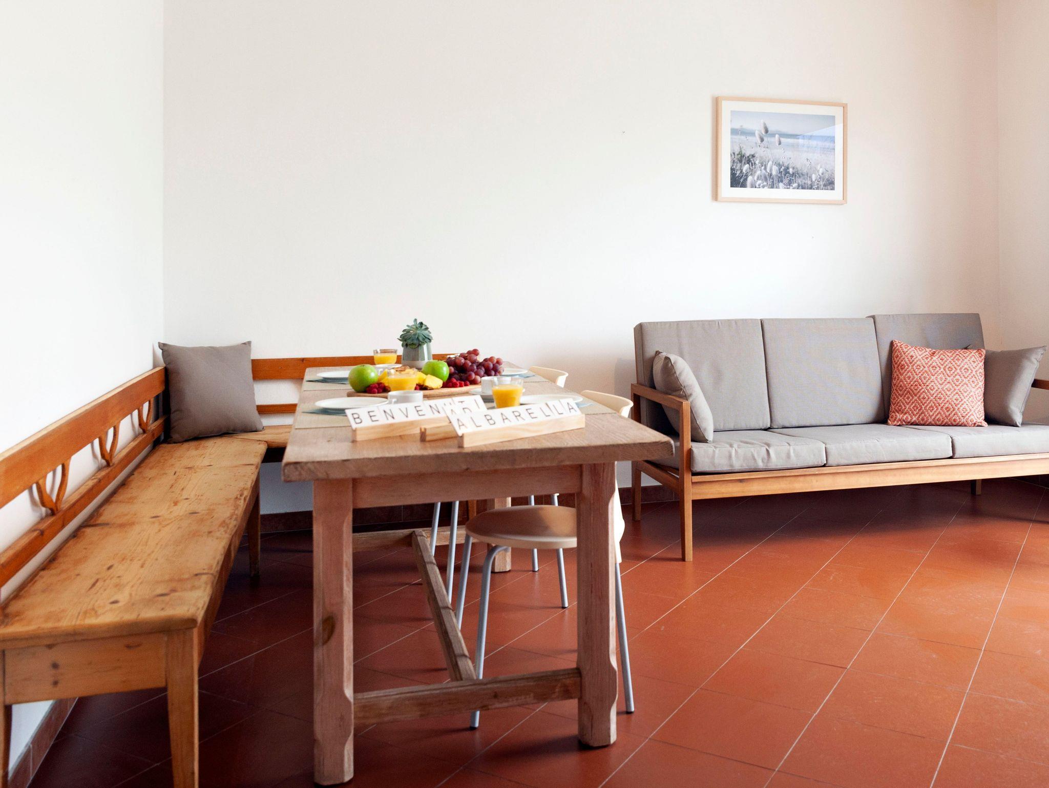 • Heller Wohnbereich mit Sitzgruppe und Zugang zur Terrasse