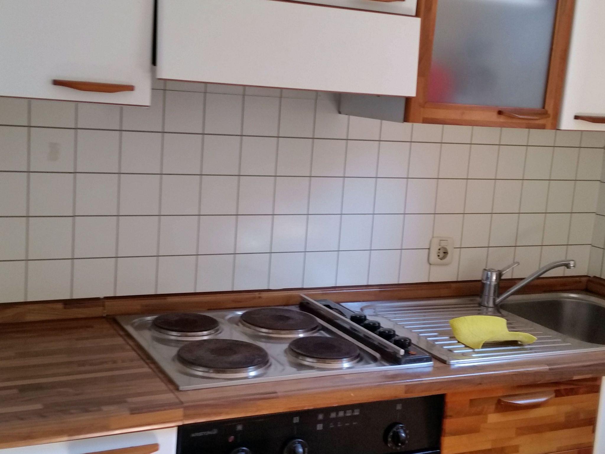 • Gut ausgestattete Küche mit Kaffeemaschine, Toaster, Wasserkocher, Spülmaschine, großem Kühlschrank mit Gefrierfach und Elektroherd sowie Backofen