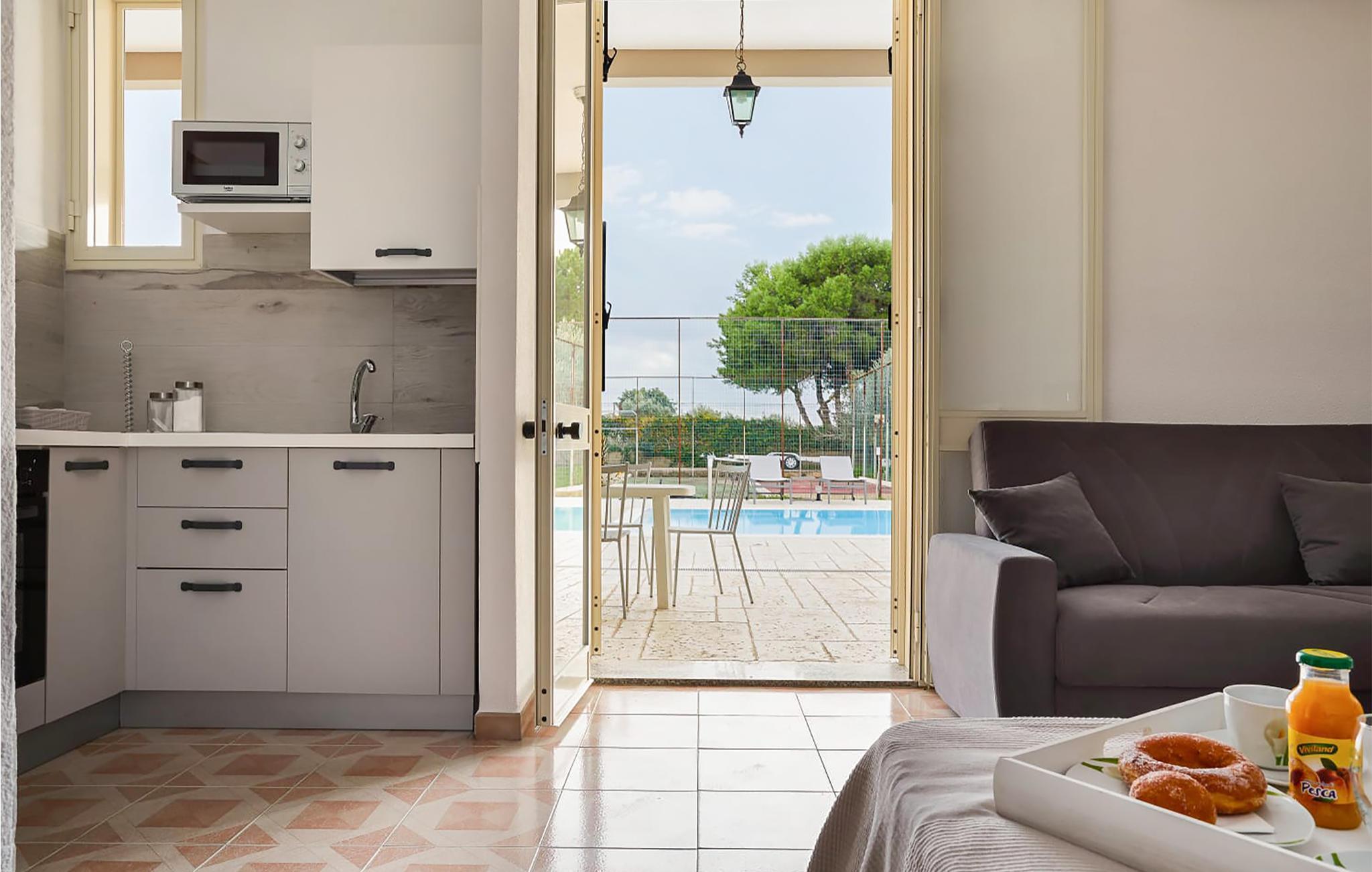 Hovedområdet består af to soveværelser, køkken, stue med mulighed for en ekstra seng, badeværelse, en smuk og rummelig veranda med udsigt over haven og poolen og en mezzanin med adgang fra terrassen med dobbeltværelse med badeværelse. Anlægget suppleres af to studios med eget badeværelse og mulighed for et tekøkken. Sideområdet har køkken / opholdsstue med dobbelt sovesofa, soveværelse med dobbeltseng og badeværelse med bruser.
