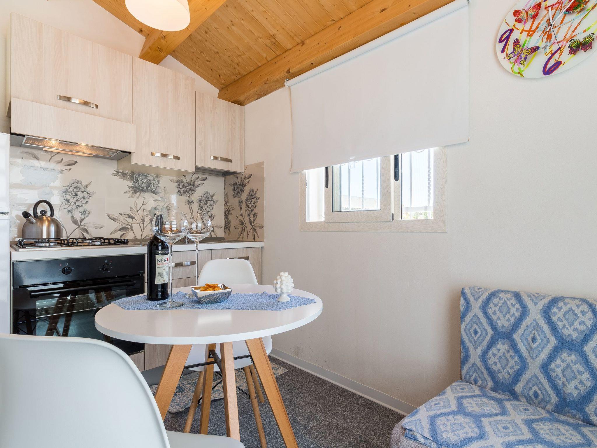 The kitchenette is equipped with fridge, freezer, electric oven and microwave.