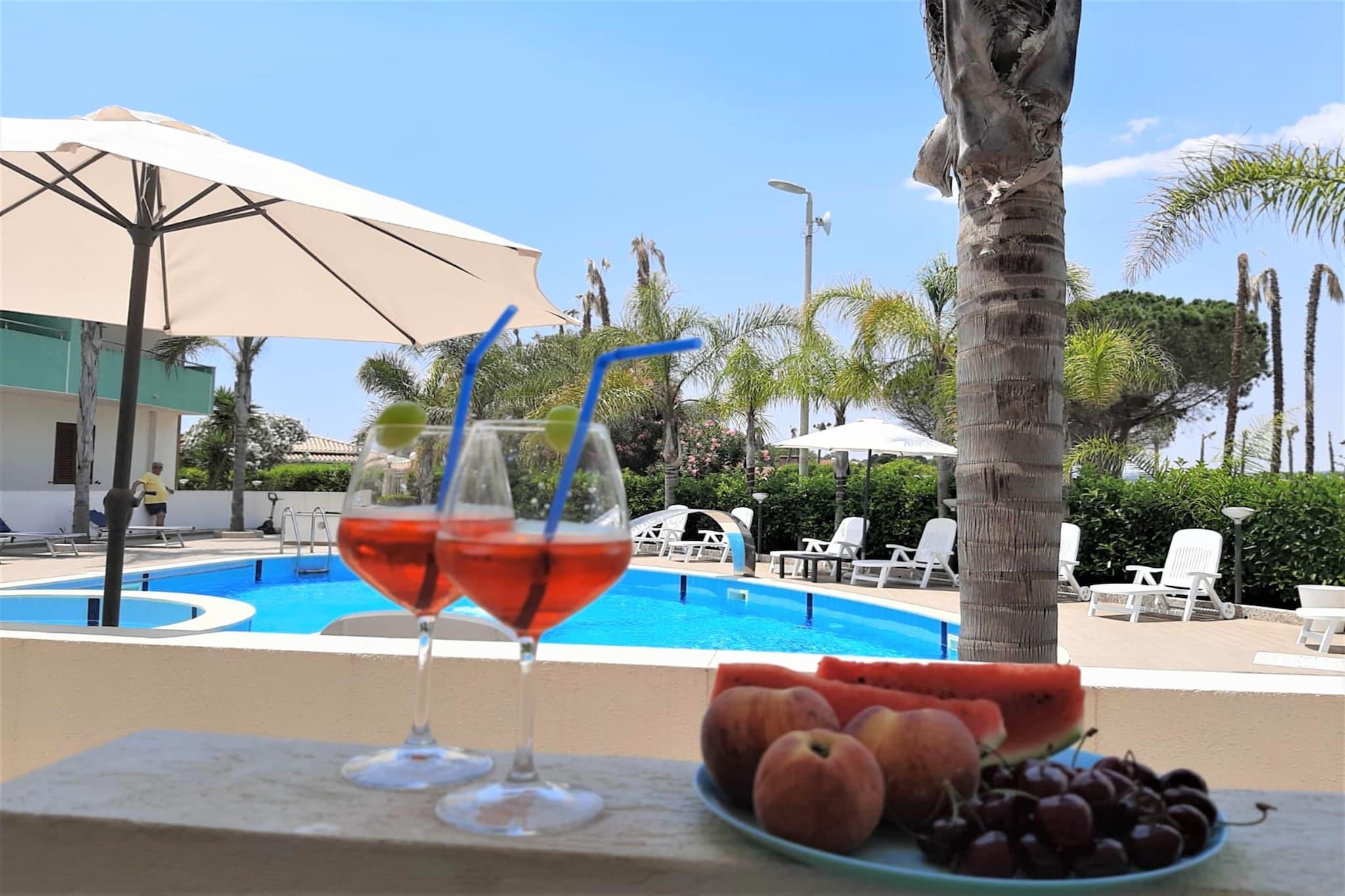 Beliggende kun få skridt fra Santa Maria del Focallos gyldne sand, er denne elegante lejlighed i Ispica, Sicilien perfekt til familier eller venner, der søger en kystflugt. Med raffineret interiør og plads til op til 6 gæster tilbyder det en lys stue/spisestue med en dobbelt sovesofa, et fuldt udstyret køkken og to soveværelser til afslappende nætter. Den private terrasse er ideel til at slappe af med en drink efter en dag på stranden. Lejligheden er udstyret med aircondition og varme for komfort året rundt. Et moderne badeværelse, vaskemaskine og husholdningsartikler såsom et strygejern og strygebræt tilføjer bekvemmelighed til dit ophold. Gæsterne kan også nyde den fælles udendørs pool (14 x 10 m) med liggestole og en parasol - perfekt til at slikke den sicilianske sol. Placeringen er ideel for både strandelskere og madelskere. Lokale supermarkeder, bagerier, caféer og restauranter ligger alle inden for en radius på 350 m. Udforsk nærliggende skatte som Modica, Scicli og Vendicari Nature Reserve, eller planlæg en dagstur til Syracuse og øen Ortigia. Med cykeludlejning i Pozzallo og naturskønne steder rundt omkring, lover dette kysttilflugtssted en mindeværdig siciliansk ferie.